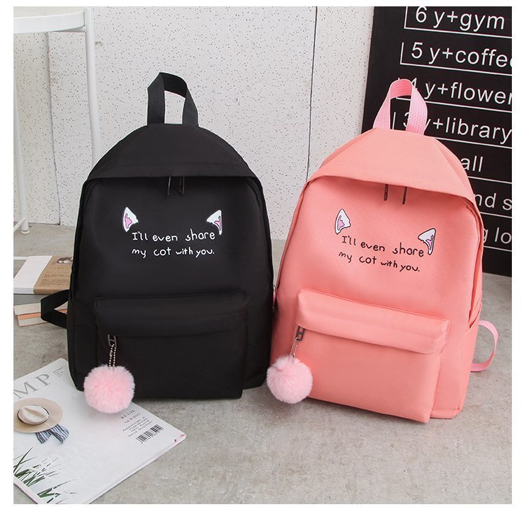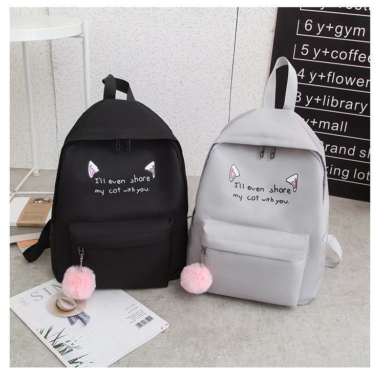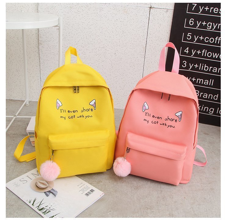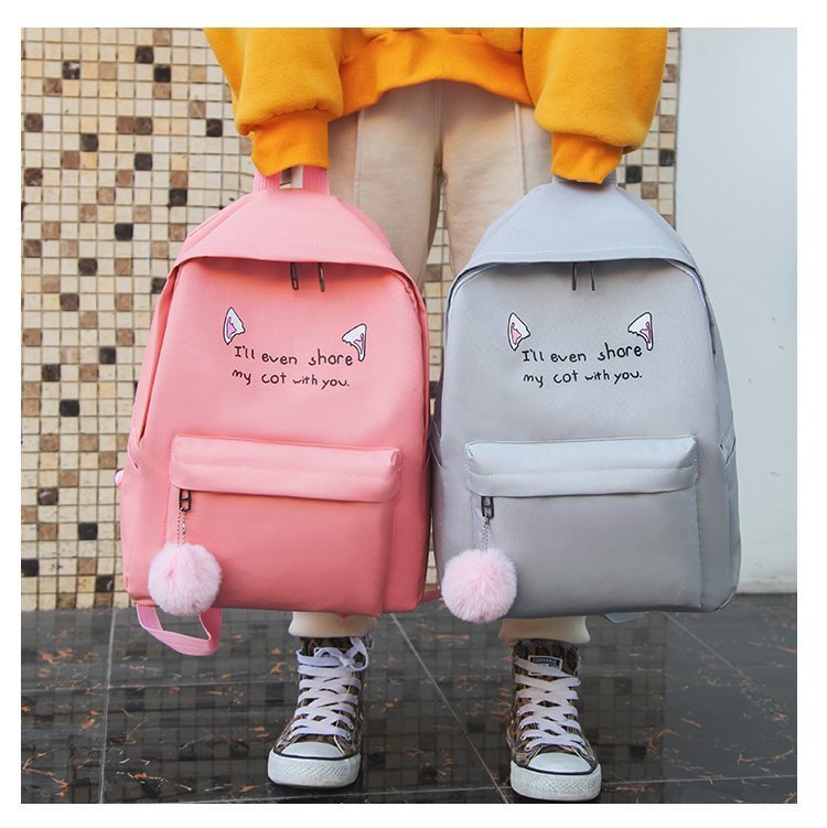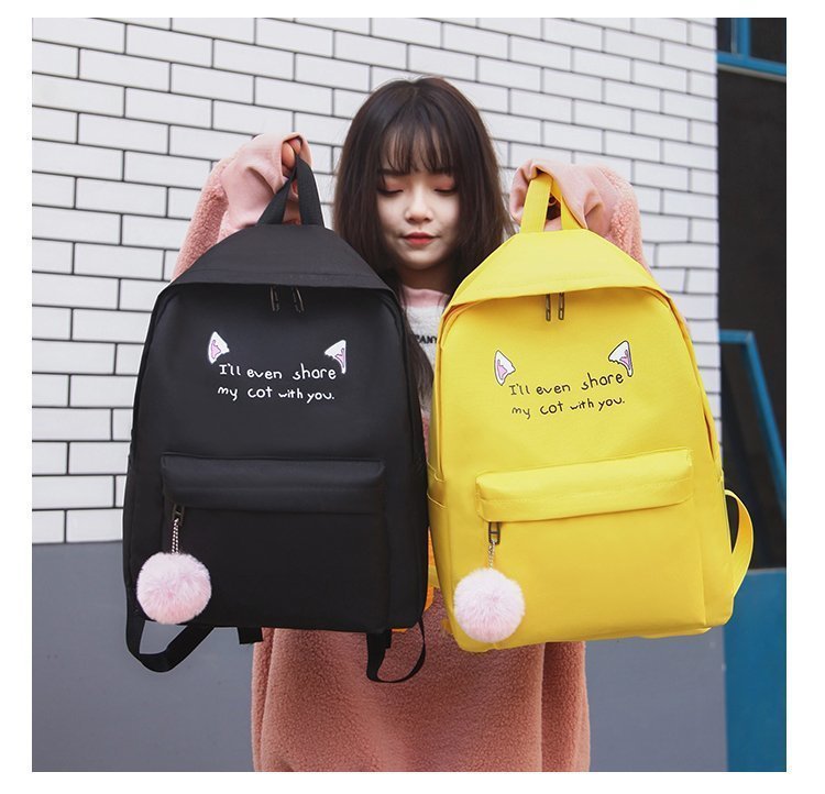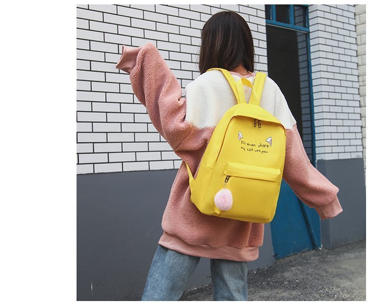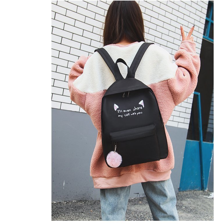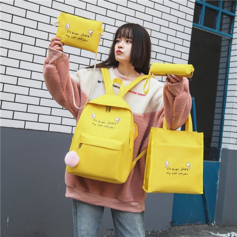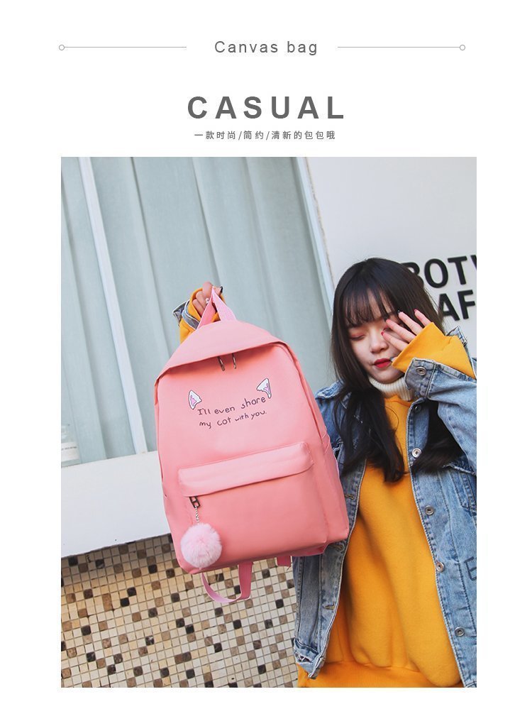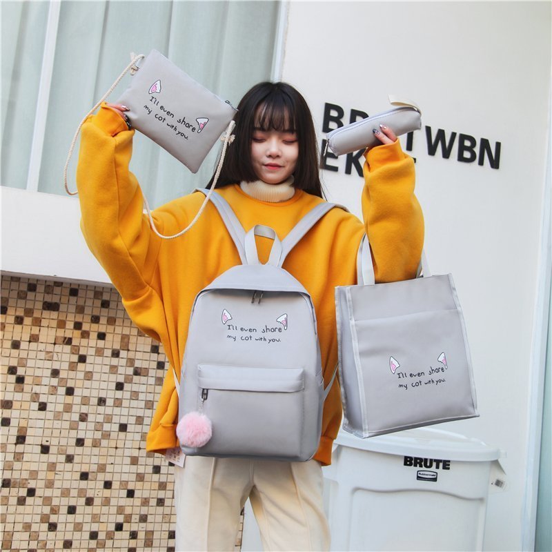 批发四件套ins风超火书包韩版原宿初中双肩包女高中学生百搭背包