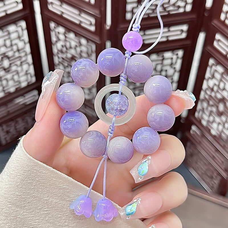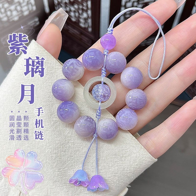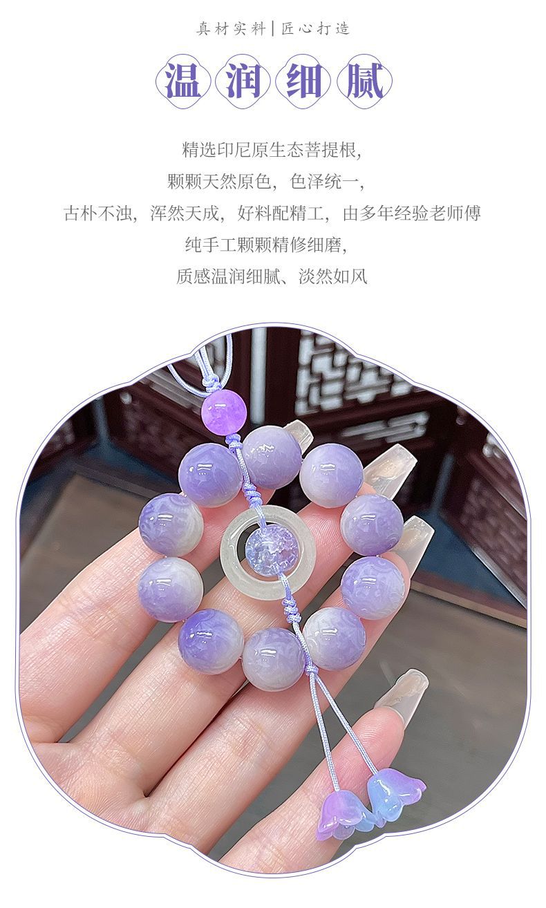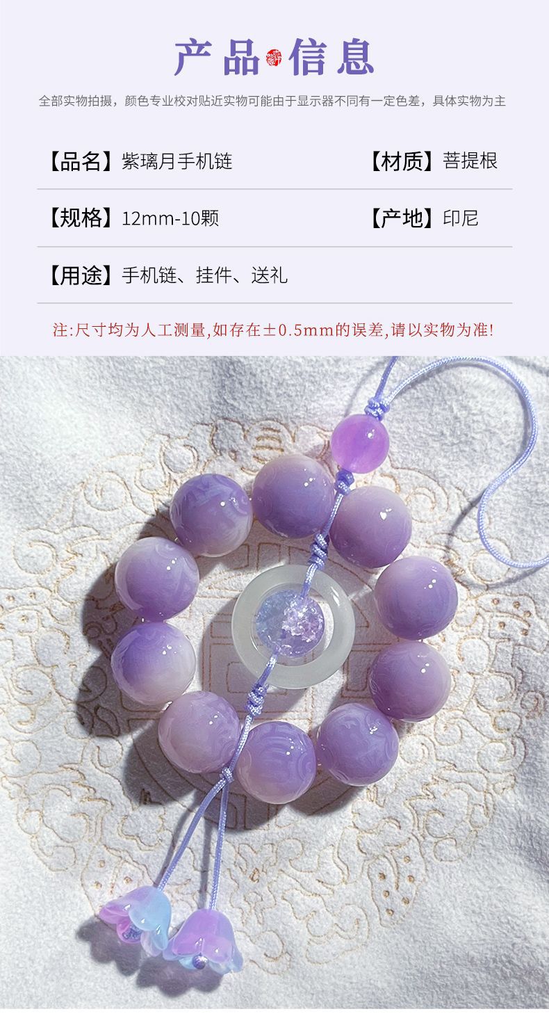 紫璃月菩提手串女手捻手机链挂绳U盘钥匙扣挂件吊坠包挂饰品配饰