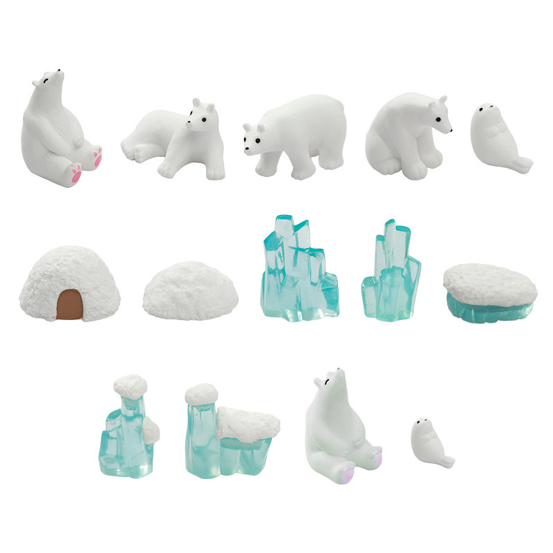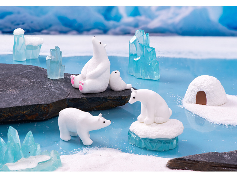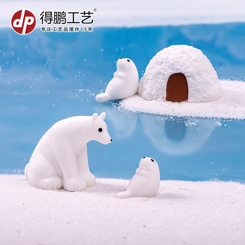 微景观创意可爱冰川北极熊海豹公仔摆件diy装饰品桌面汽车小摆件