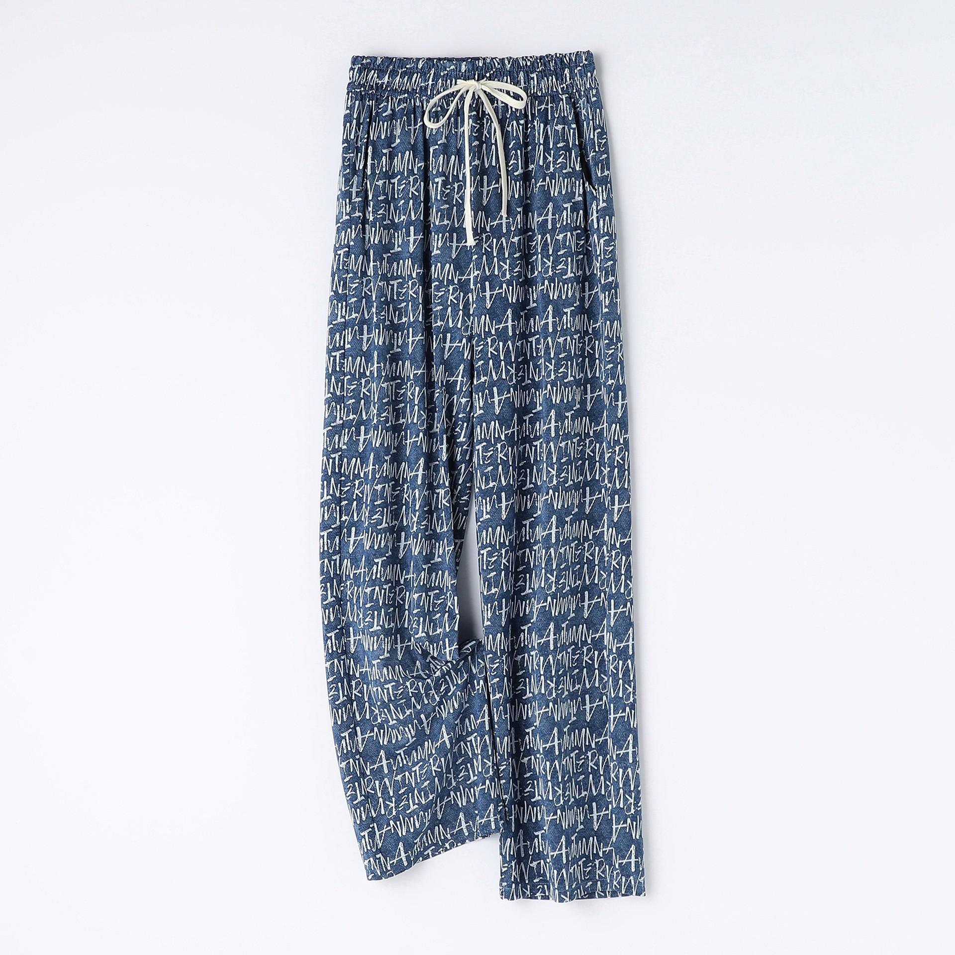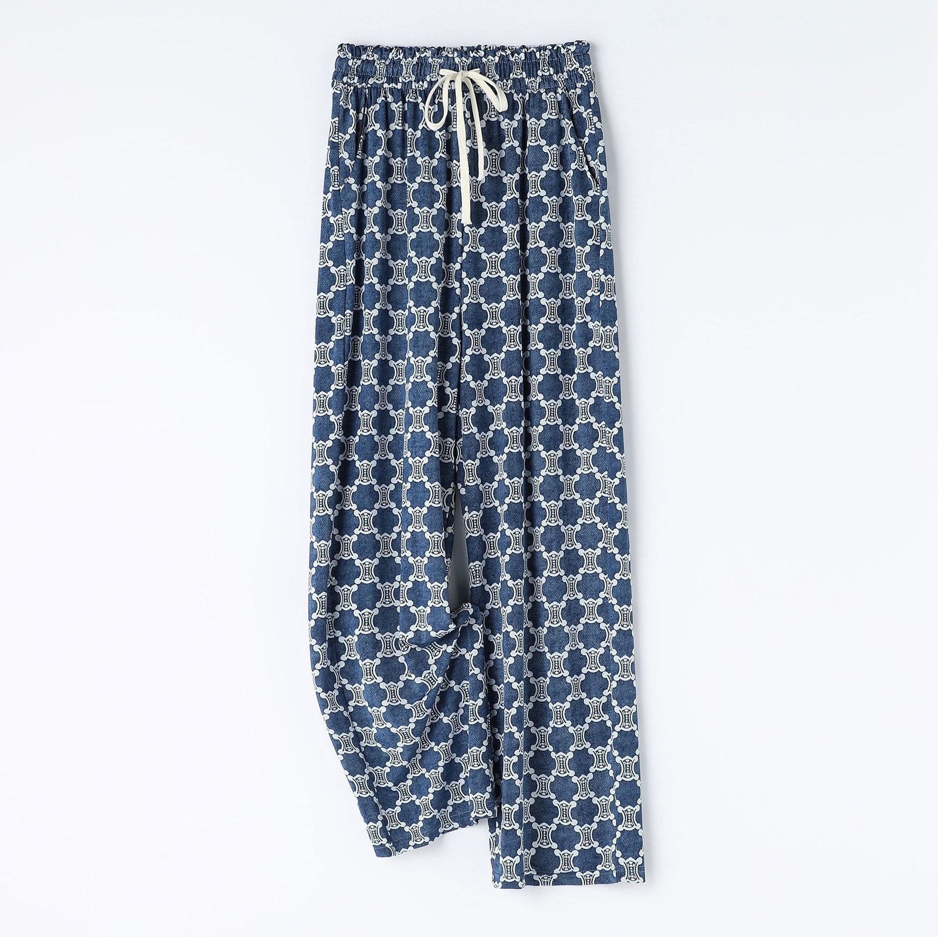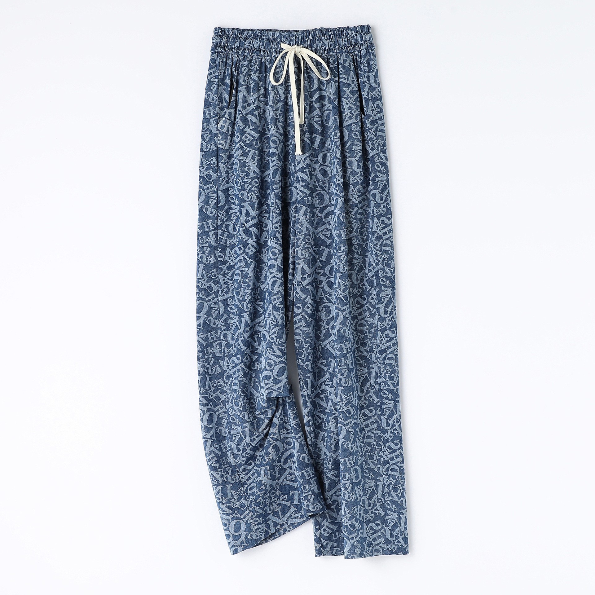 2025夏季新款冰雪丝女裤休闲灯笼裤水墨印花高腰束脚裤冰丝九分裤