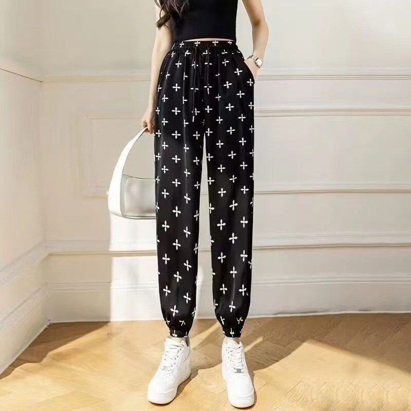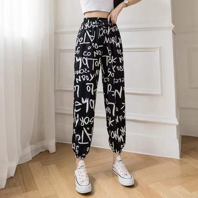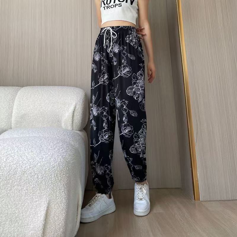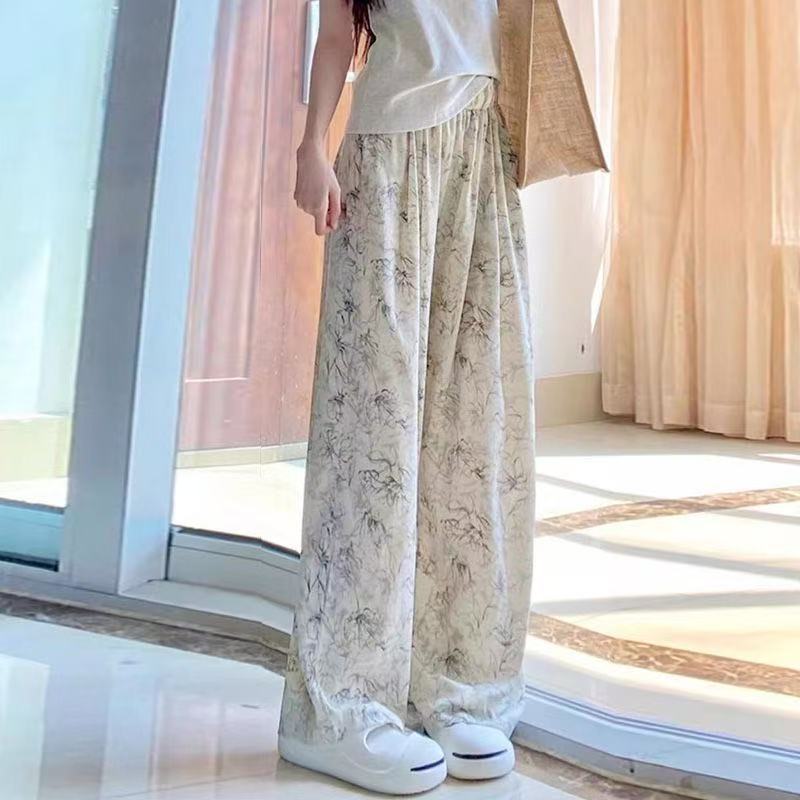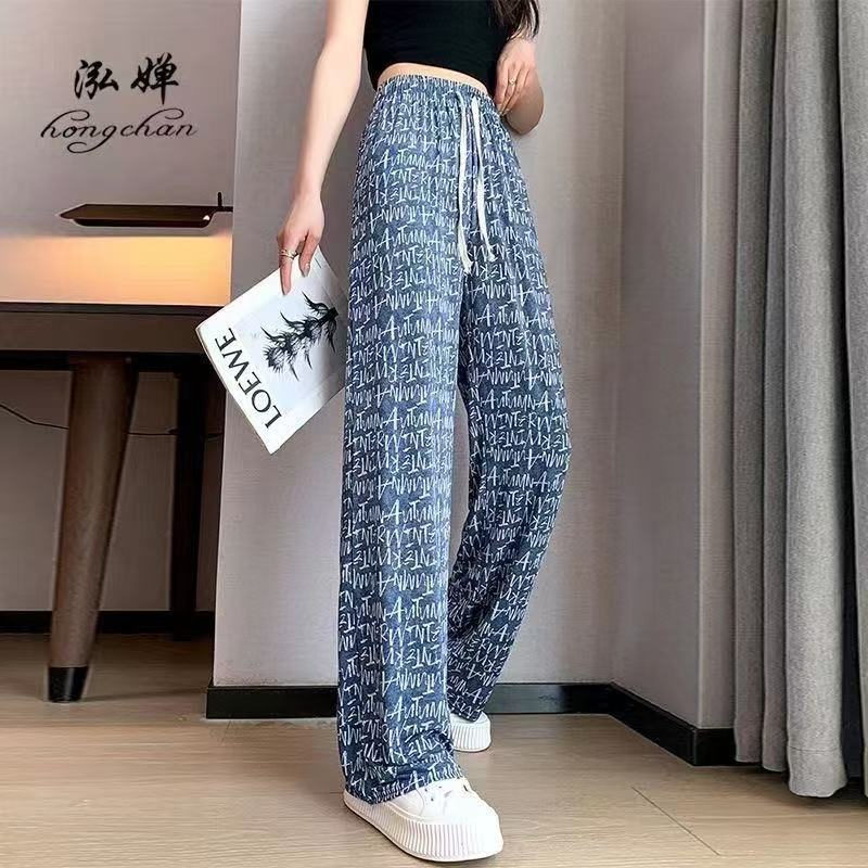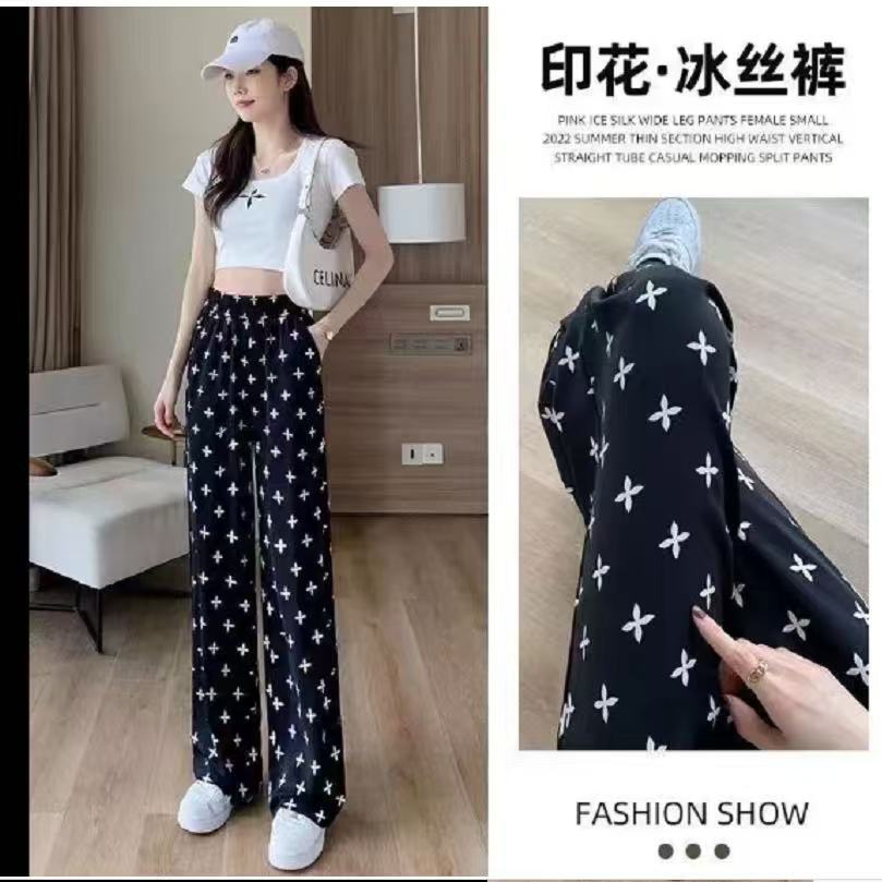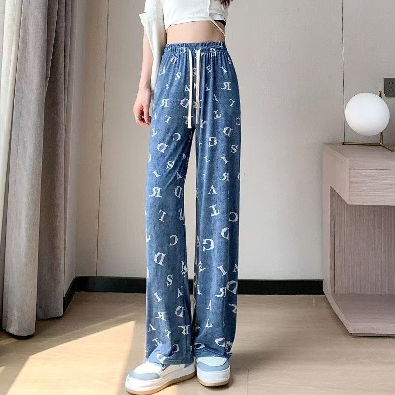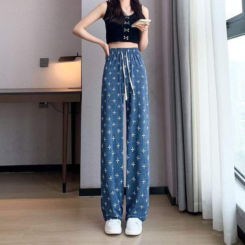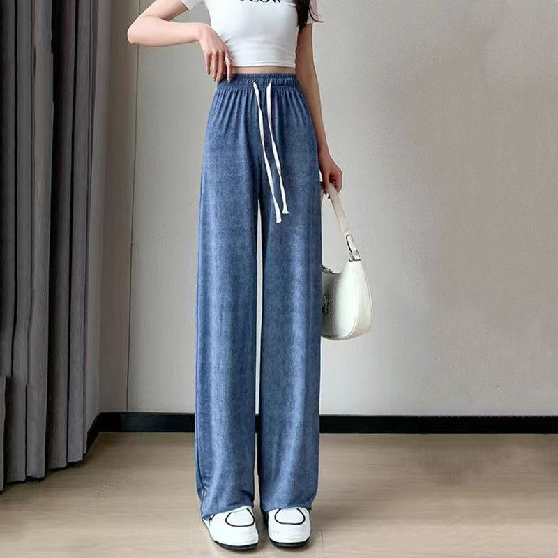 2025新款冰雪丝薄款阔腿裤女直筒夏季新款长裤女冰丝休闲防蚊裤子