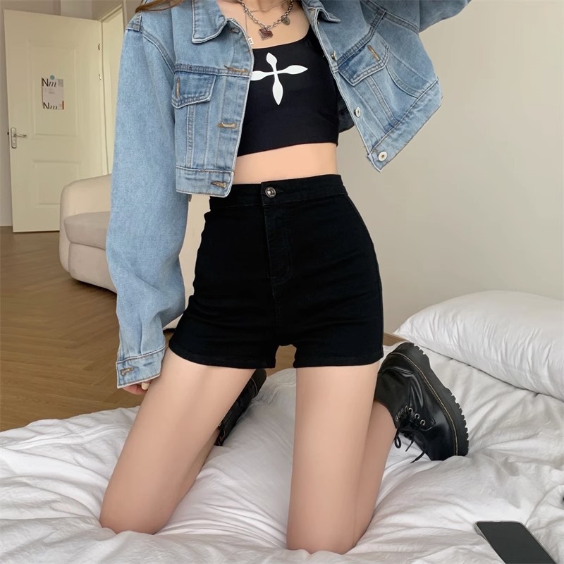 shorts高腰黑色牛仔裤女港风夏季显瘦热裤紧身辣妹超短裤裤子