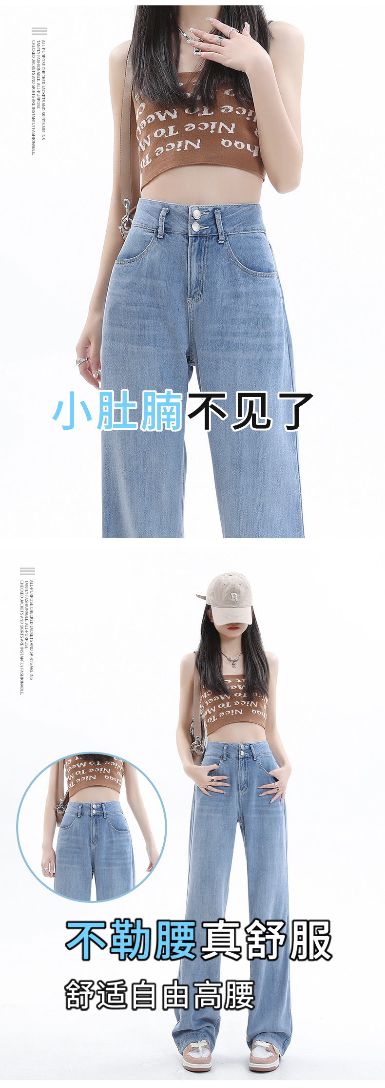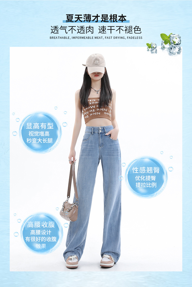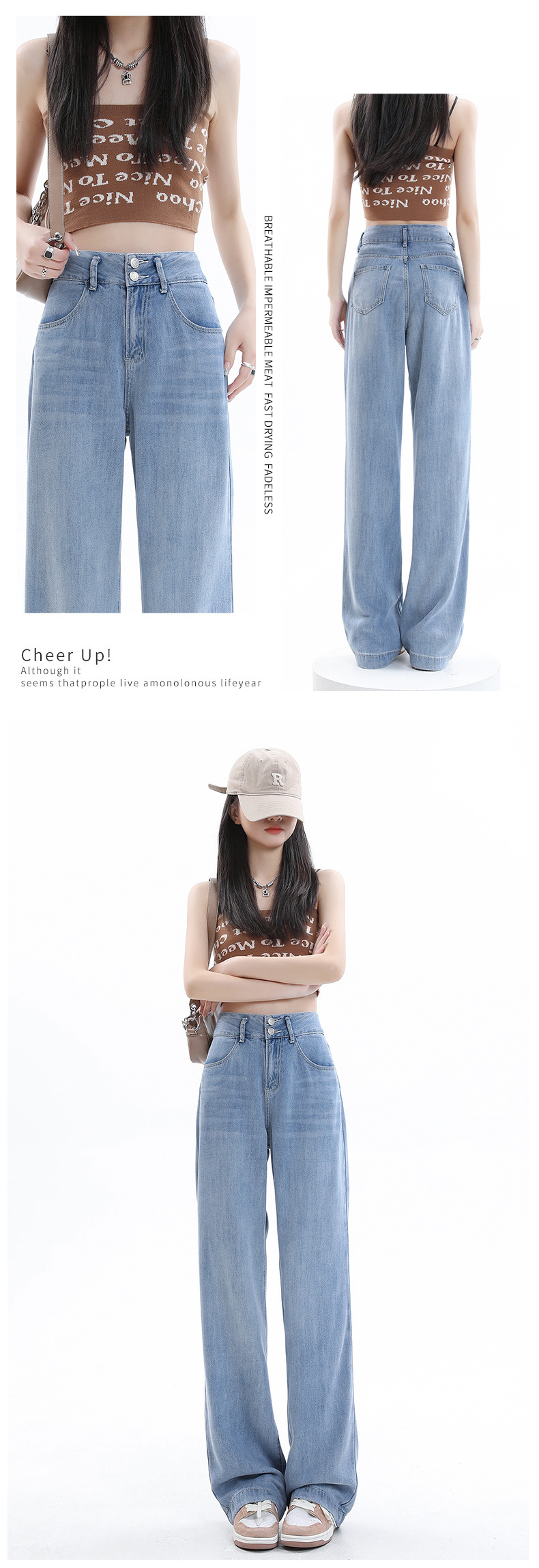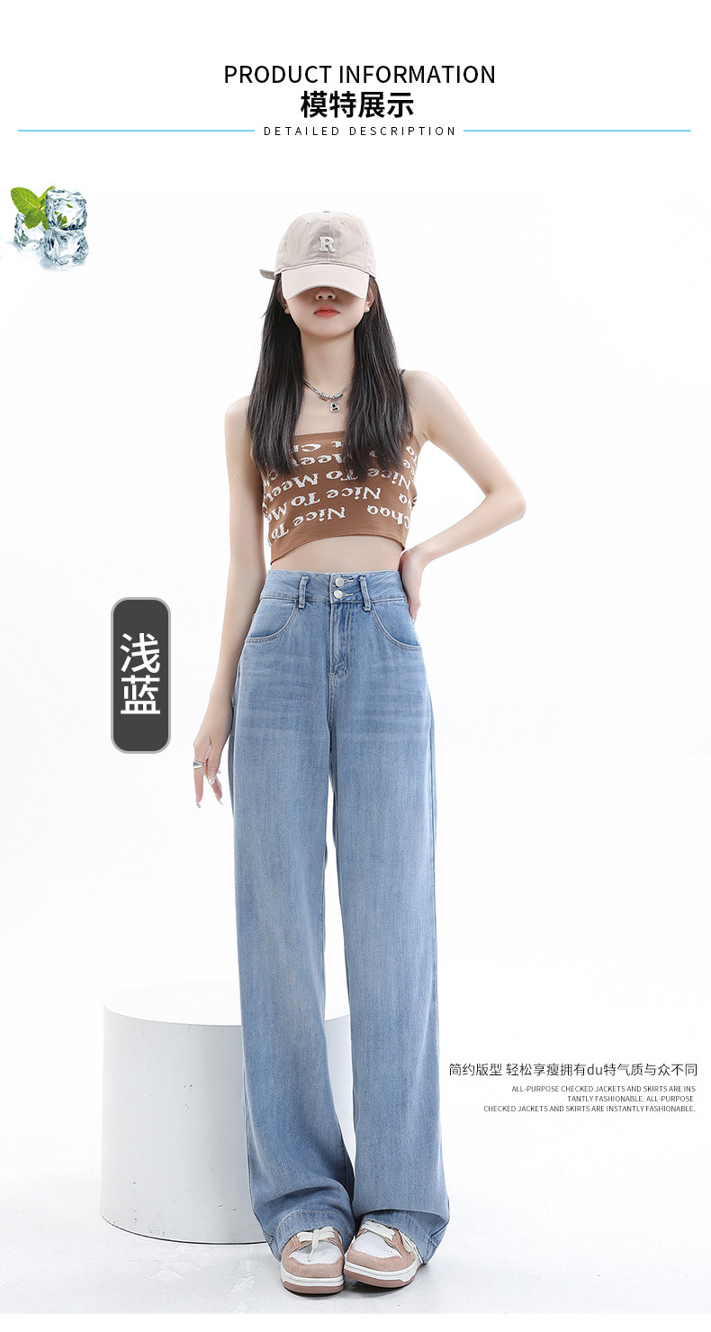 天丝牛仔裤女夏季薄款垂感小个子直筒莱赛尔浅蓝色冰丝窄版阔腿裤