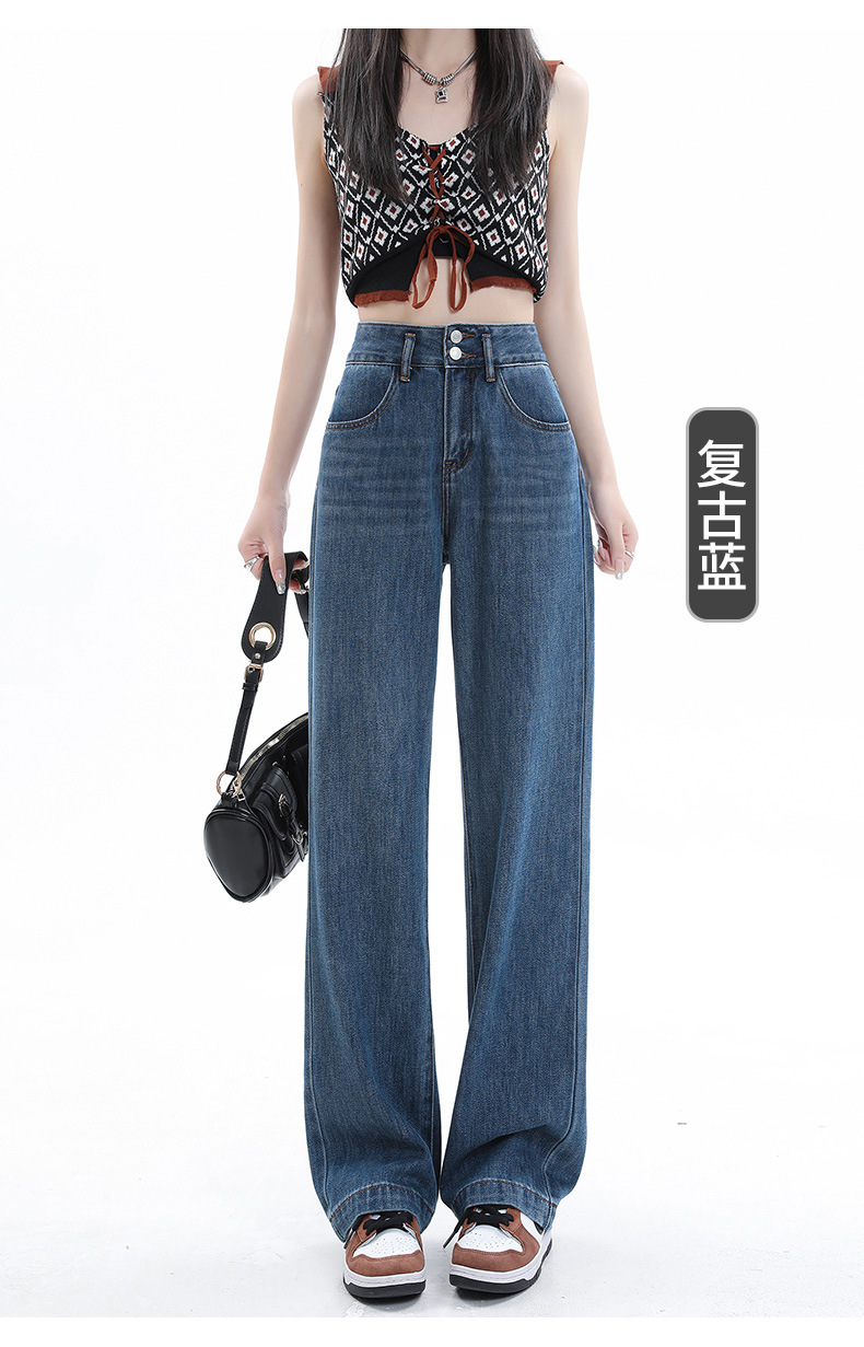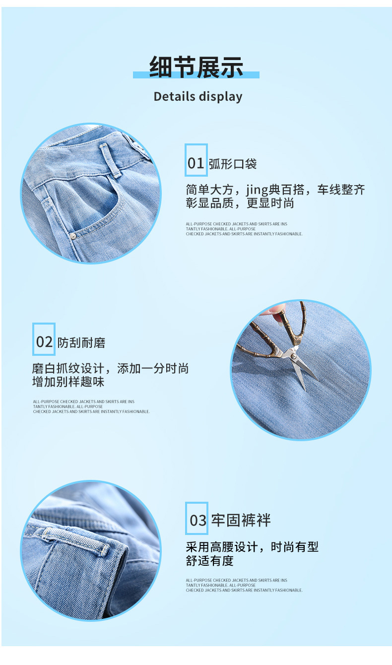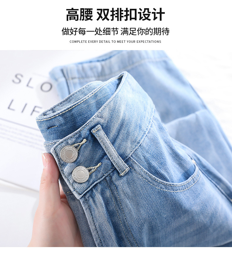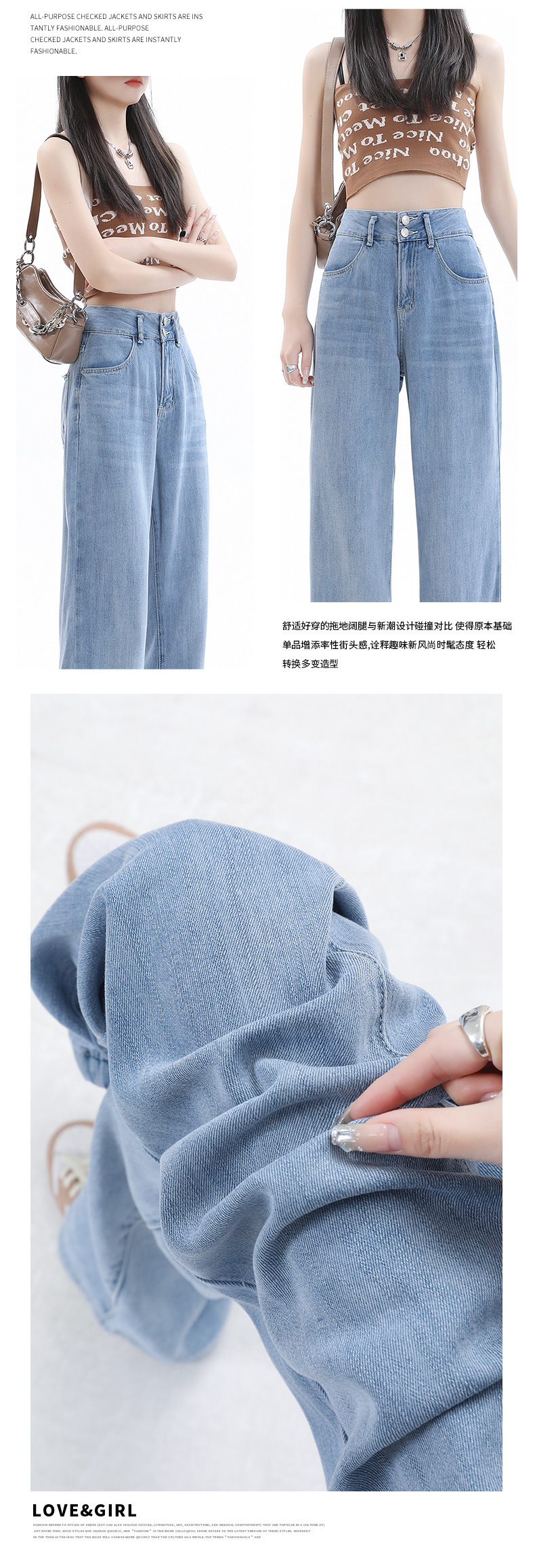 天丝牛仔裤女夏季薄款垂感小个子直筒莱赛尔浅蓝色冰丝窄版阔腿裤