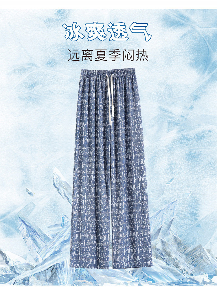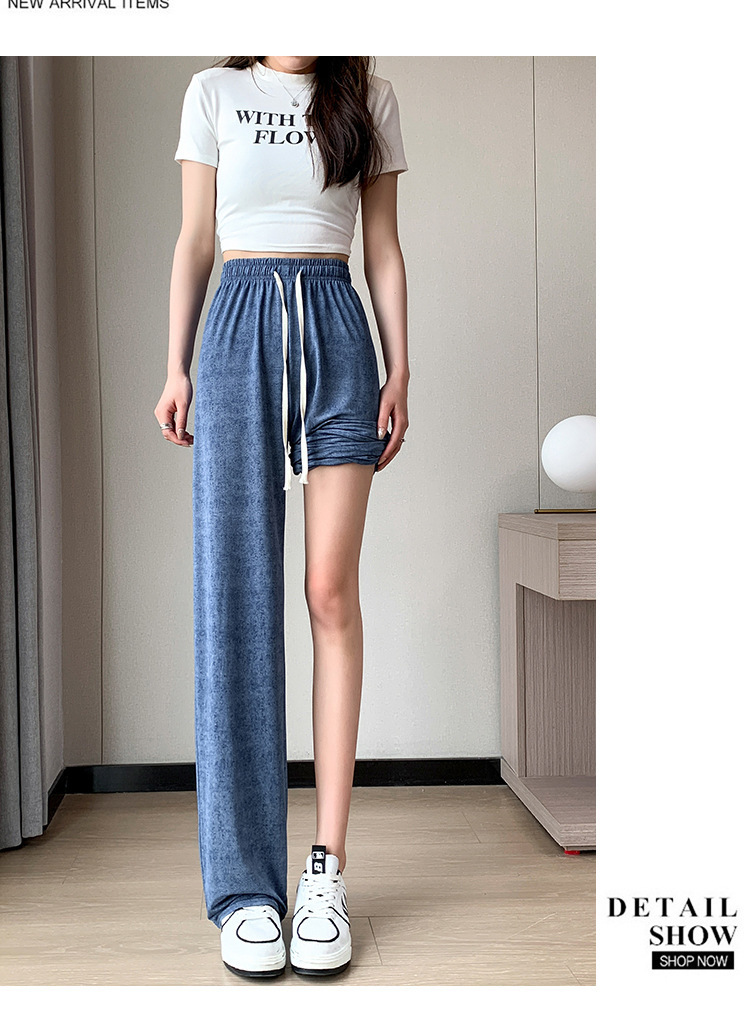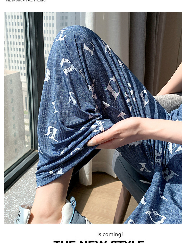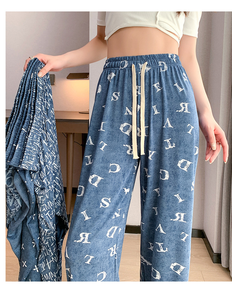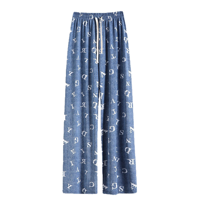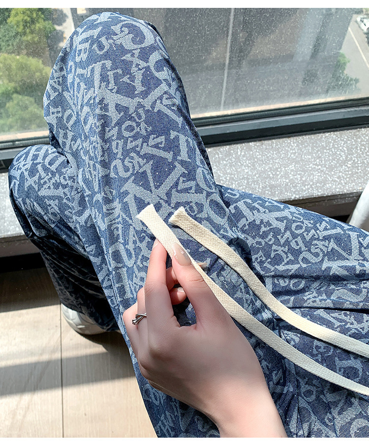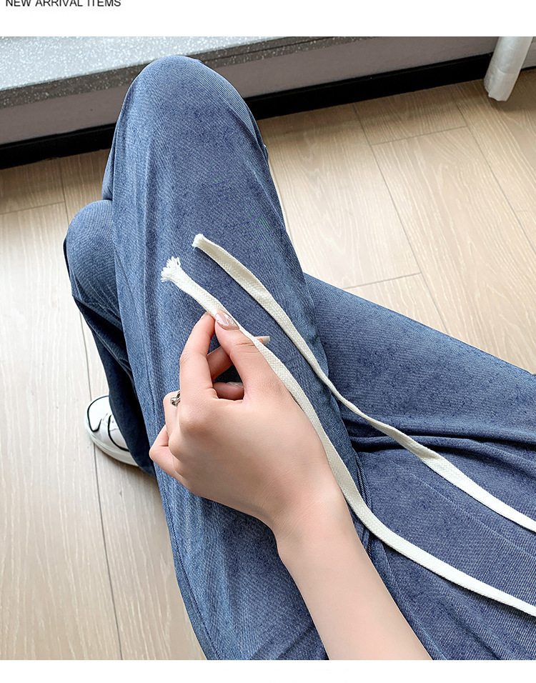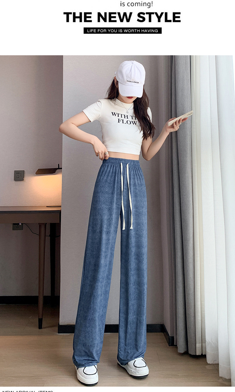 冰丝牛仔阔腿裤夏天丝女印花薄款休闲裤高腰宽松高腰垂感拖地裤