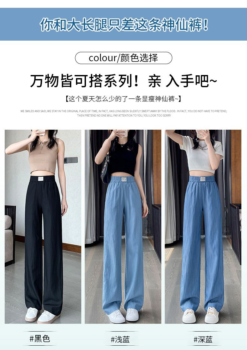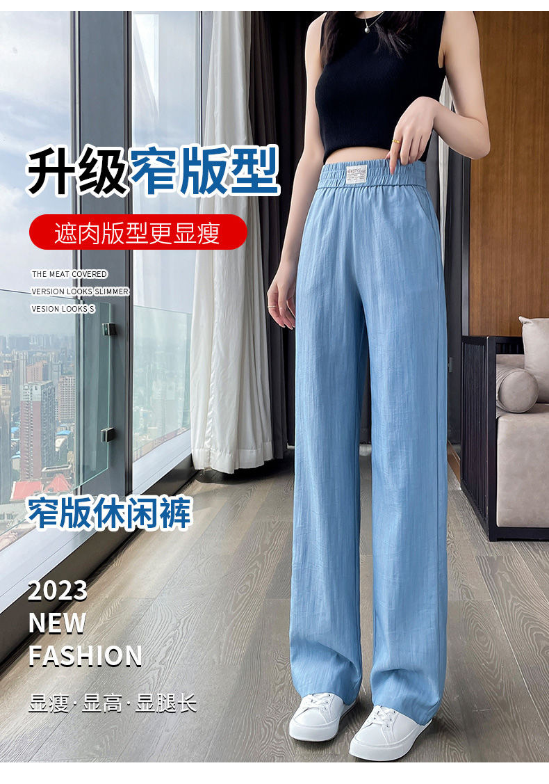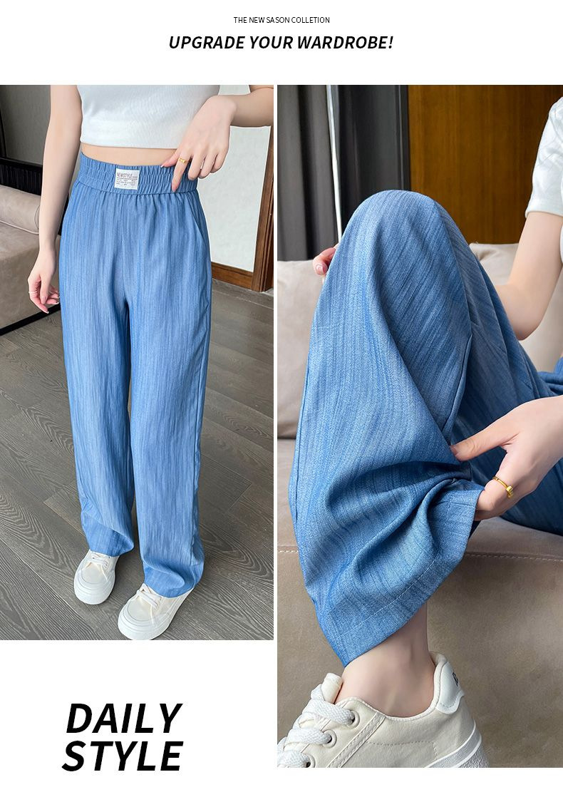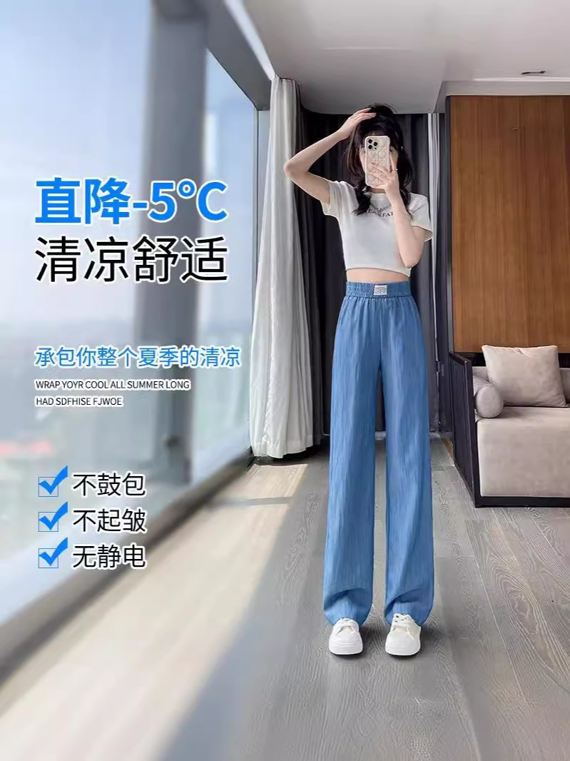 天丝牛仔裤女夏季薄款韩版新款高腰显瘦直筒休闲冰丝垂感阔腿裤凉