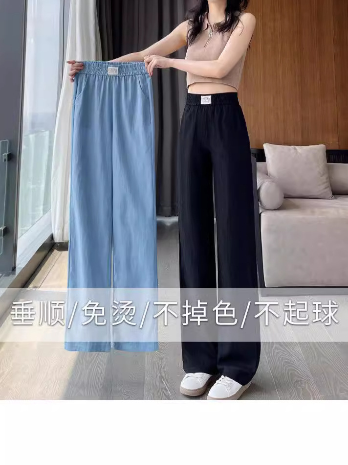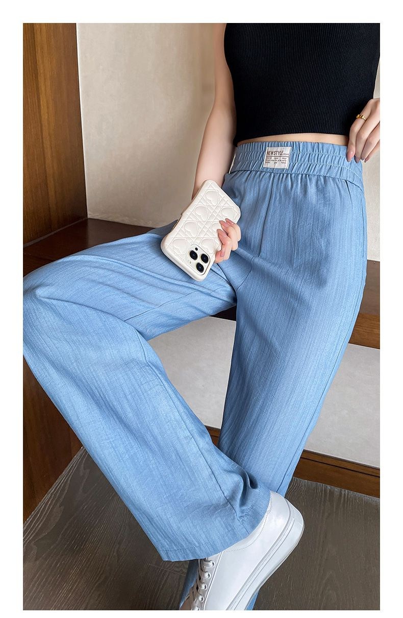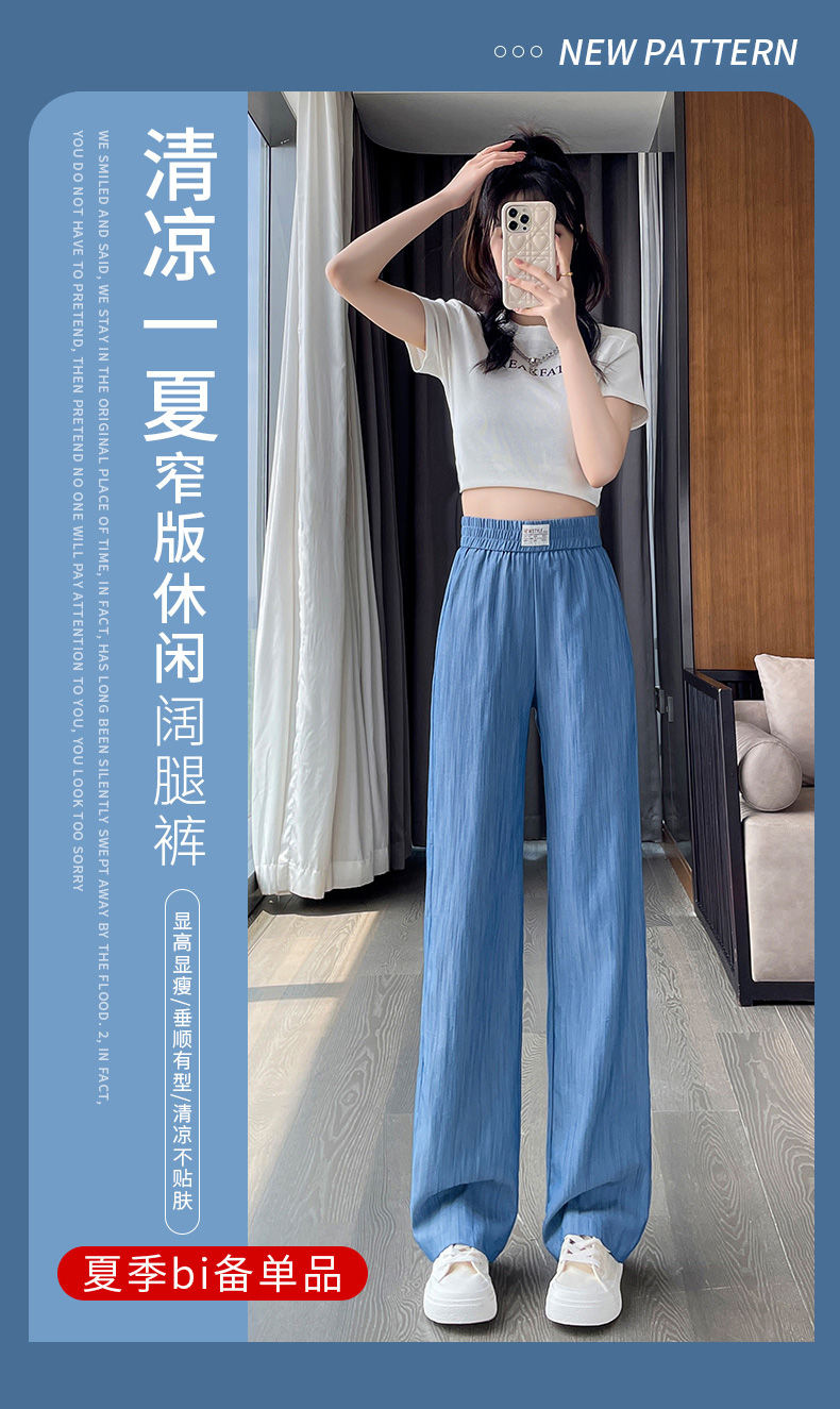 天丝牛仔裤女夏季薄款韩版新款高腰显瘦直筒休闲冰丝垂感阔腿裤凉