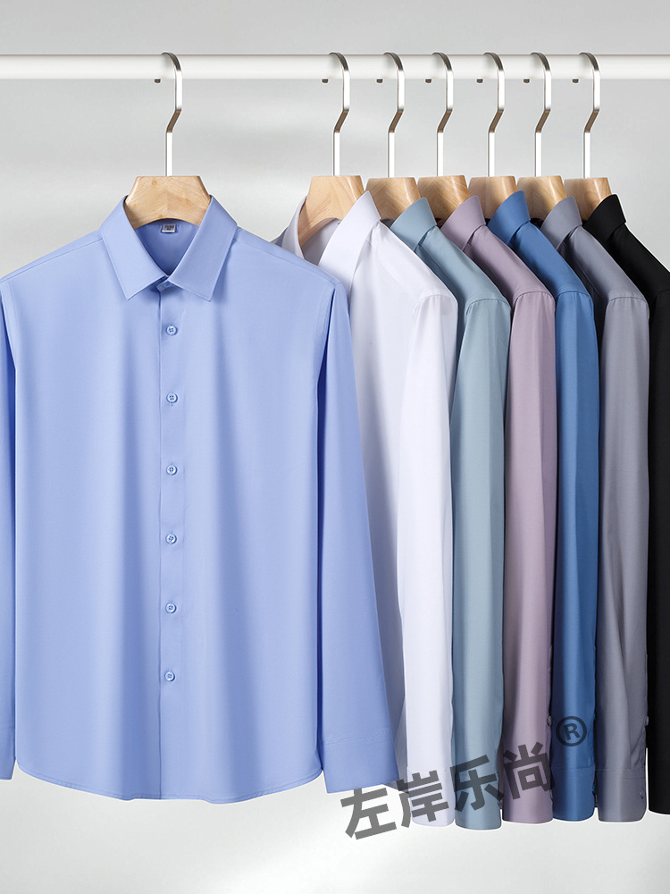 高端免烫桑蚕丝男士短袖衬衫白色商务衬衣蓝色灰色黑色绿色男衬衫