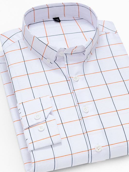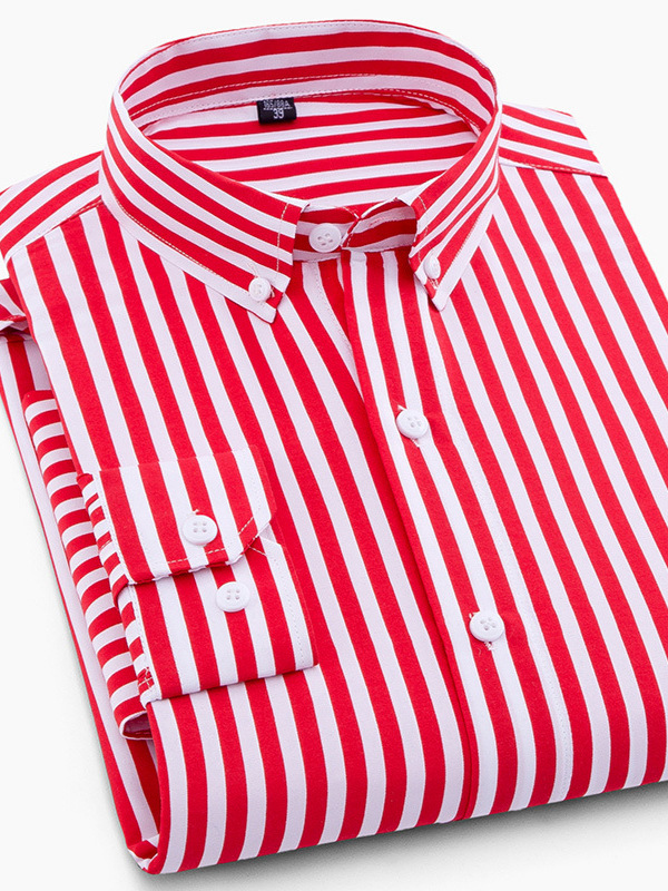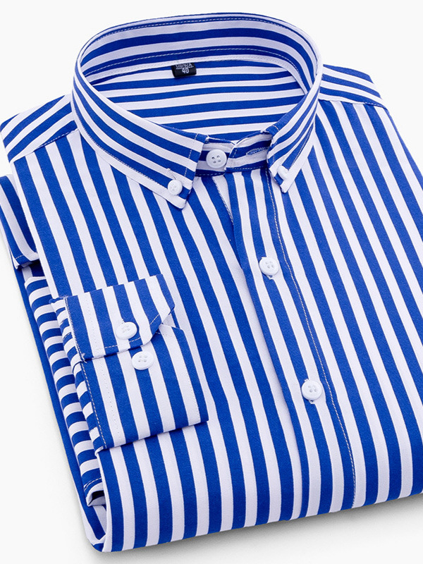 春秋款 男士衬衫 长袖衬衣男装休闲的衬衫男条纹聚酯纤维男式寸衫