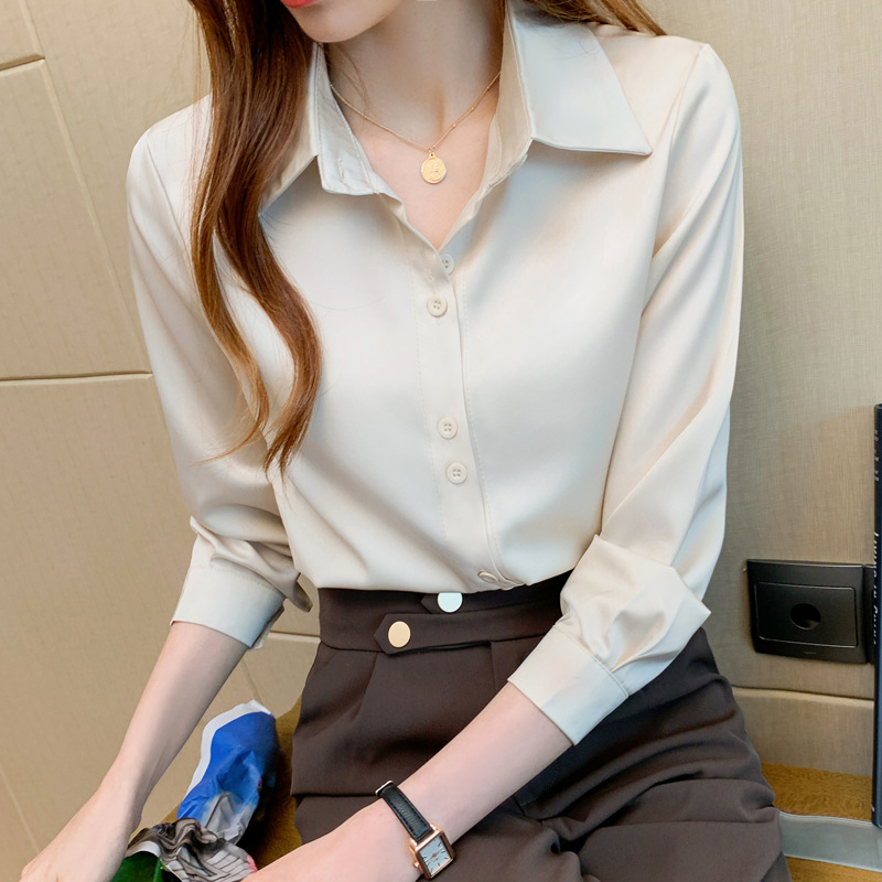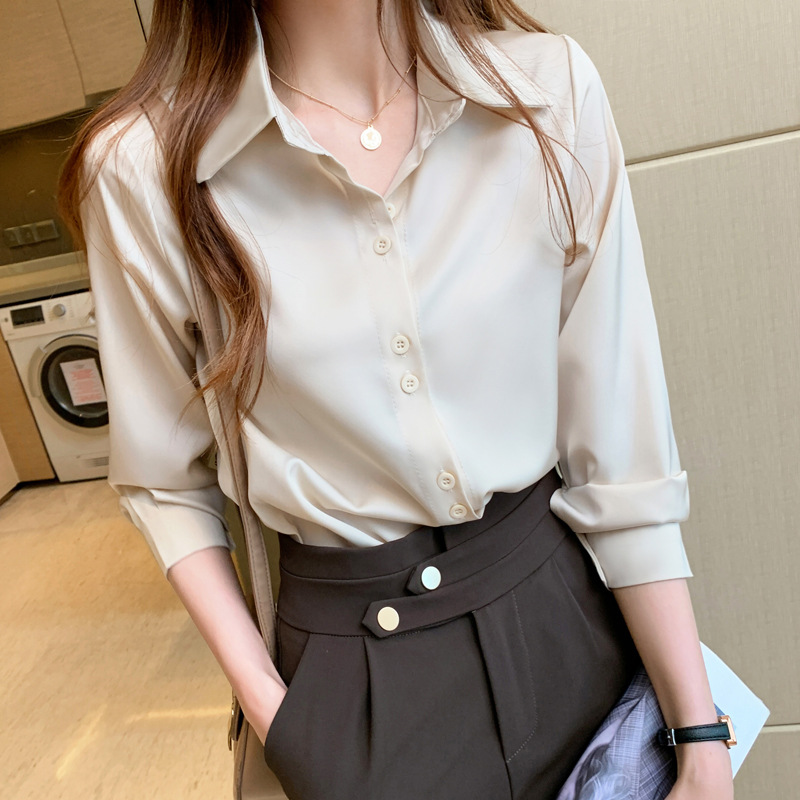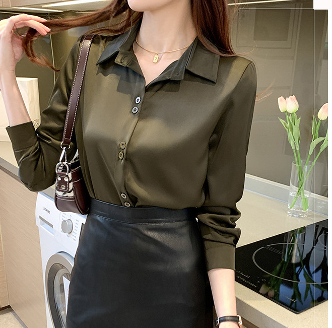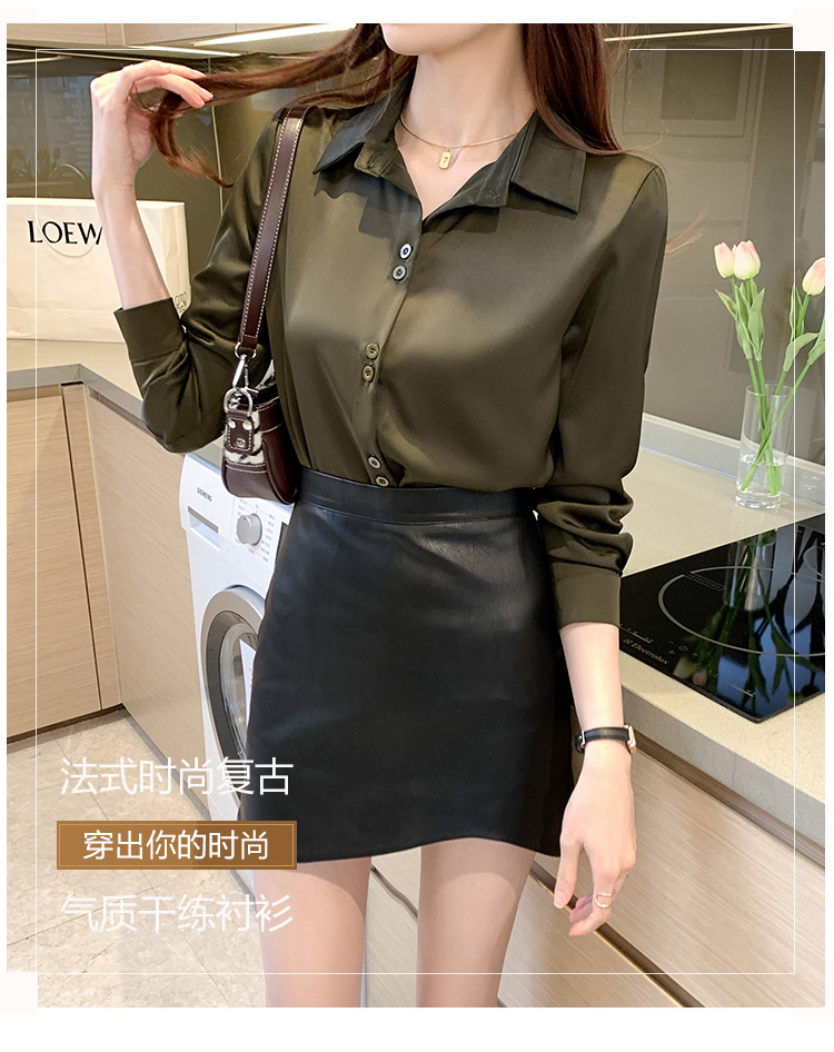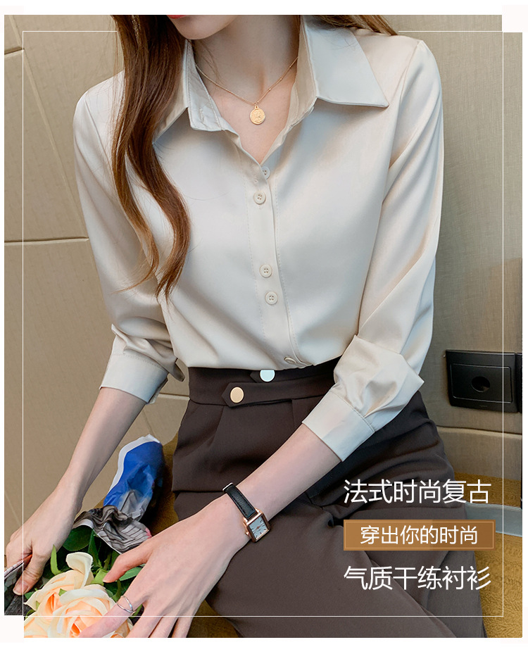 2025年春夏季韩版职业衬衫女设计感小众复古港味上衣醋酸缎面衬衣