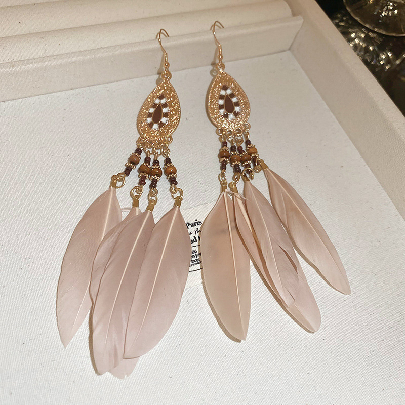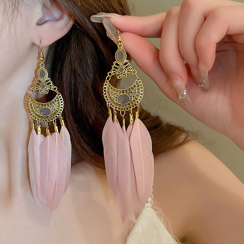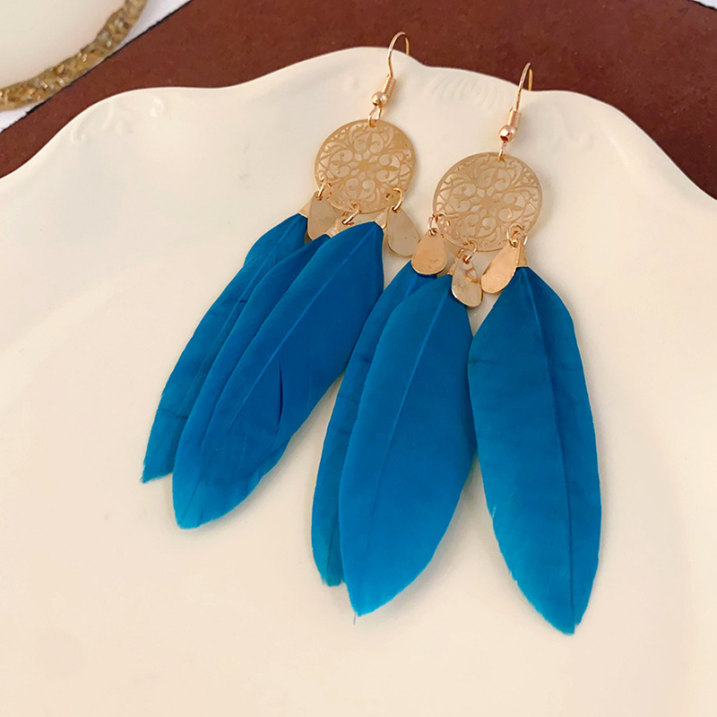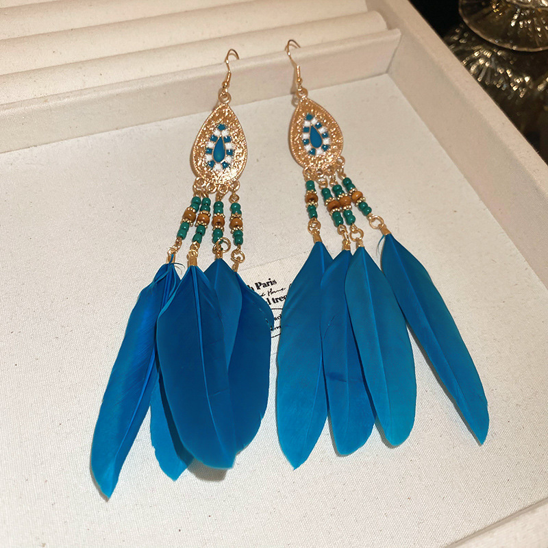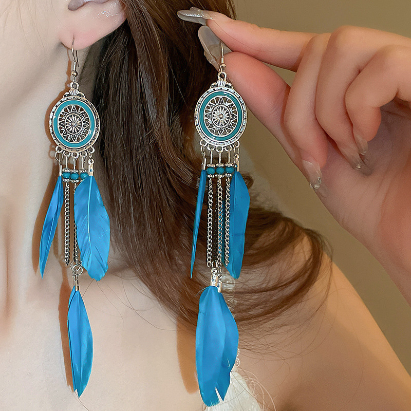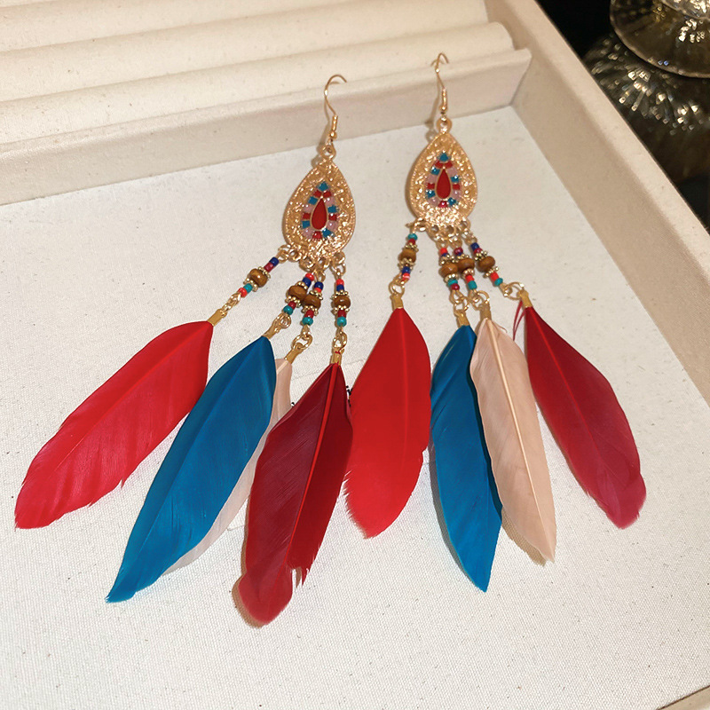 民族风几何滴油树叶羽毛耳钩波西米亚长款复古耳环个性时尚耳饰女
