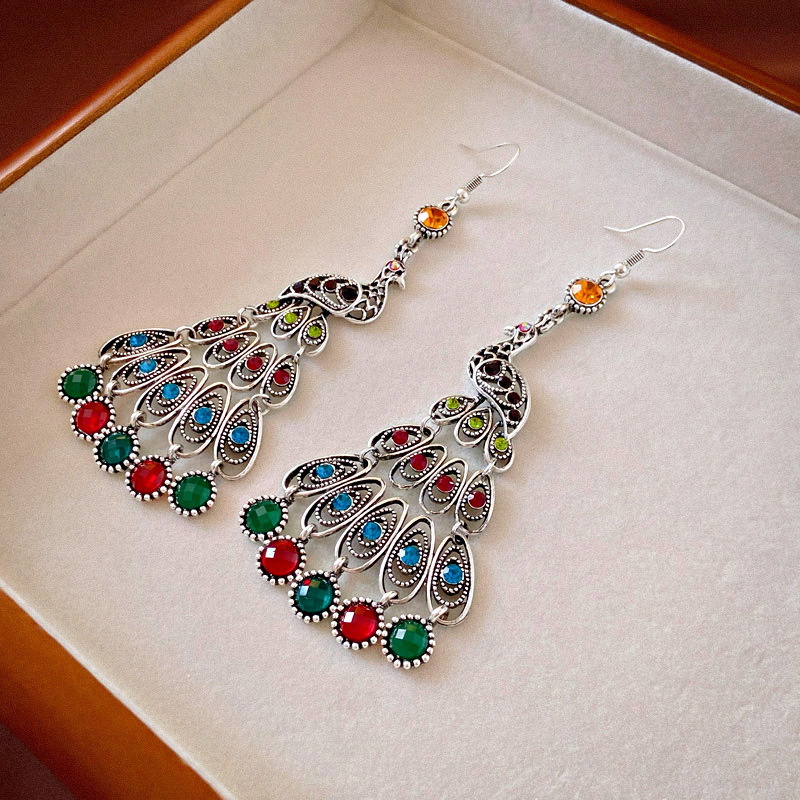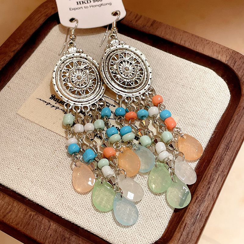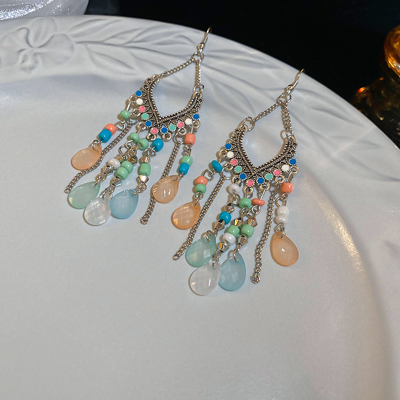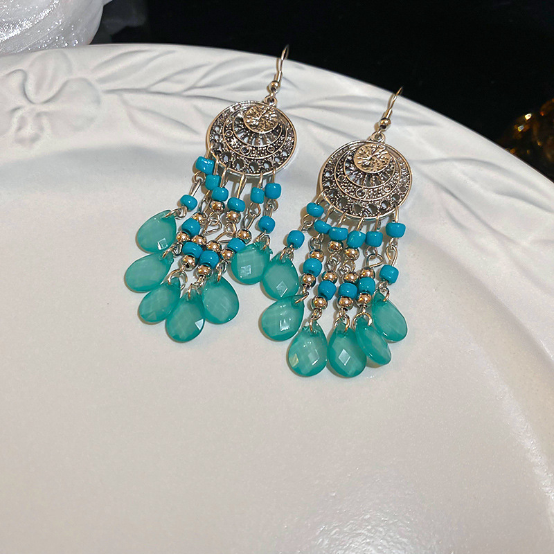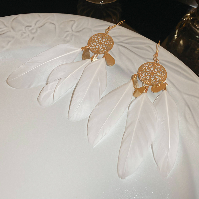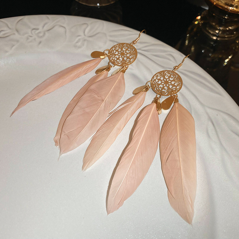 民族风几何滴油树叶羽毛耳钩波西米亚长款复古耳环个性时尚耳饰女