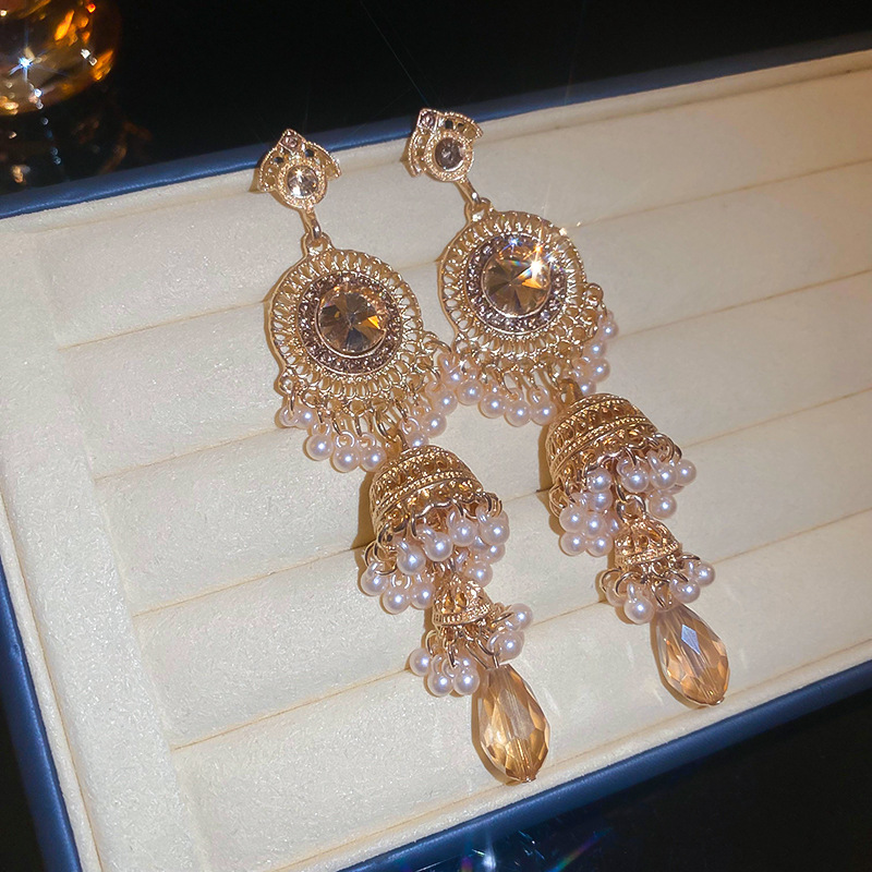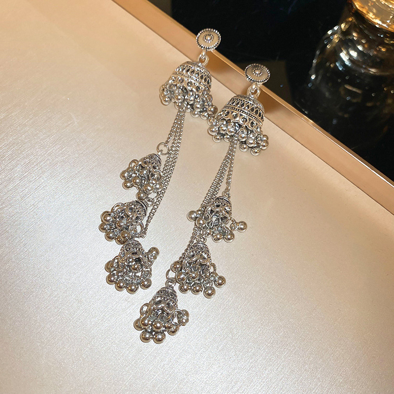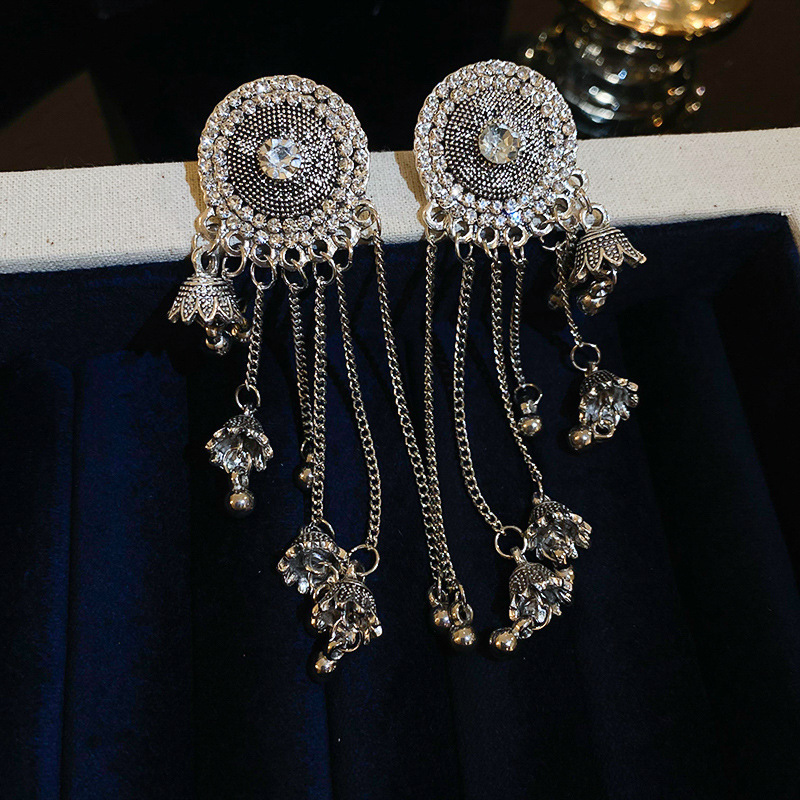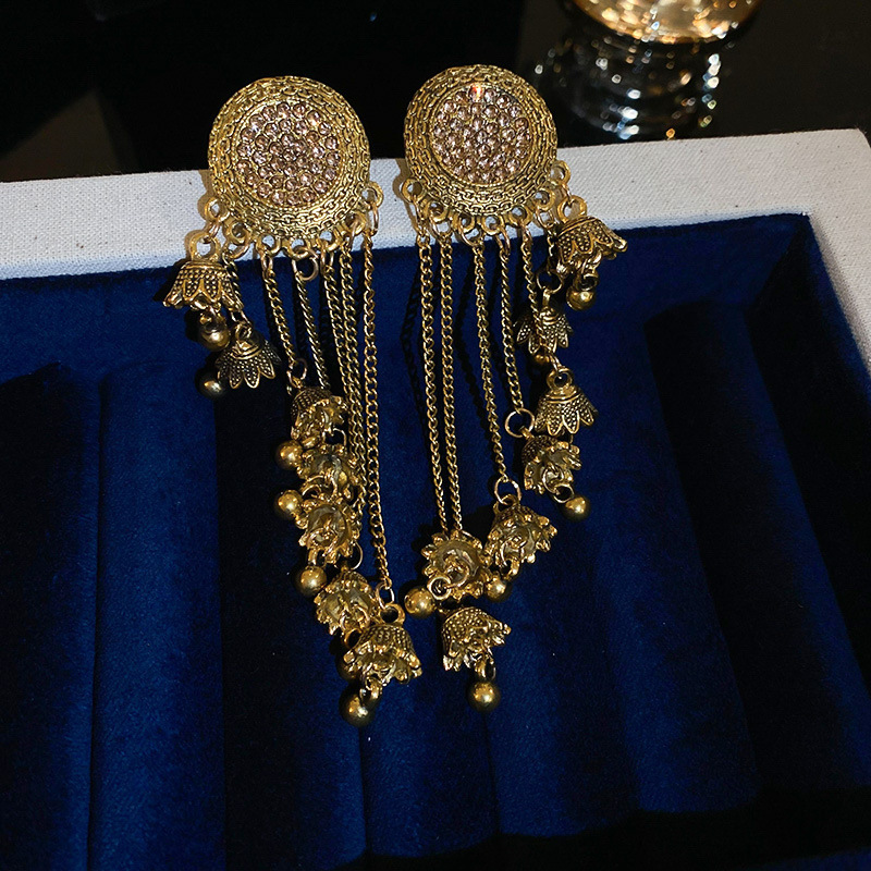 欧美复古金属流苏耳环轻奢高级感气质耳坠小众设计长款耳饰女批发