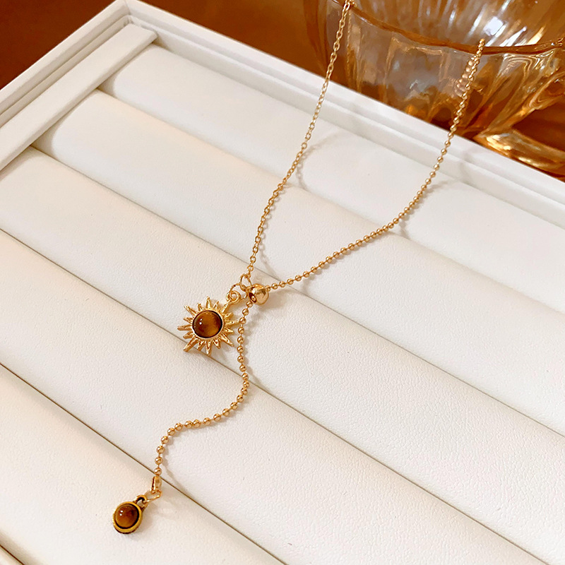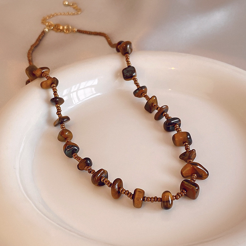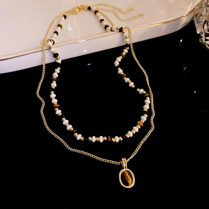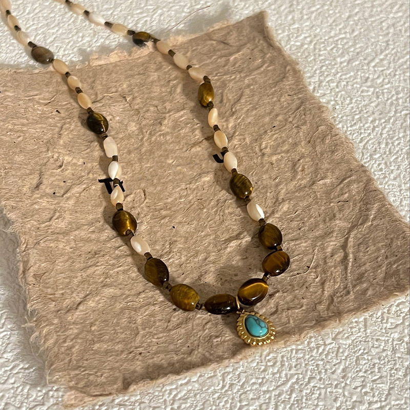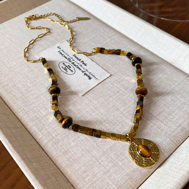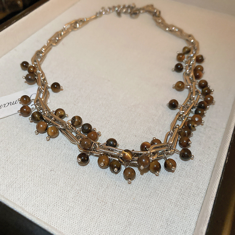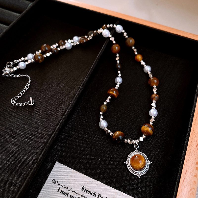 钛钢珍珠虎眼石项链美拉德复古气质锁骨链小众轻奢不锈钢项饰批发