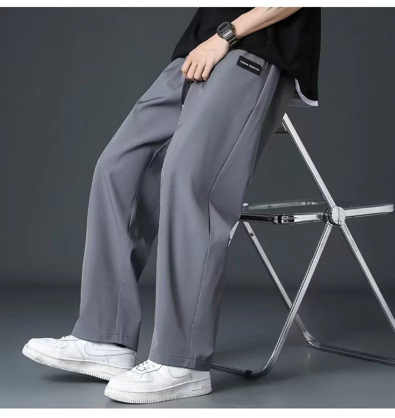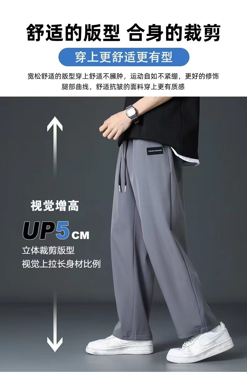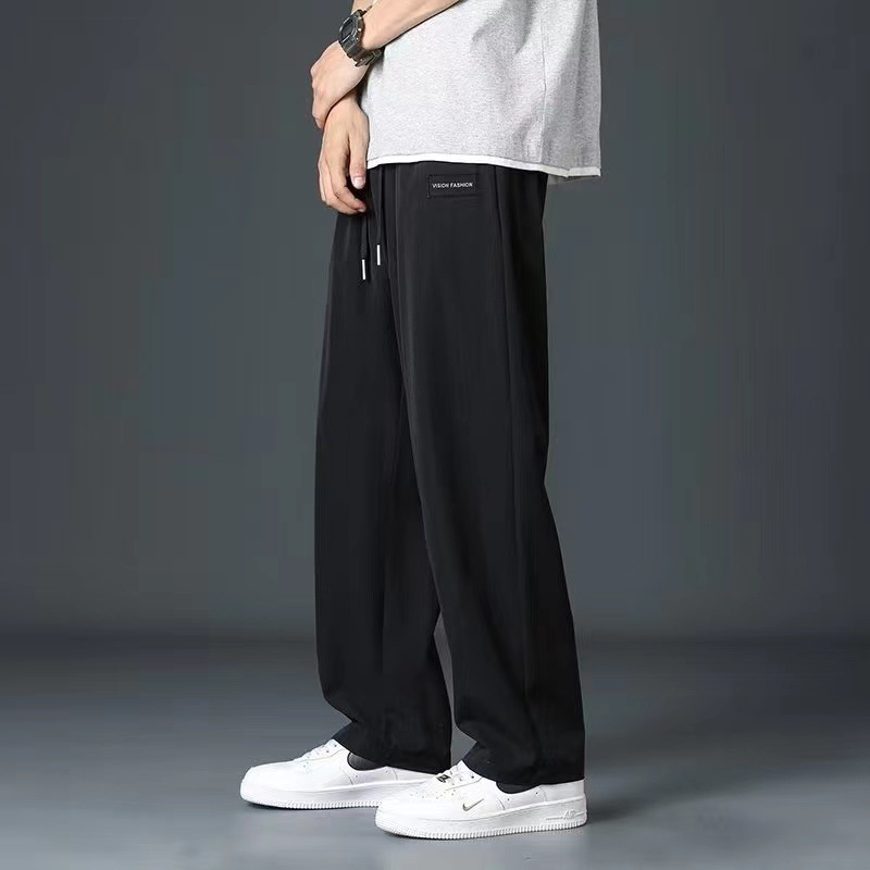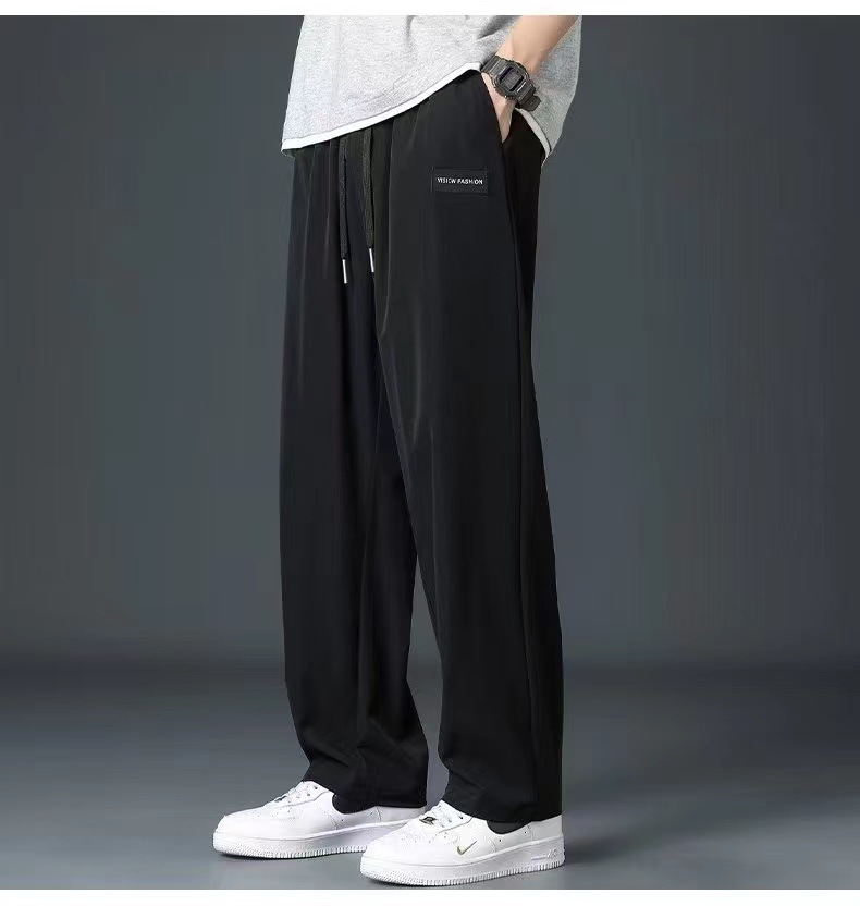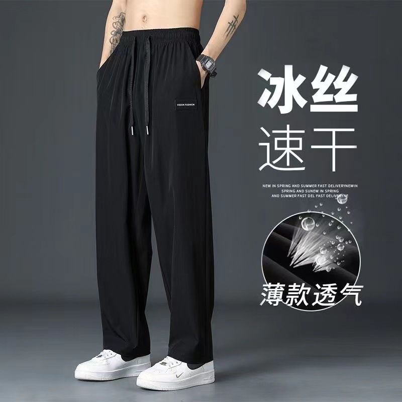 冰丝裤子男士夏季薄款潮休闲长裤运动速干男宽松直筒垂感裤1/2件
