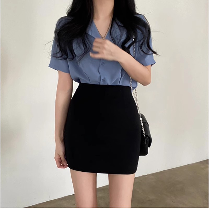 黑色包臀短裙女夏季2025高腰显瘦紧身OL职业半身裙弹力一步裙春秋