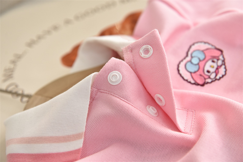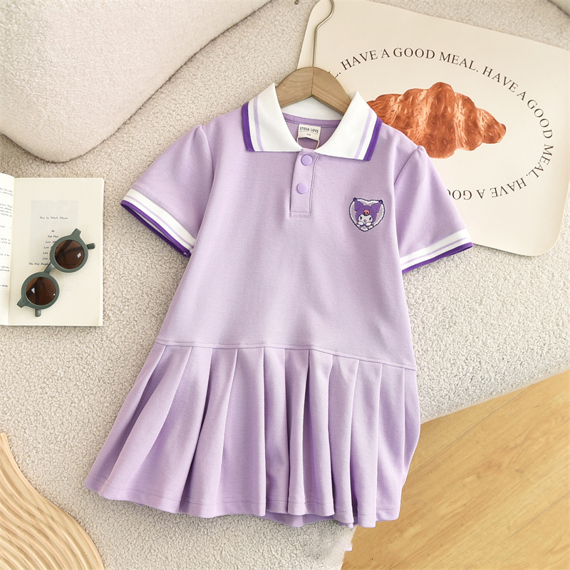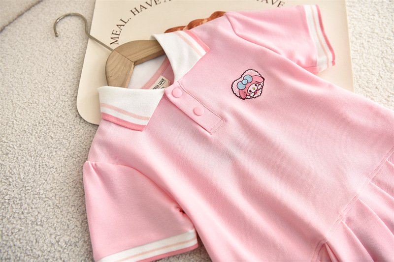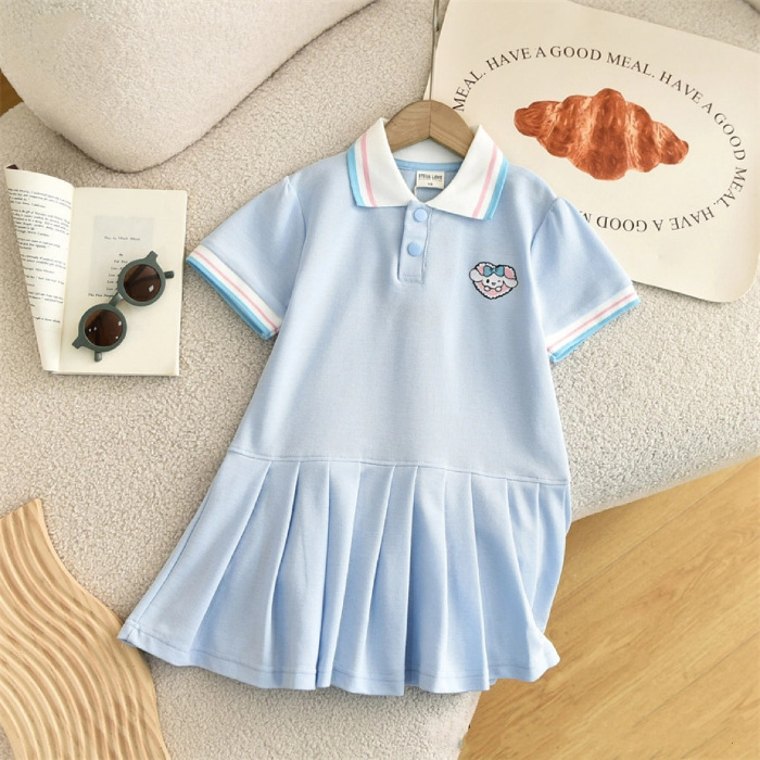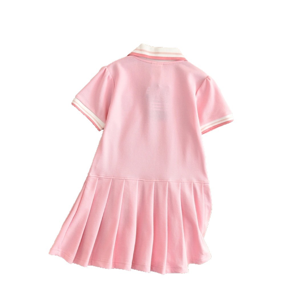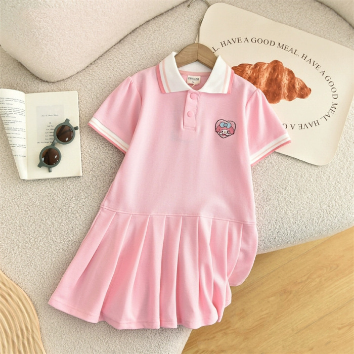 网红女童韩版时尚休闲连衣裙中大童夏季新款洋气卡通短袖翻领裙子
