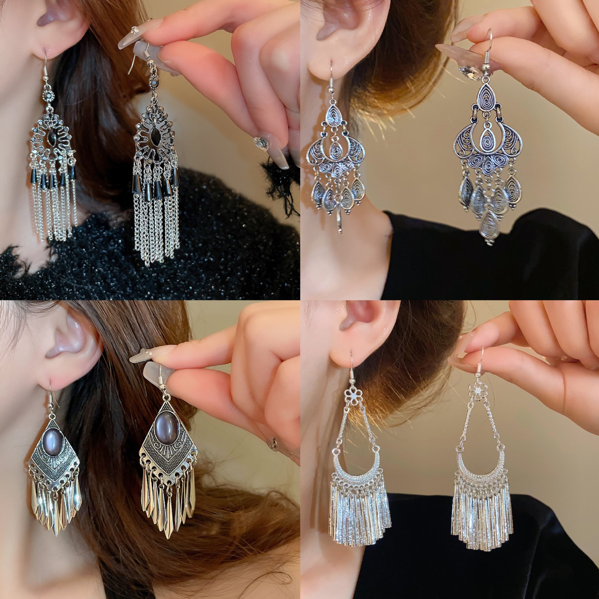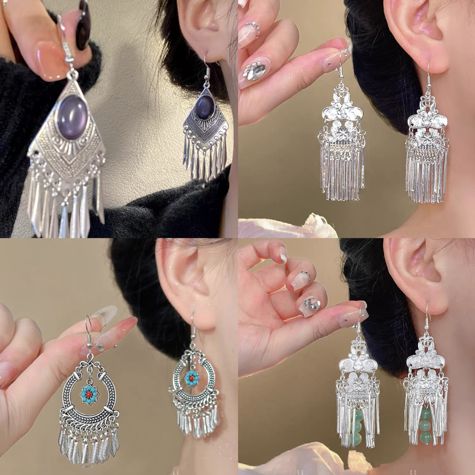 民族风花朵流苏耳环小众百搭中国风耳坠气质轻奢高级感耳饰批发女
