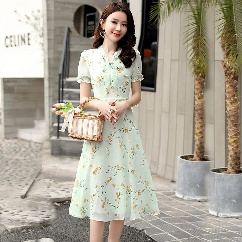 泰国风海边度假短袖碎花裙胖MM收腰大码时尚印花V领甜美连衣裙女