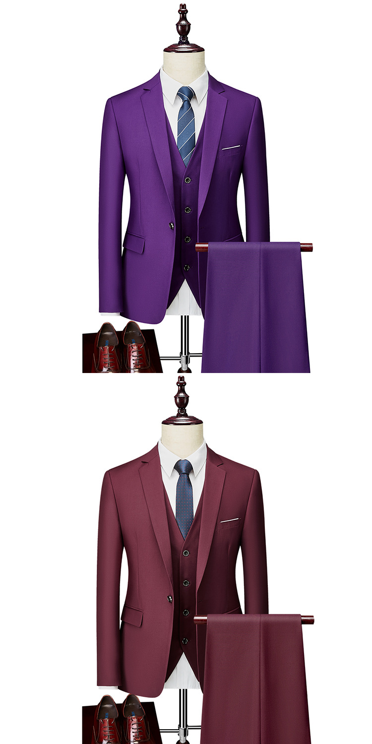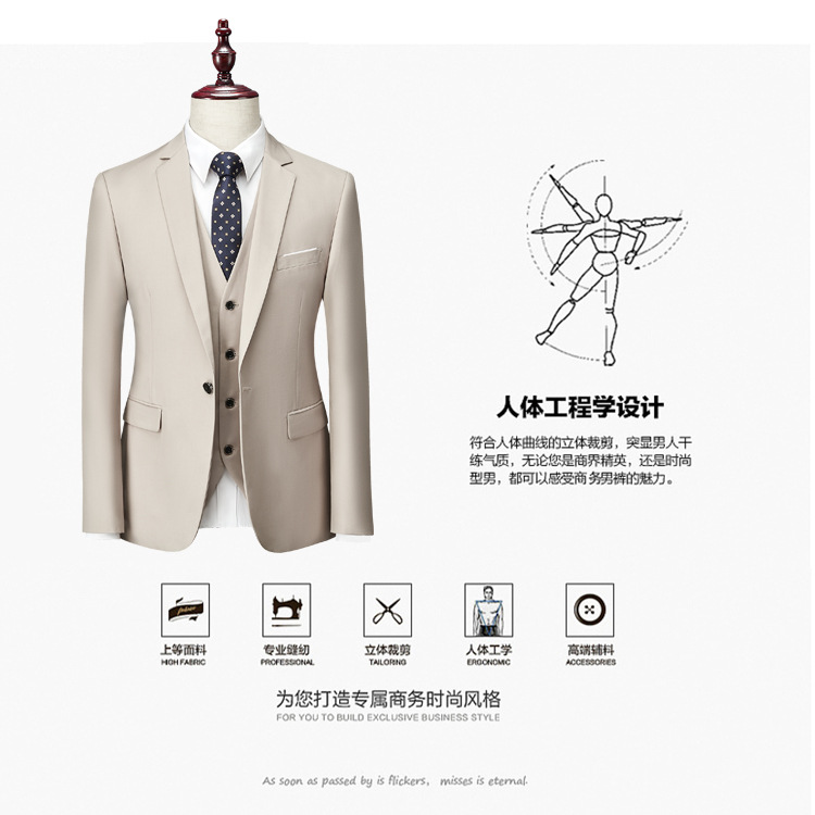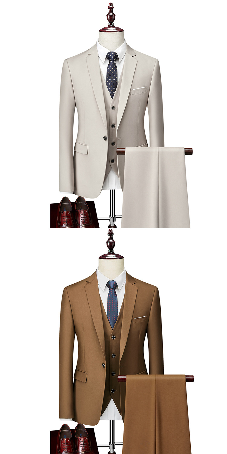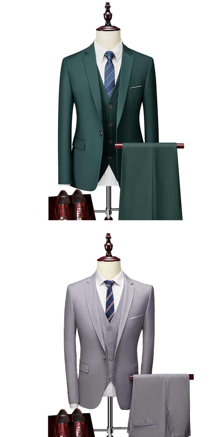 亚马逊外贸男士商务休闲西服套装结婚新郎一扣礼服西装三件套P190