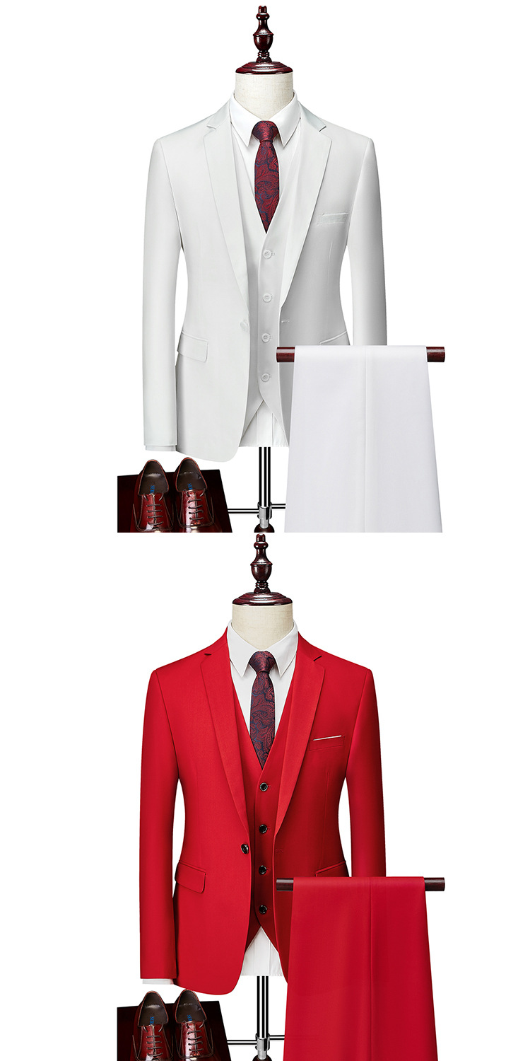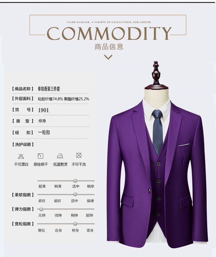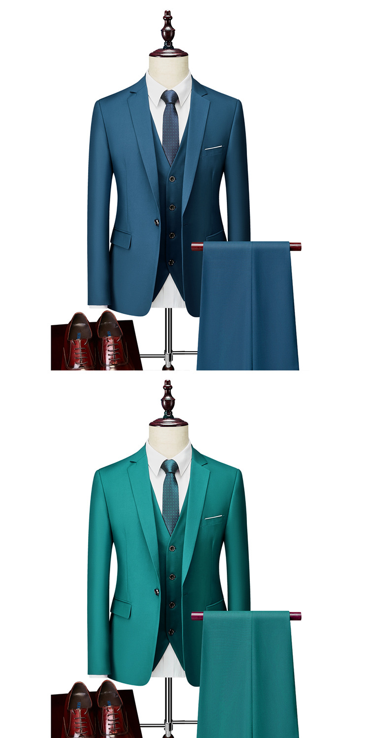 亚马逊外贸男士商务休闲西服套装结婚新郎一扣礼服西装三件套P190