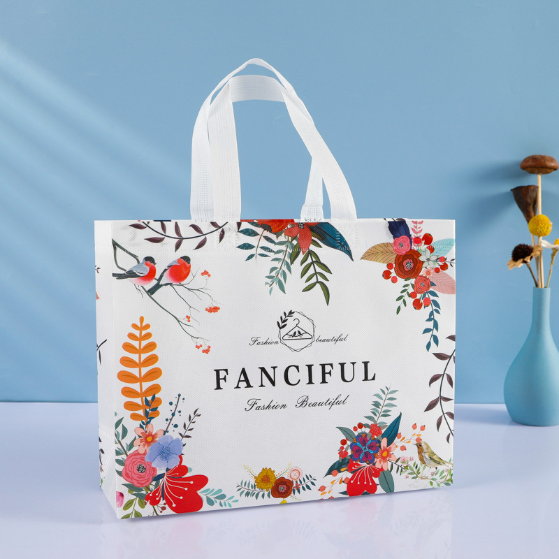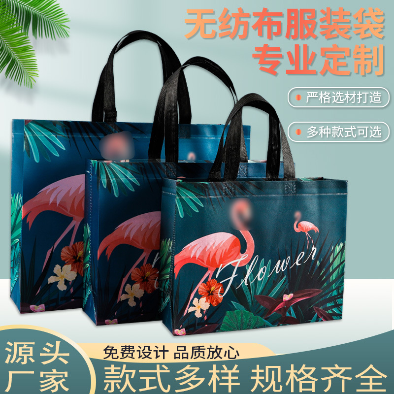 现货覆膜无纺布袋横版服装购物手提袋彩印礼品立体袋无纺布袋定制
