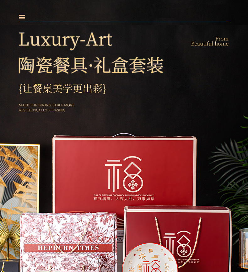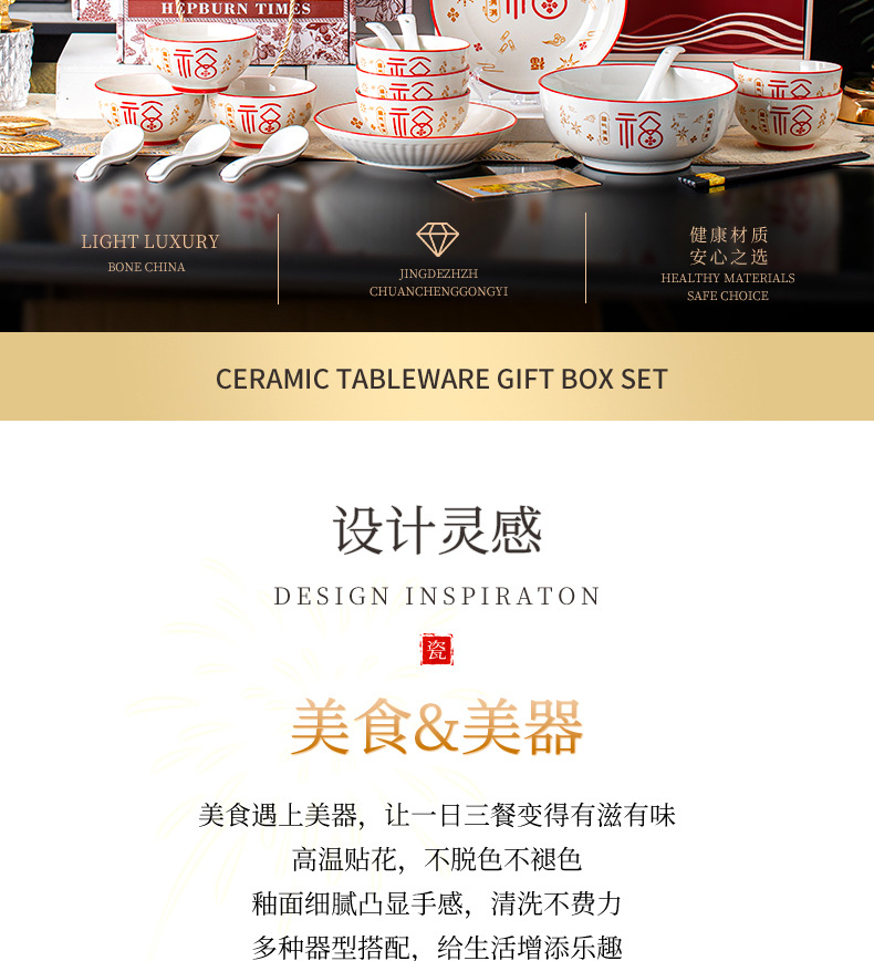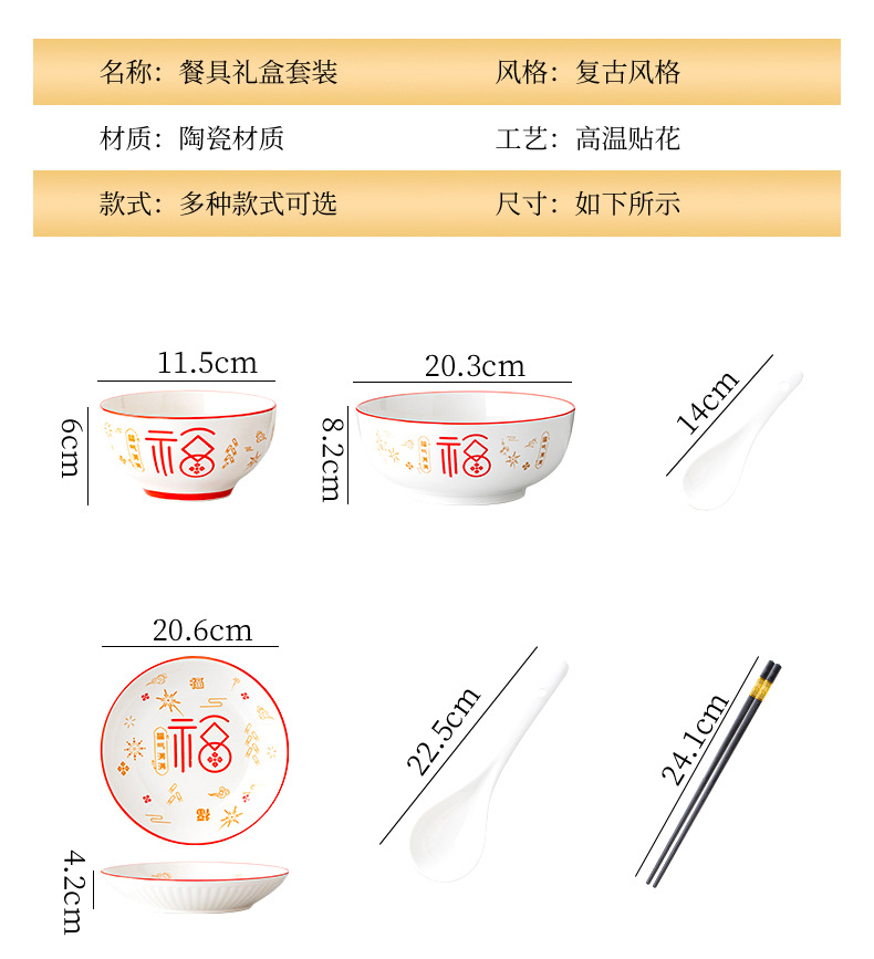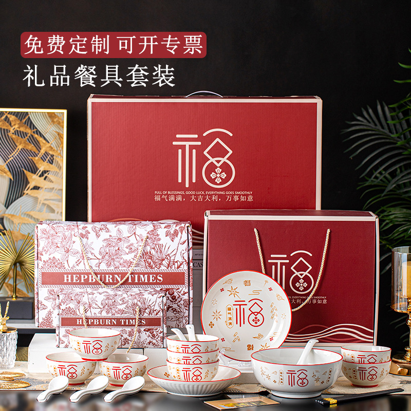 碗碟盘陶瓷餐具礼品伴手礼碗筷勺子礼品碗组合送礼餐具套装礼盒