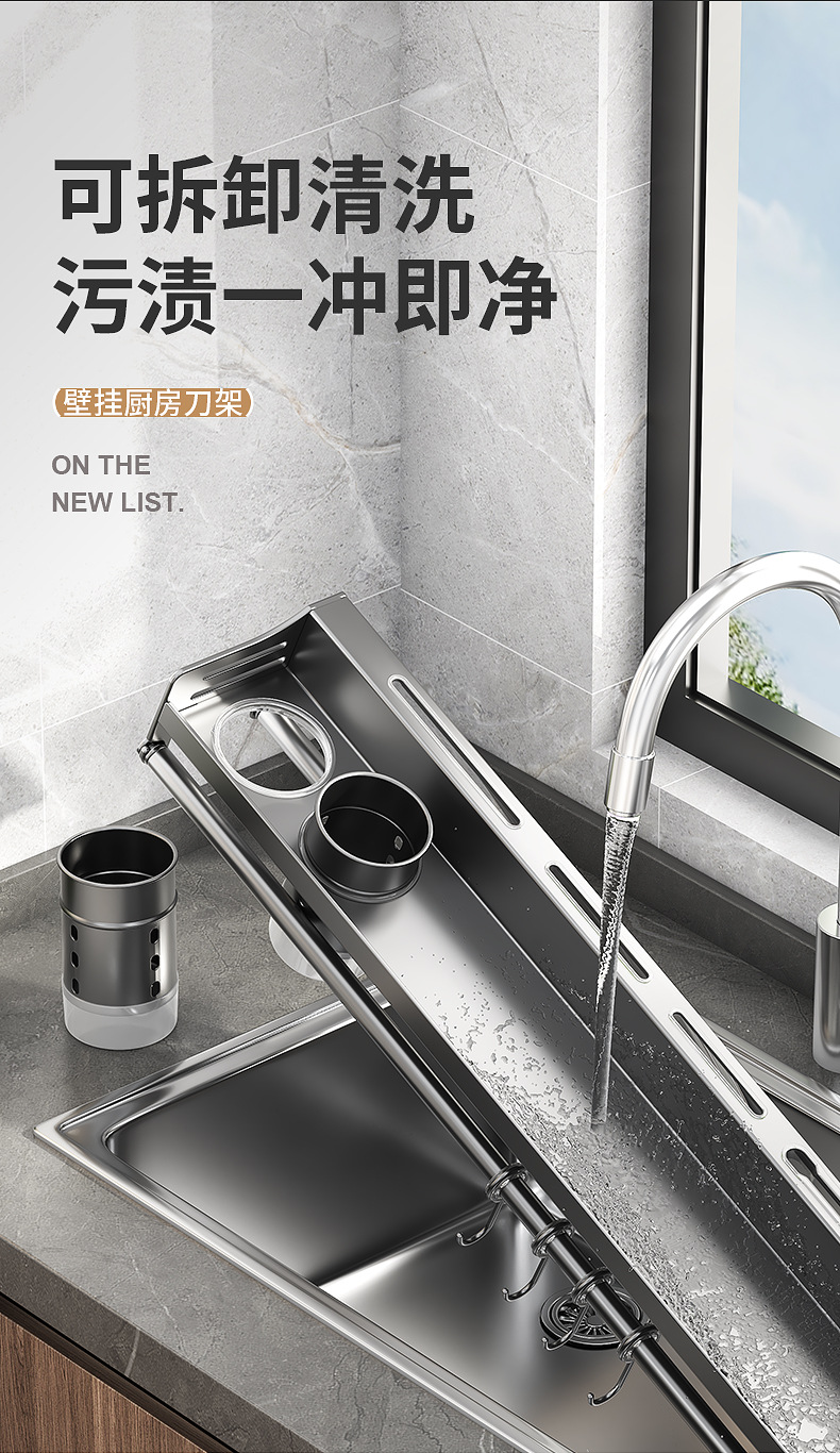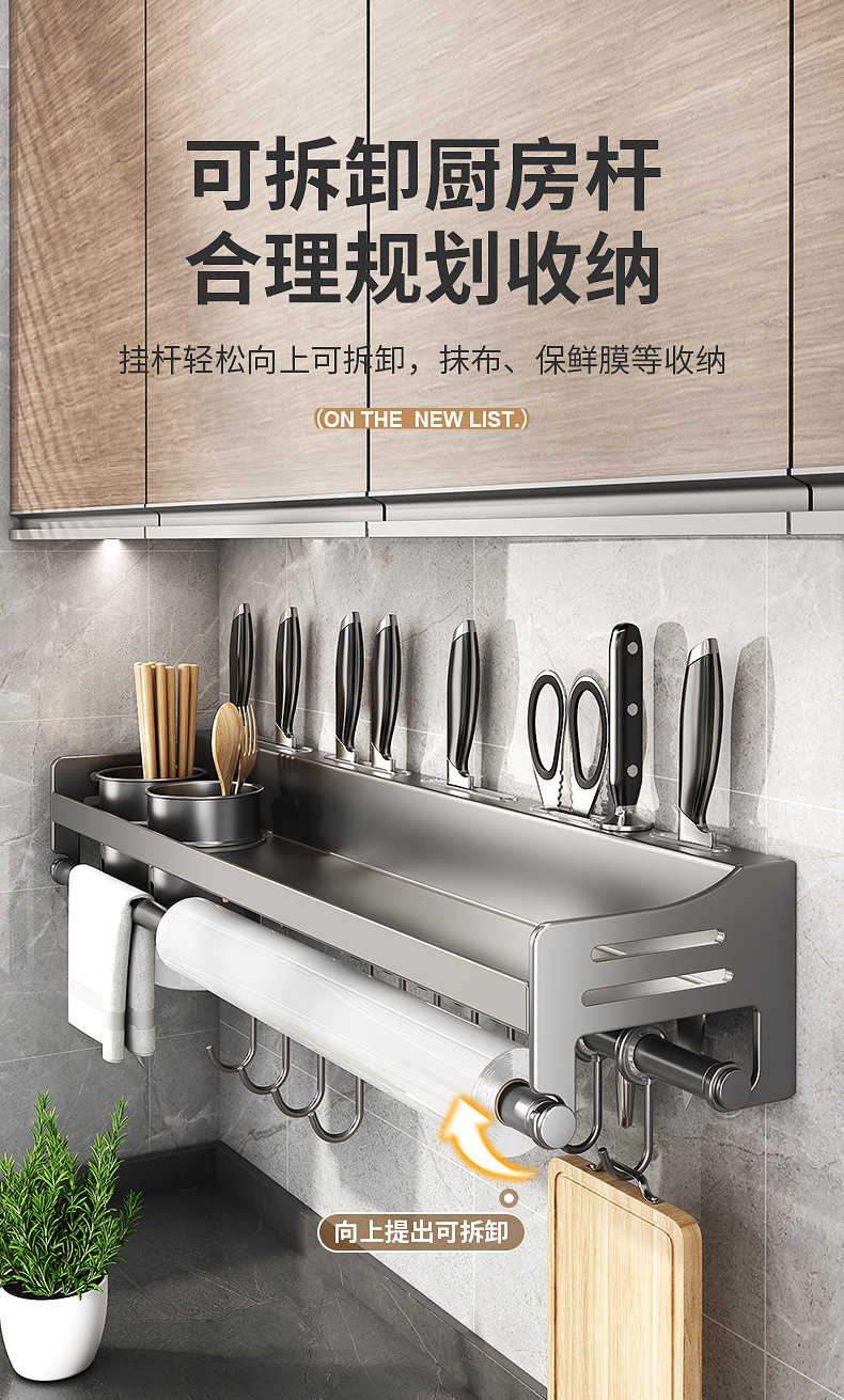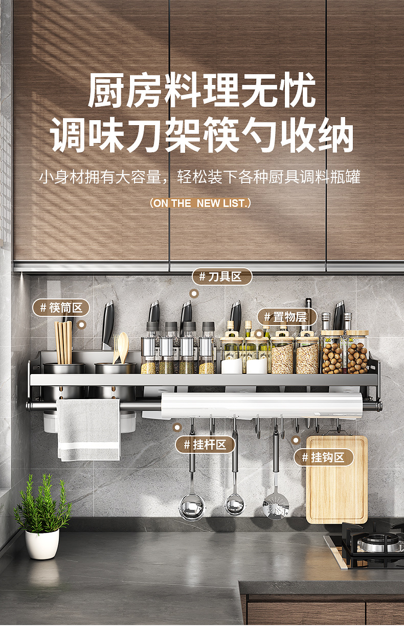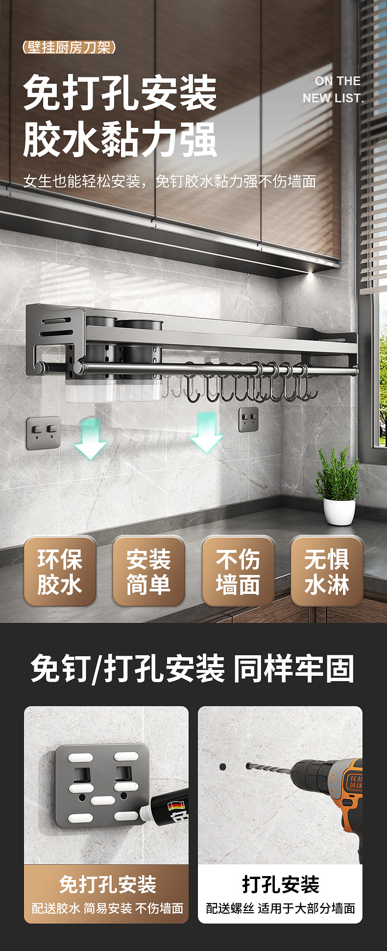 跨境家用厨房置物架免打孔多功能调料架刀架刀具筷子砧板收纳架
