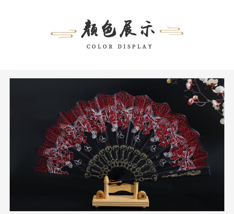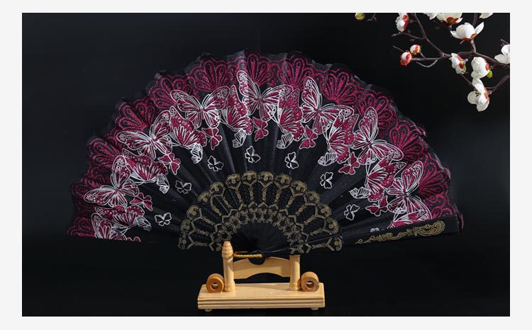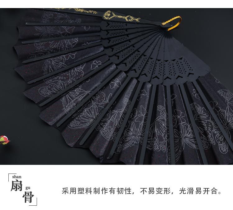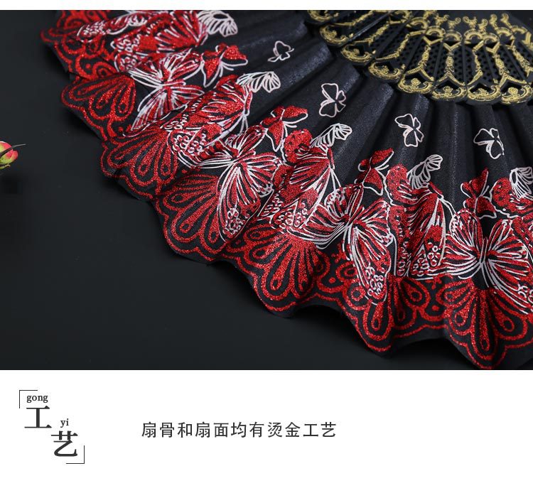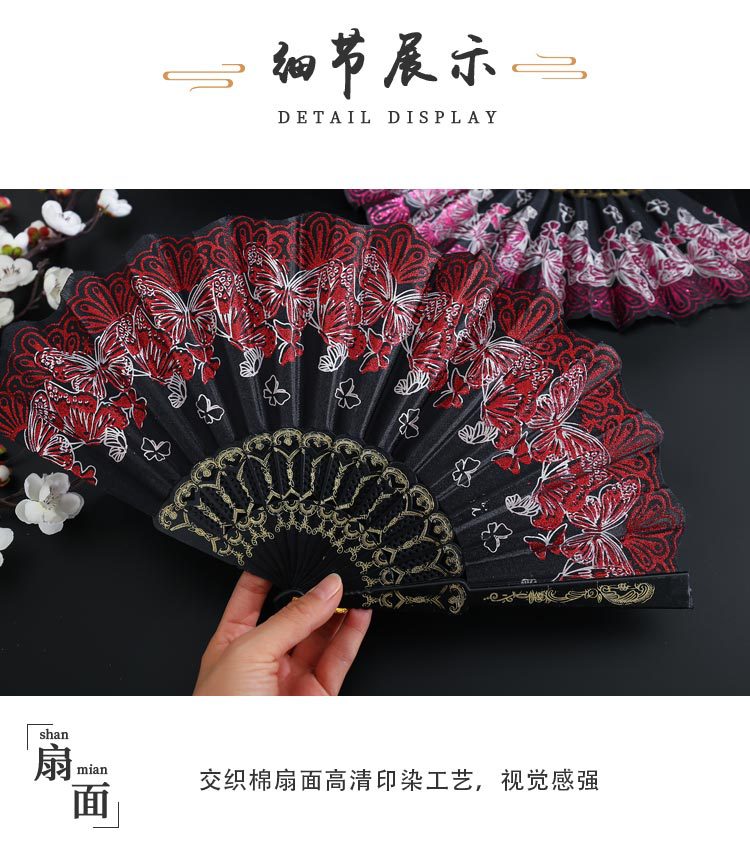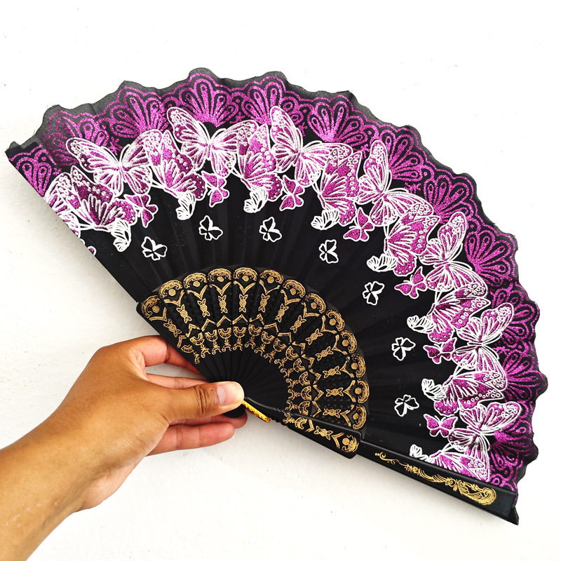 现货蝴蝶花折扇6色旗袍舞蹈扇洛塔丽网红塑料折叠扇跨境爆款扇子