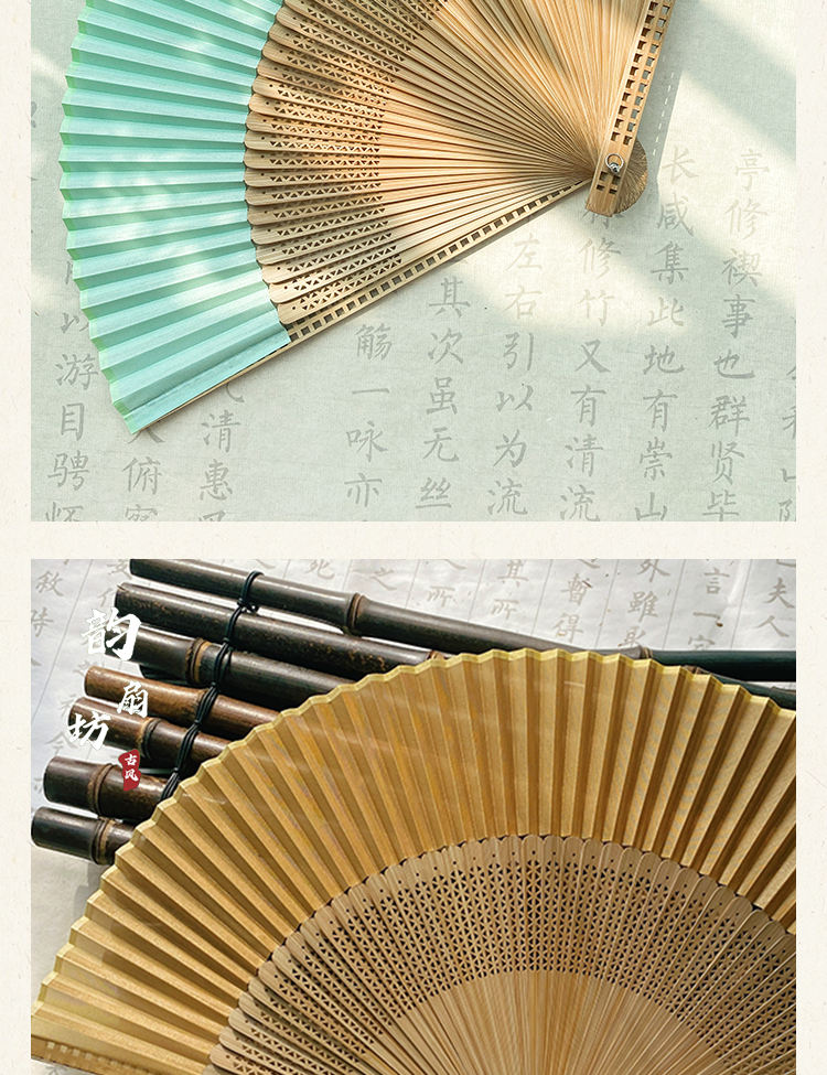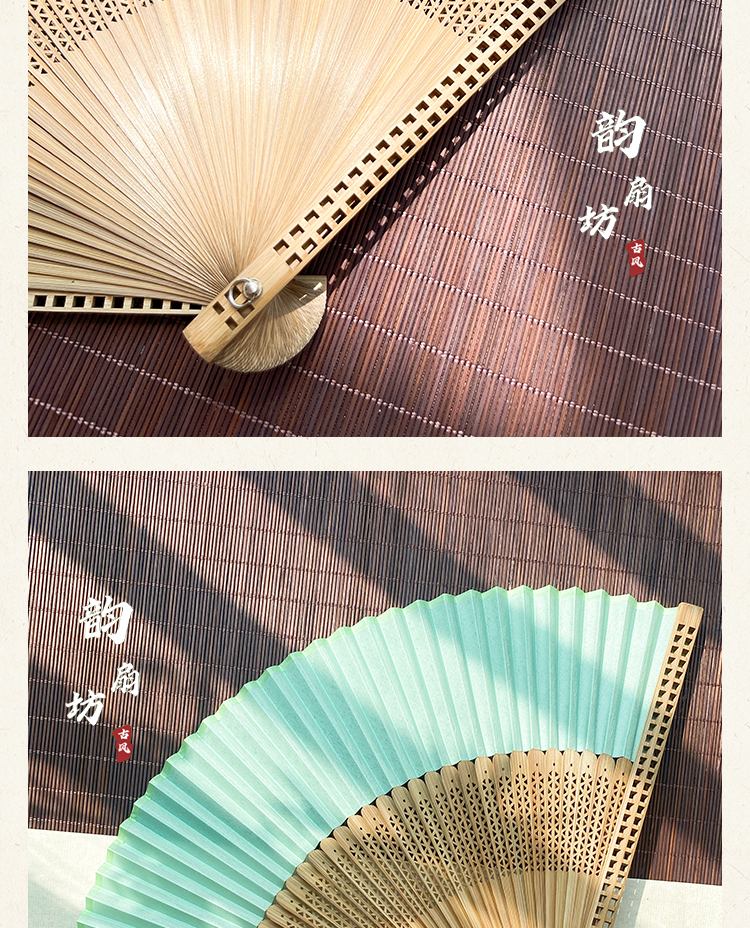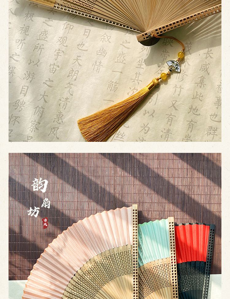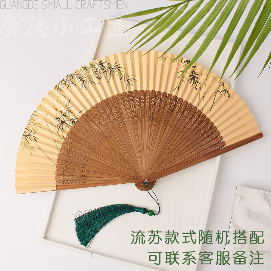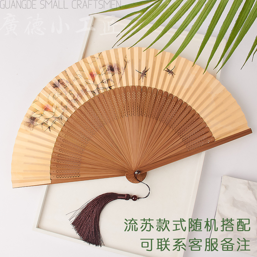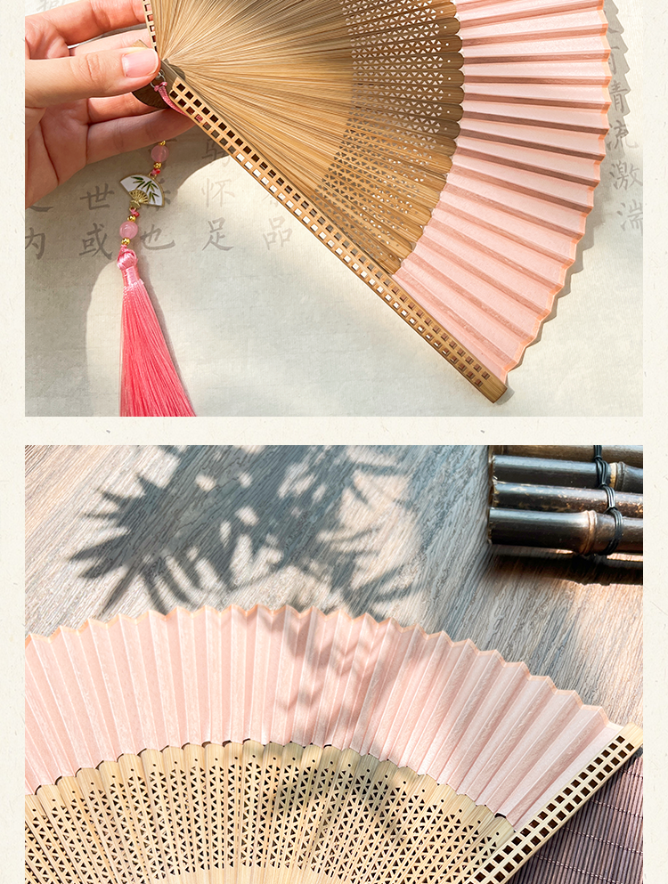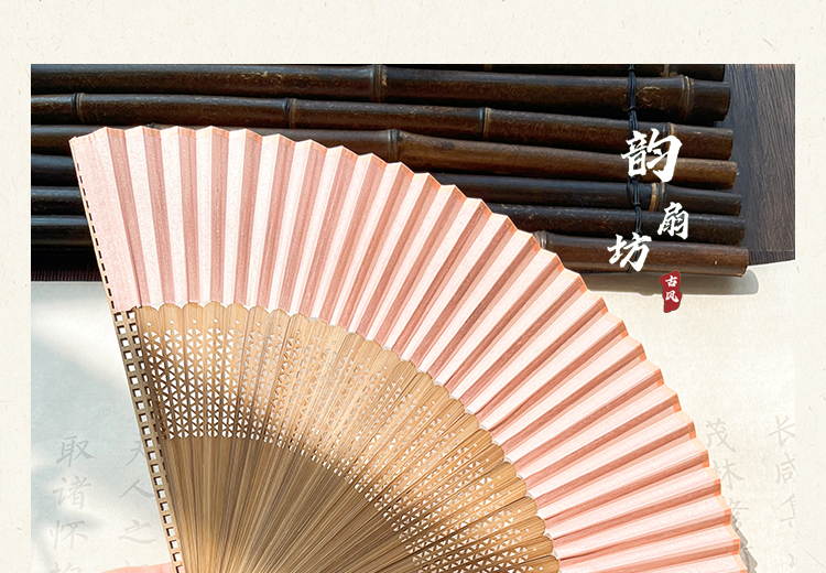 新中式古风折扇粉色扇子中国风汉服旗袍晨袍扇拍照道具夏竹扇便携