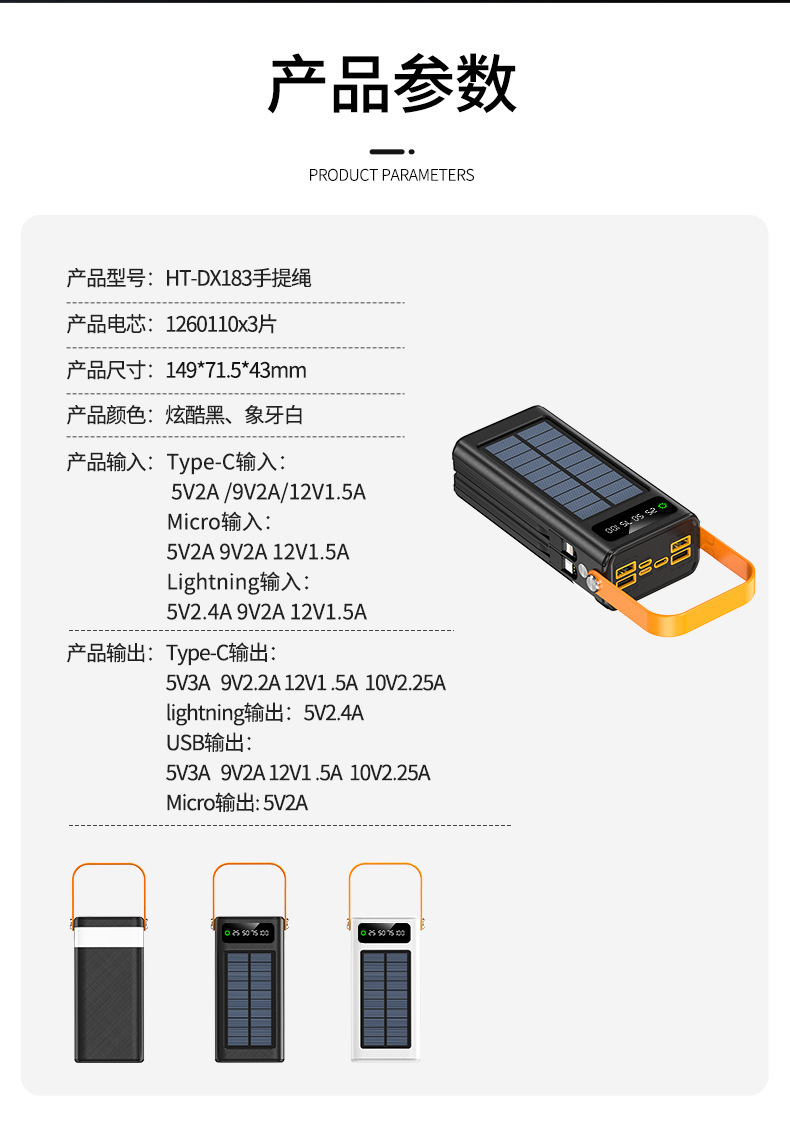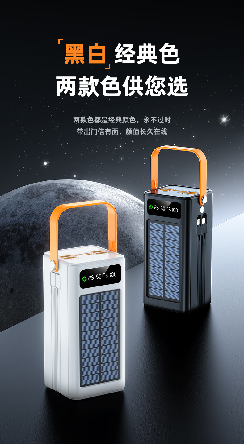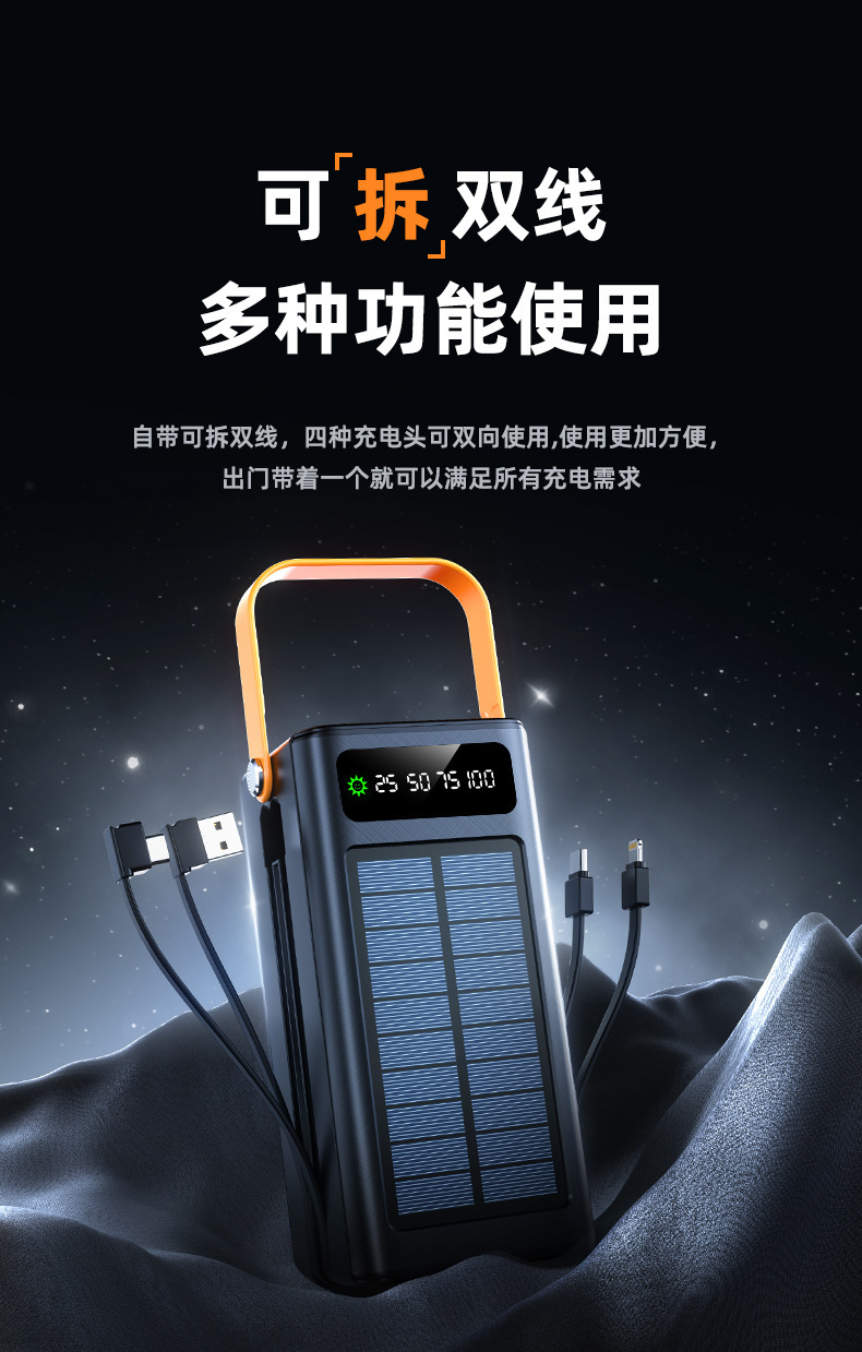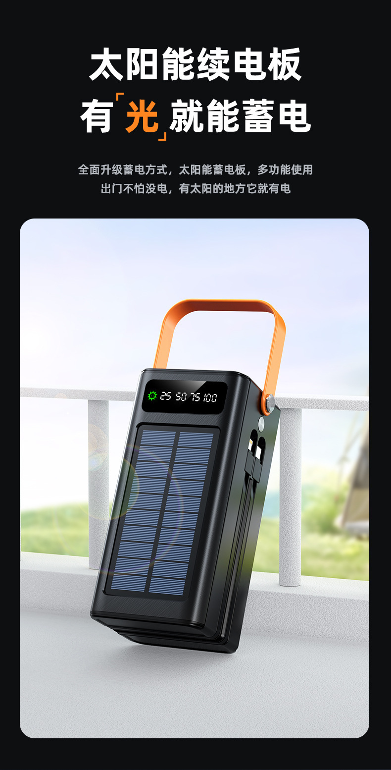 跨境大容量超大太阳能快充充电宝PD22.5W超级快充移动电源带线户