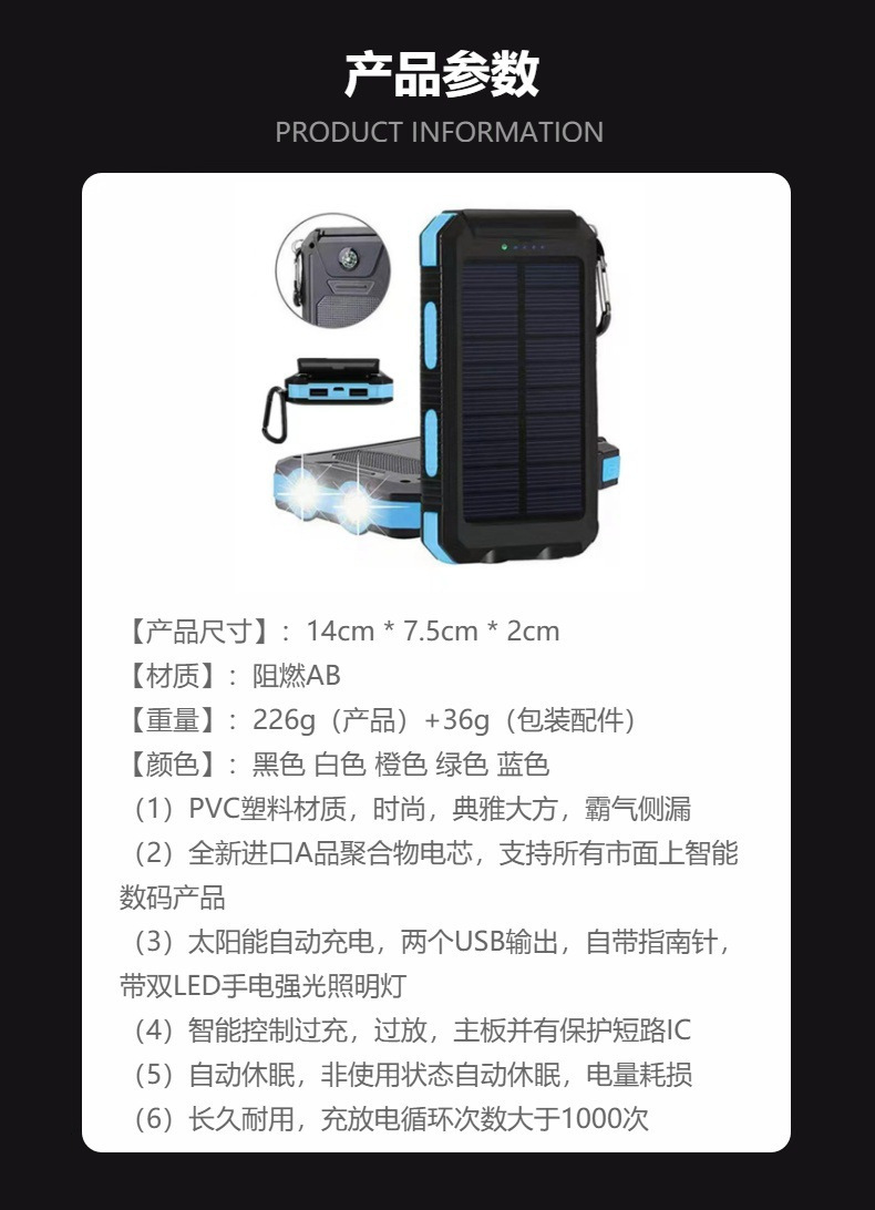1688跨境户外防水太阳能充电宝20000mah大容量跨境指南针移动电源