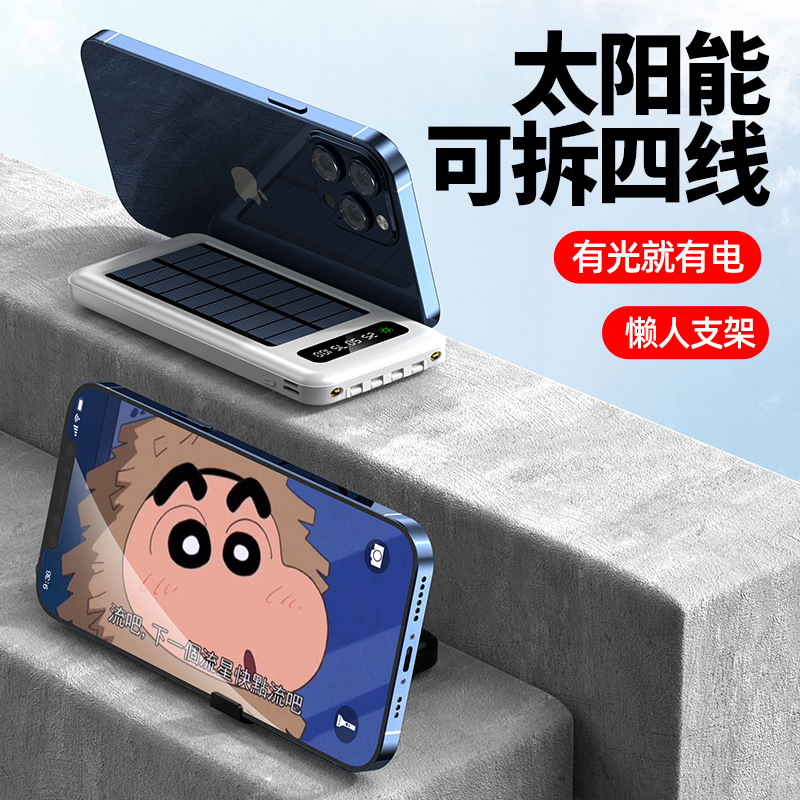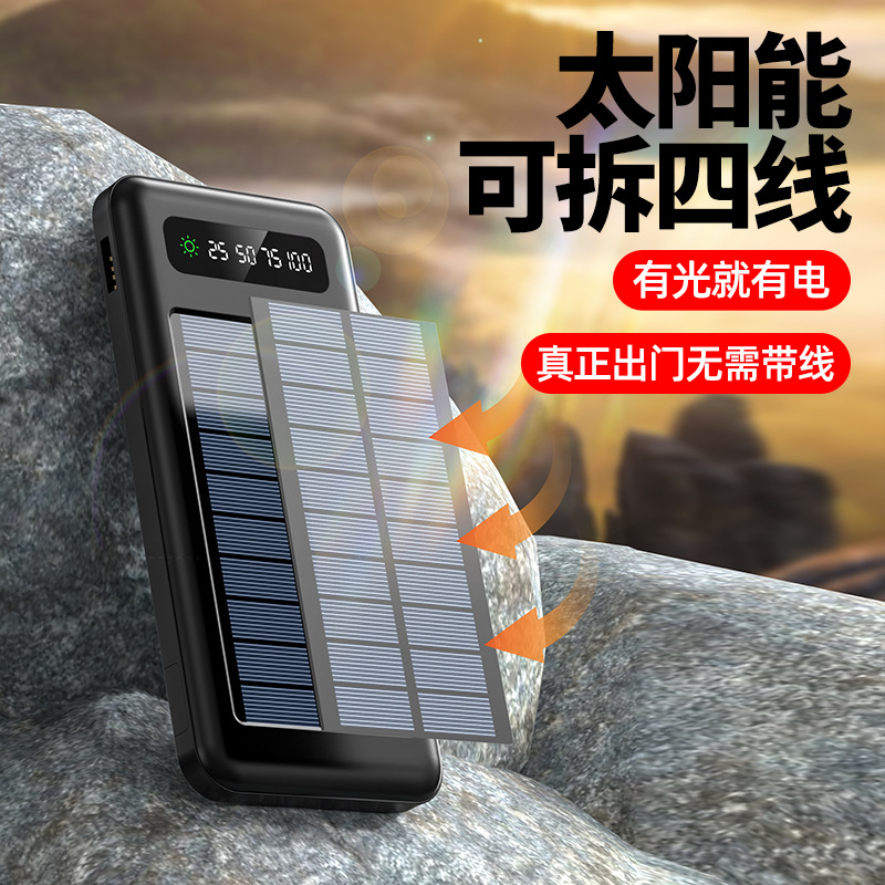 爆款批发太阳能自带线大容量太阳能充电宝20000毫安数显移动电源