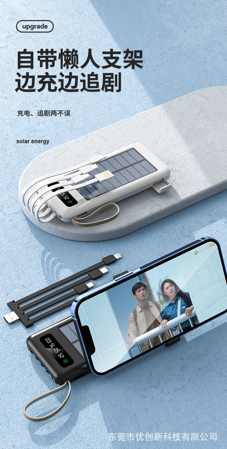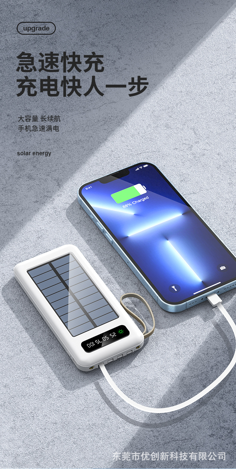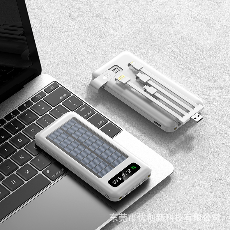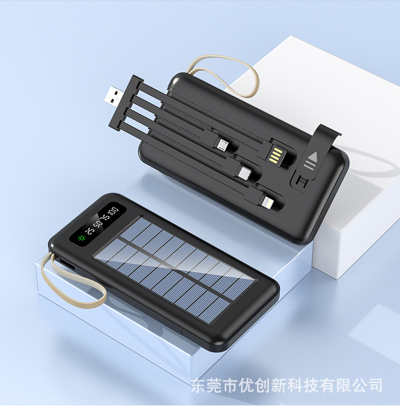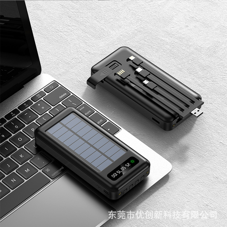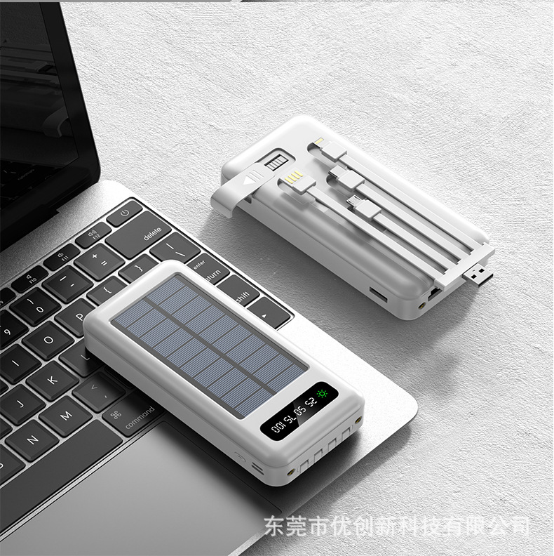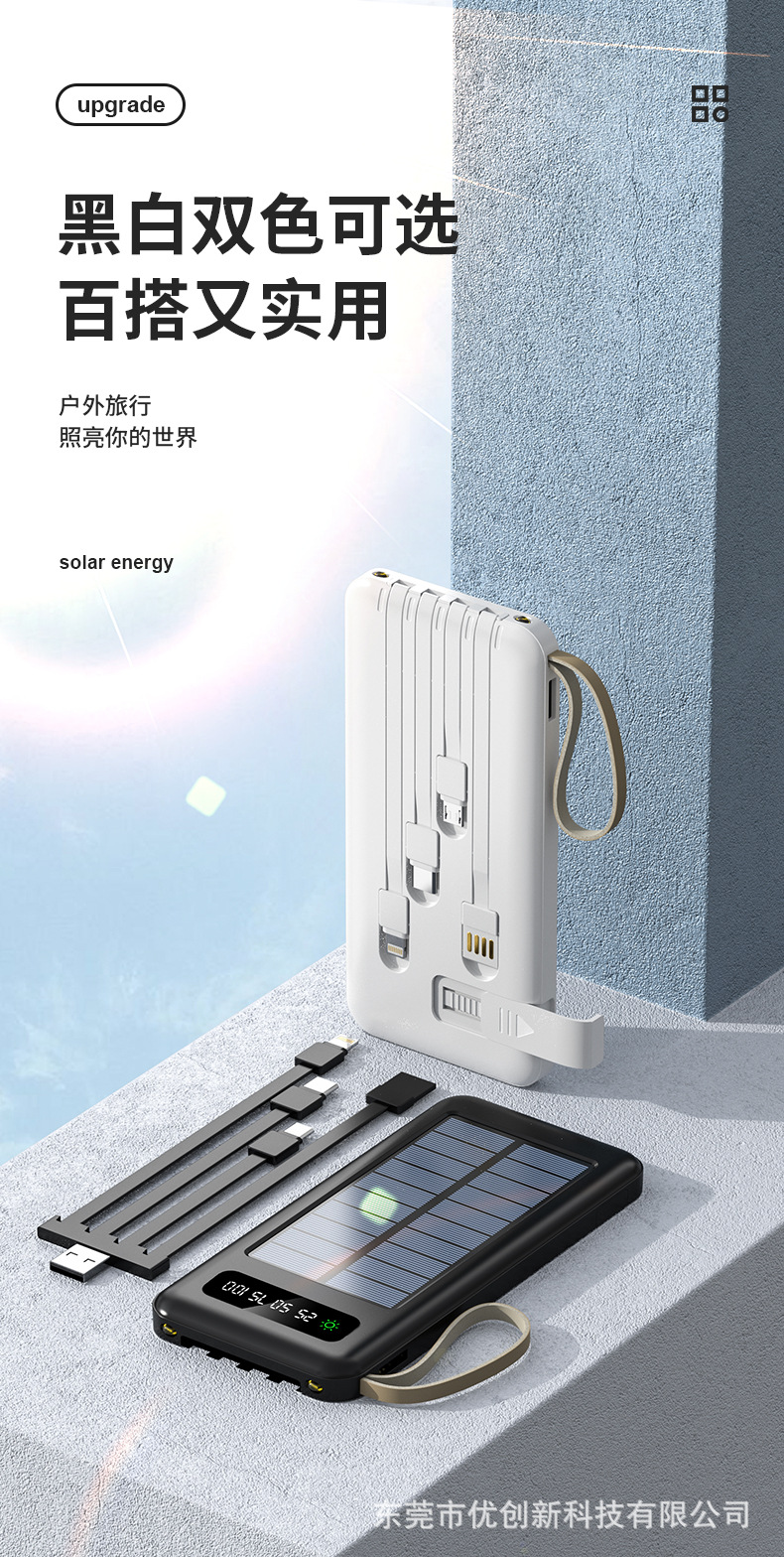 跨境充电宝20000毫安超薄可拆卸自带四线太阳能移动电源礼品印制