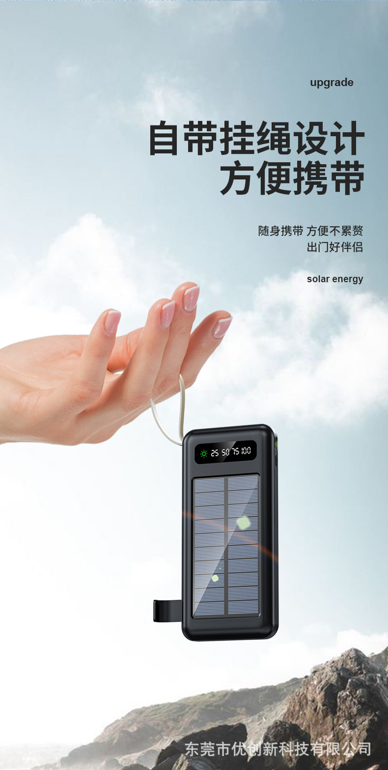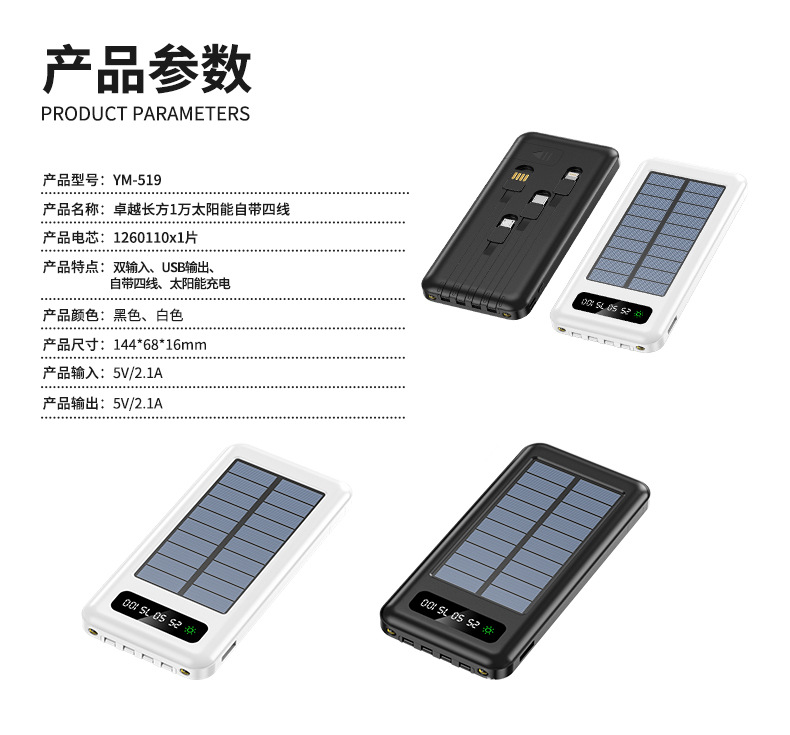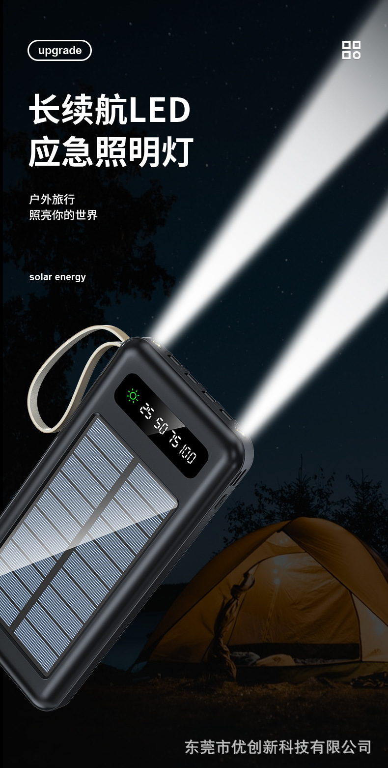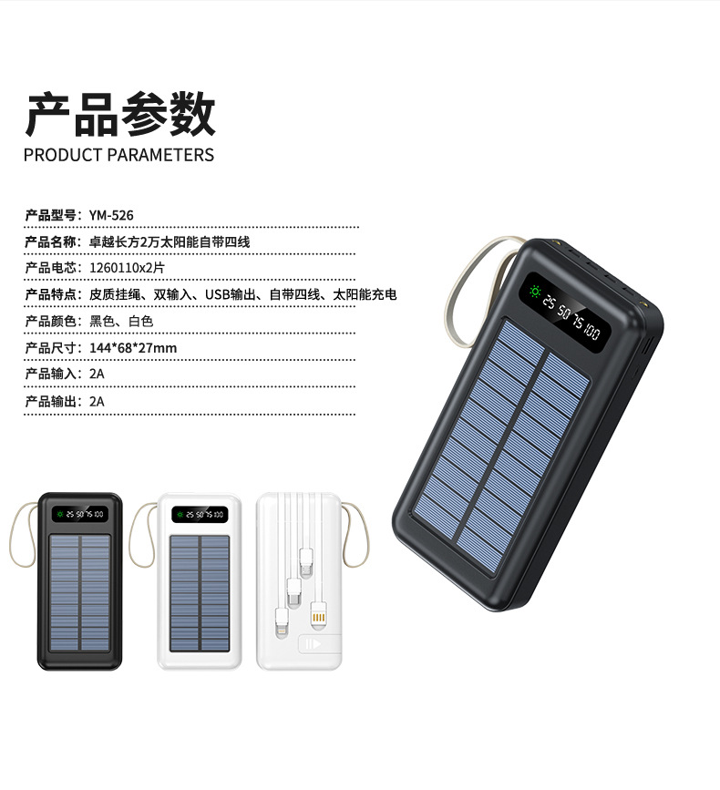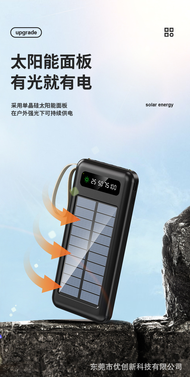 跨境充电宝20000毫安超薄可拆卸自带四线太阳能移动电源礼品印制