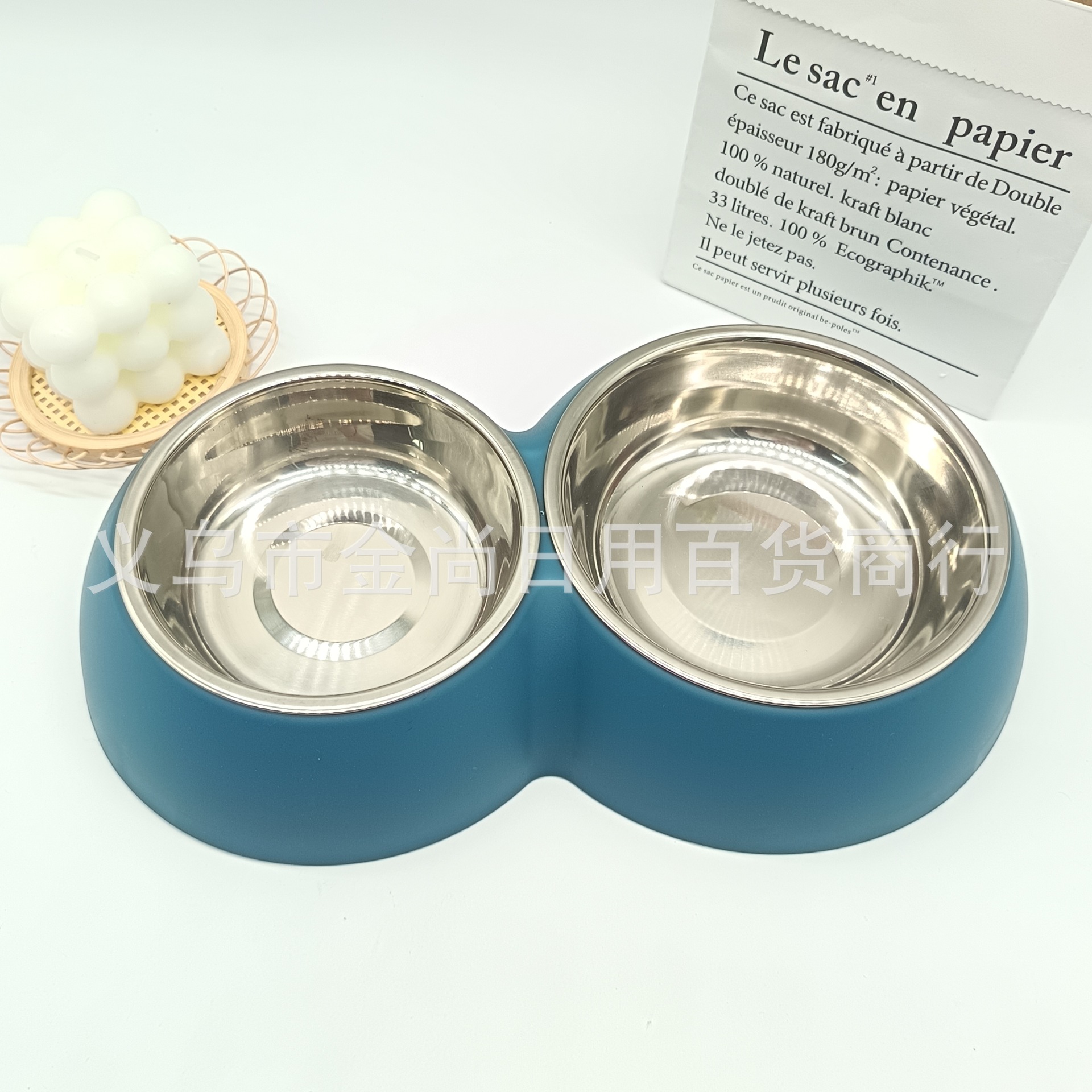 外贸跨境糖果色宠物不锈钢双碗狗碗猫碗喂食喂水碗宠物狗碗批发
