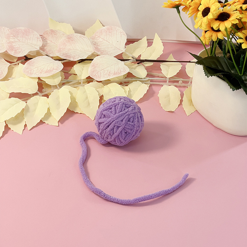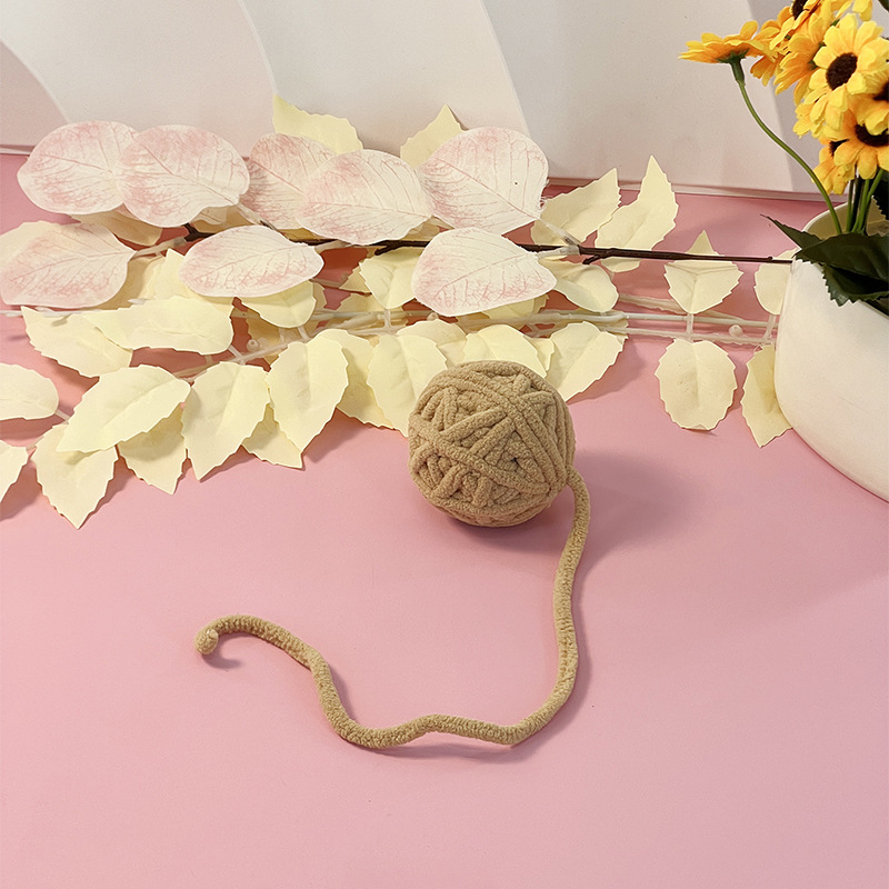 跨境亚马逊宠物用品猫咪自嗨解闷啃咬逗猫玩具球铃铛纯色毛线球