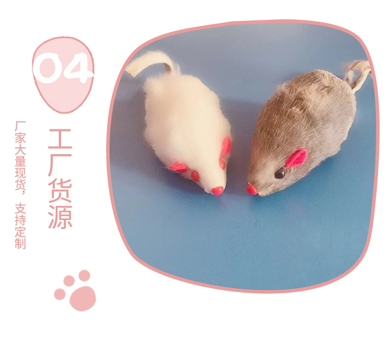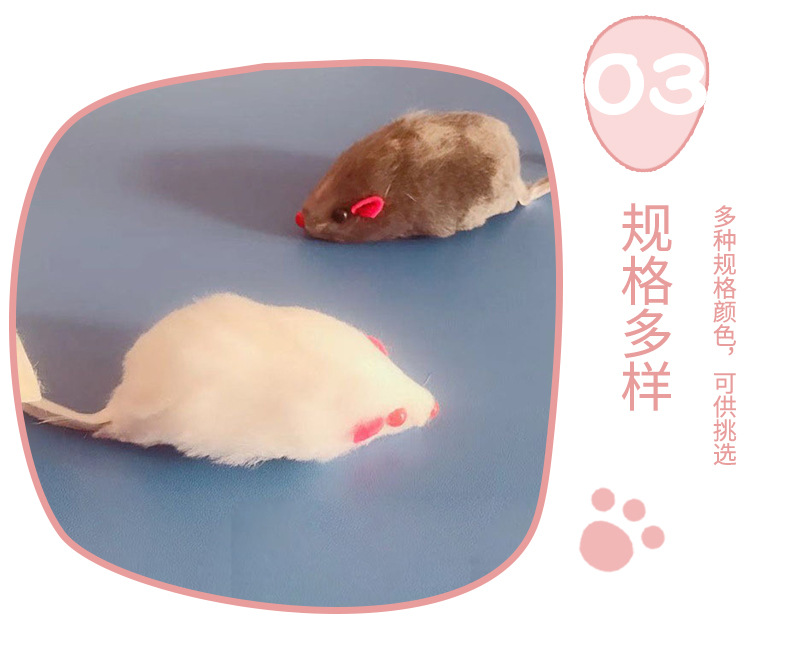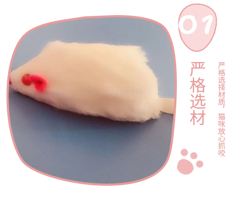 猫咪宠物用品仿真皮毛老鼠 白色皮毛小老鼠猫咪解闷玩耍猫玩具