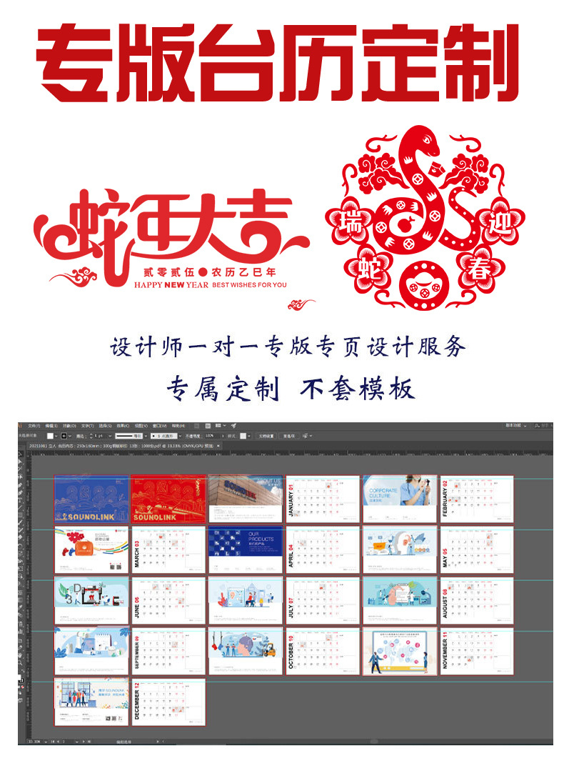 台历2025新款蛇年企业商务日历周历可印logo专版台历礼盒印刷定制