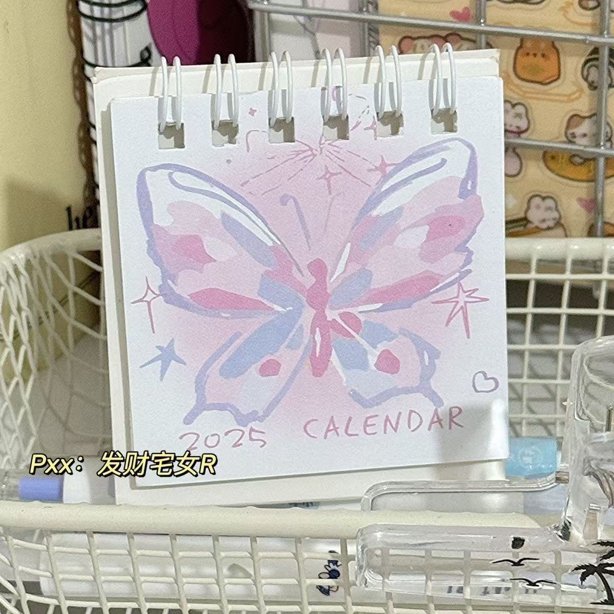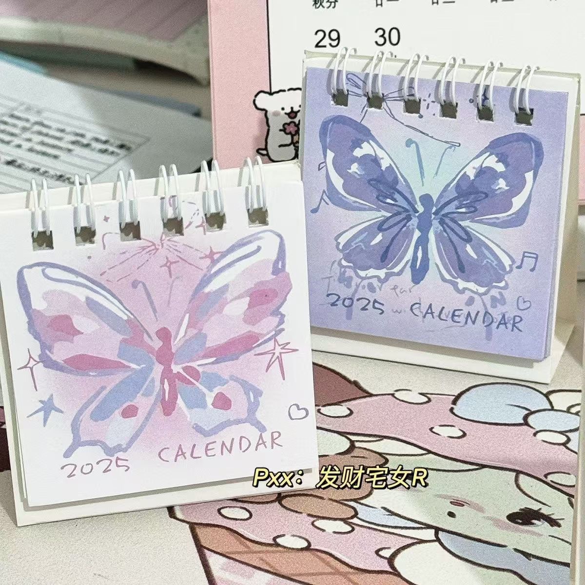 彩色蝴蝶迷你小台历2025年高颜值ins风多巴胺桌面日历摆件装饰