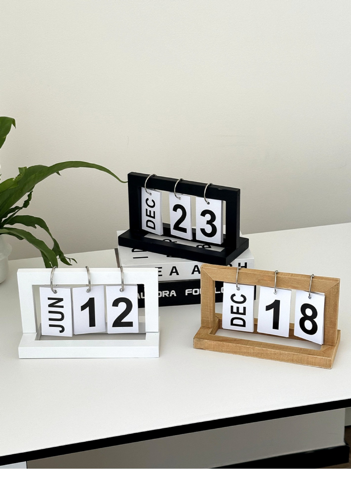 北欧简约木质日历创意新款台历ins创意办公书房桌面装饰品小摆件
