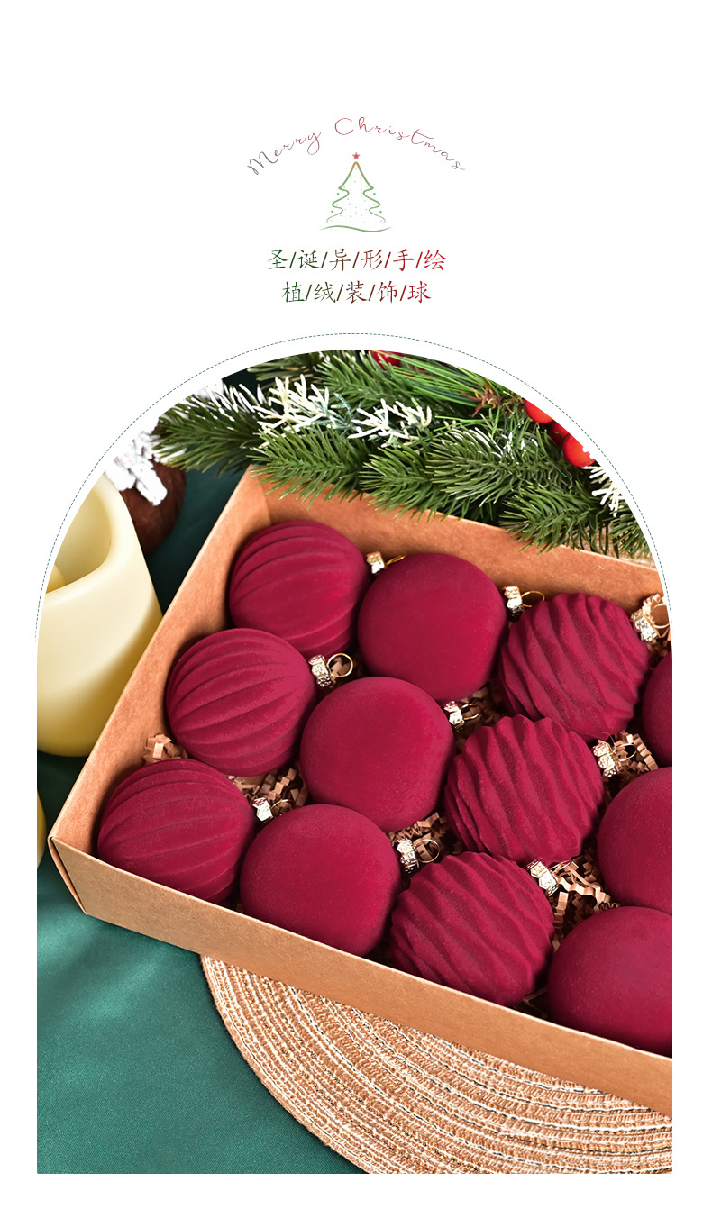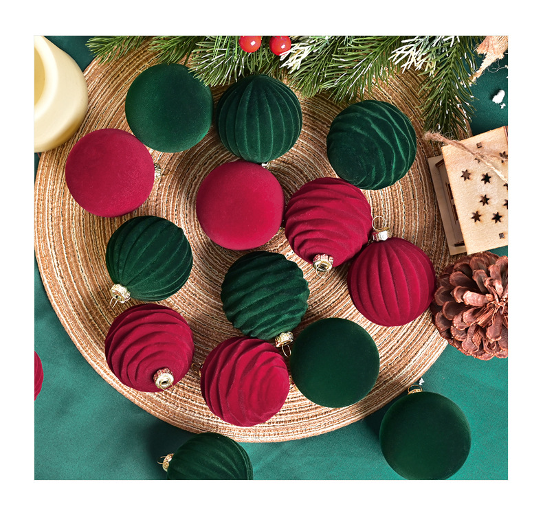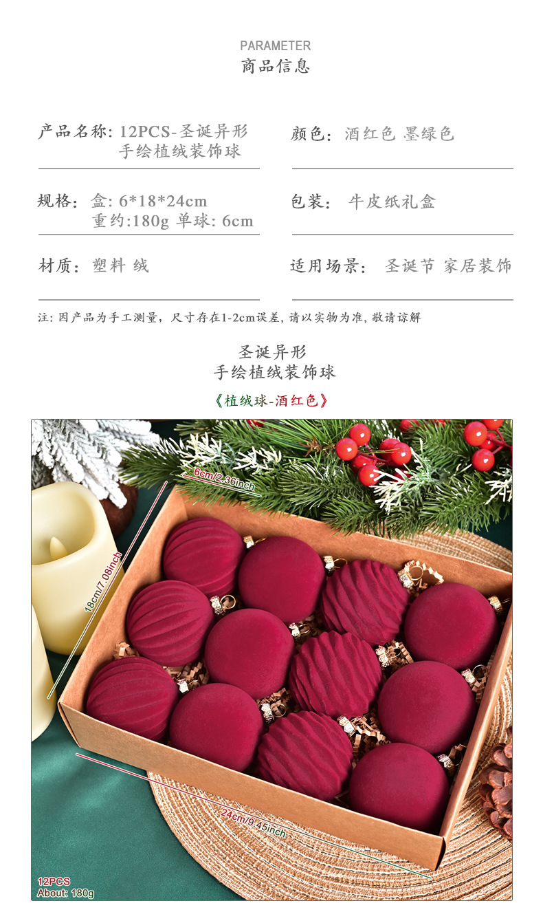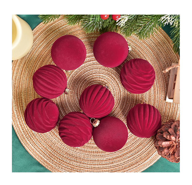 跨境新款6cm酒红色丝绒圣诞球圣诞树挂件红丝绒球圣诞装饰品