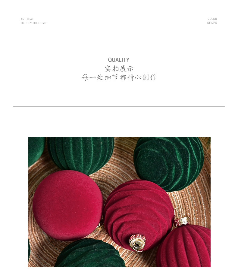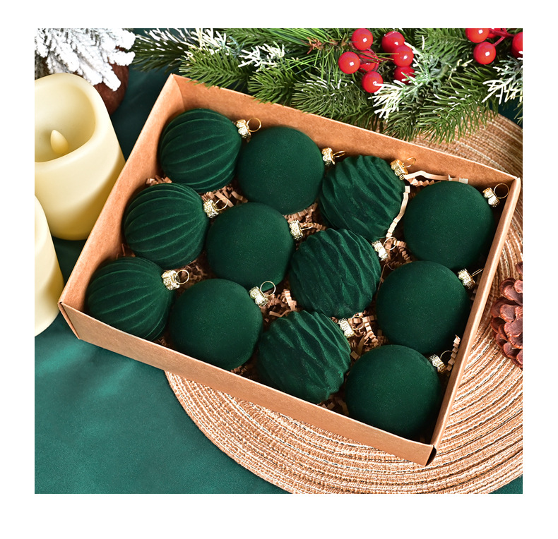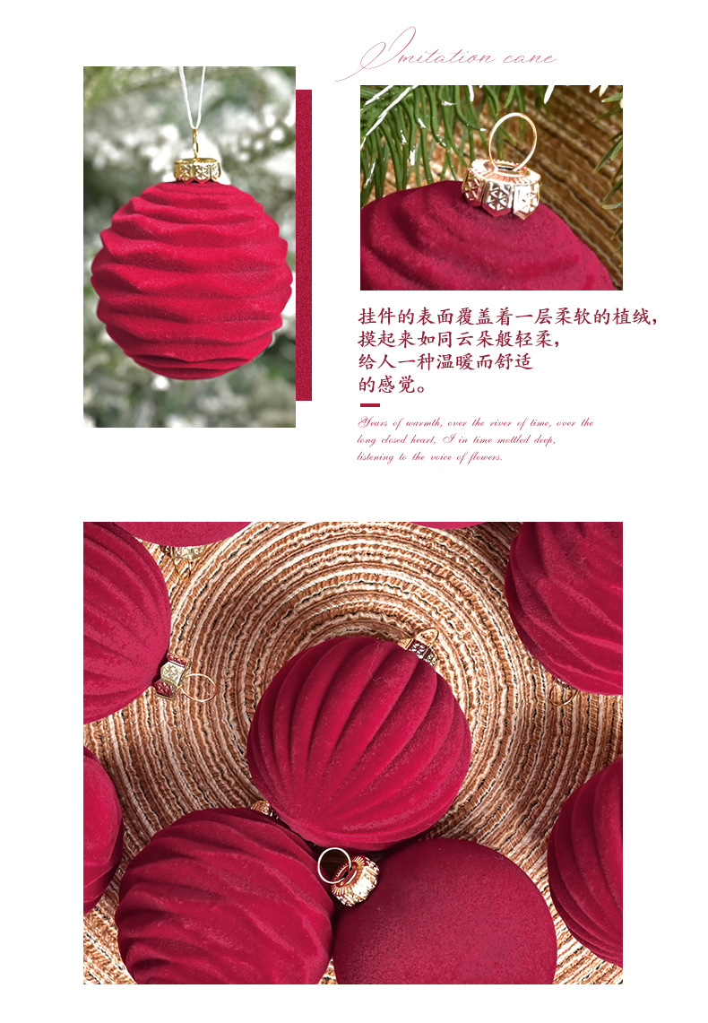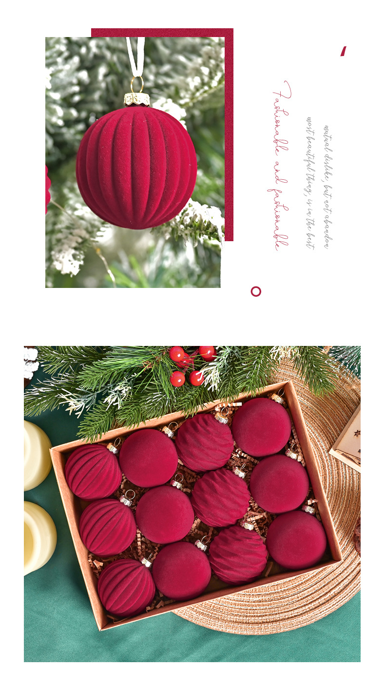 跨境新款6cm酒红色丝绒圣诞球圣诞树挂件红丝绒球圣诞装饰品