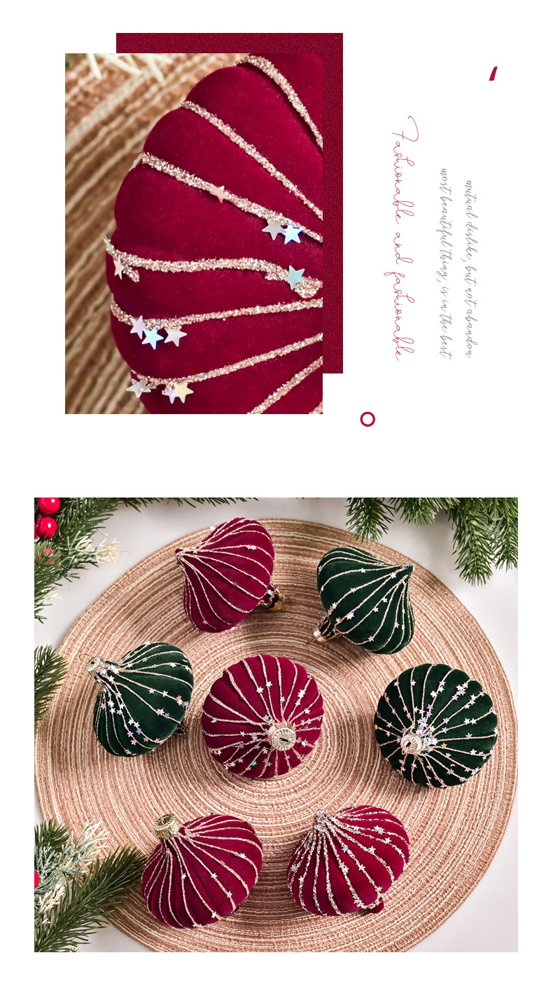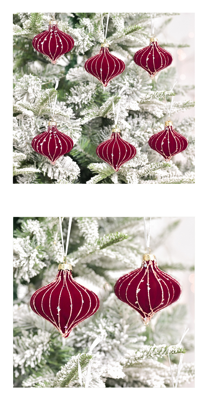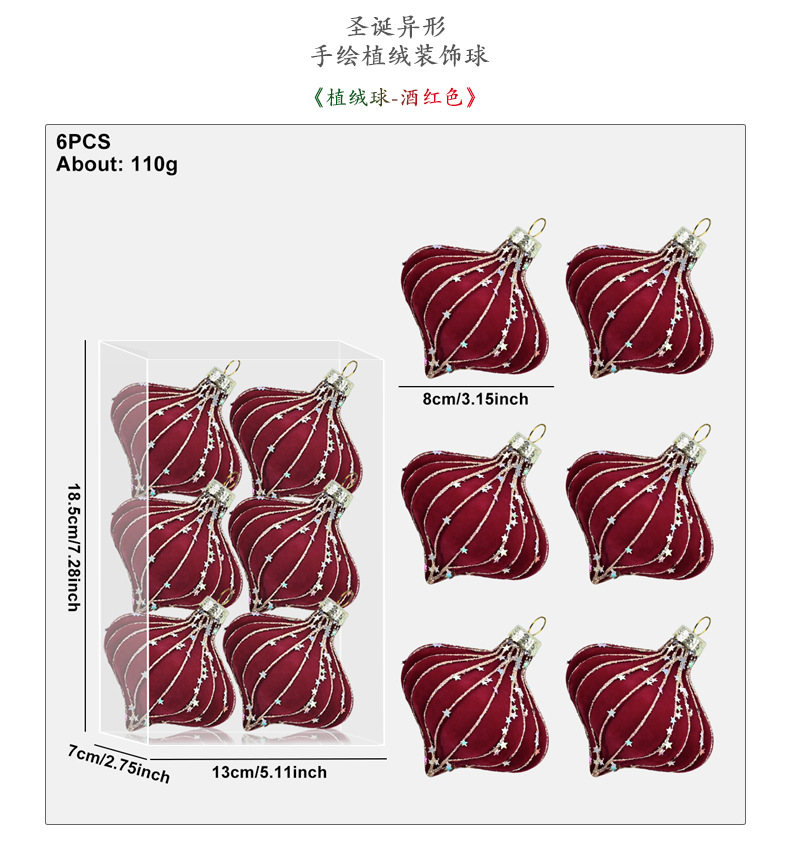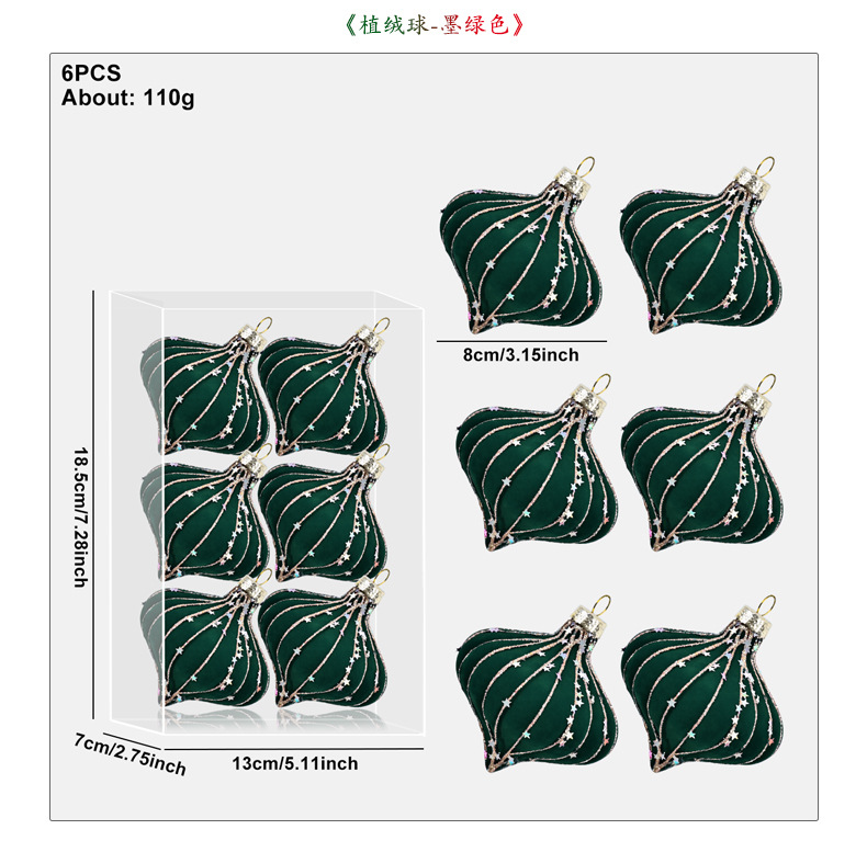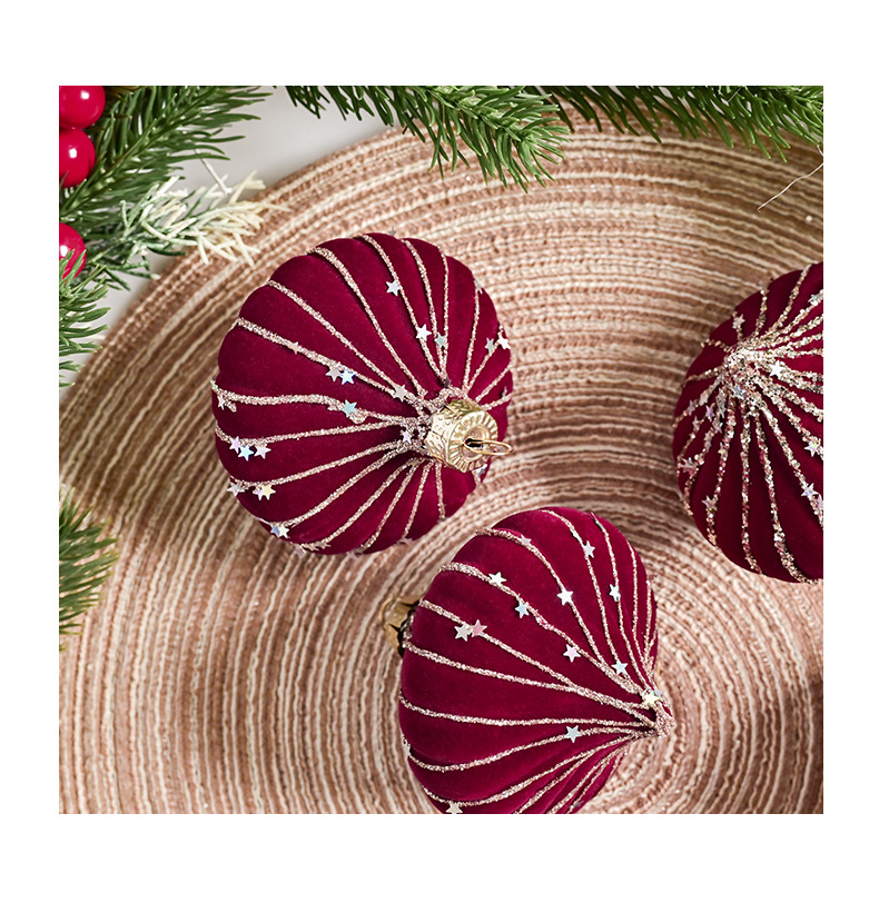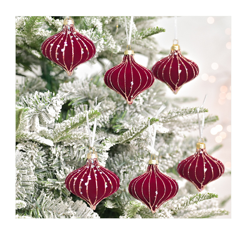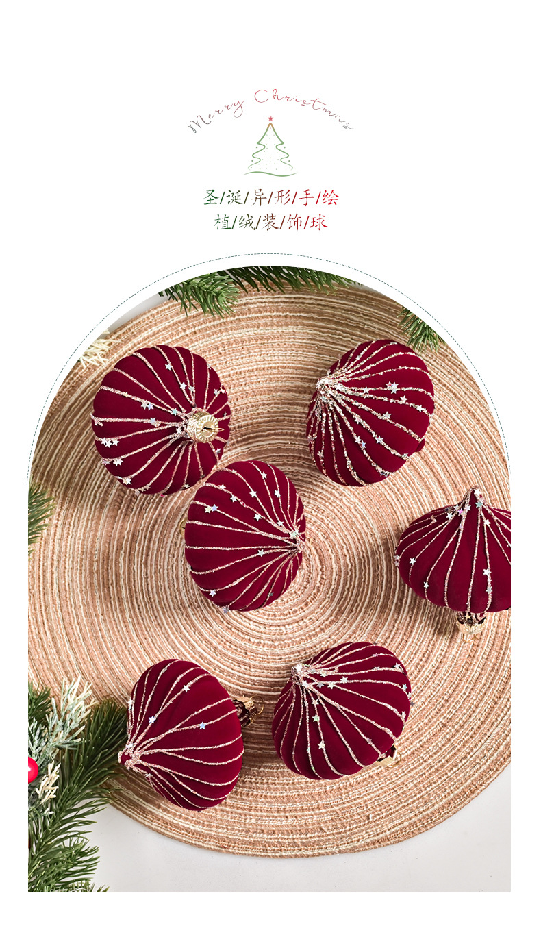 跨境热销新款高级质感8cm植绒扁桃彩绘亮片圣诞树圣诞球精致挂件