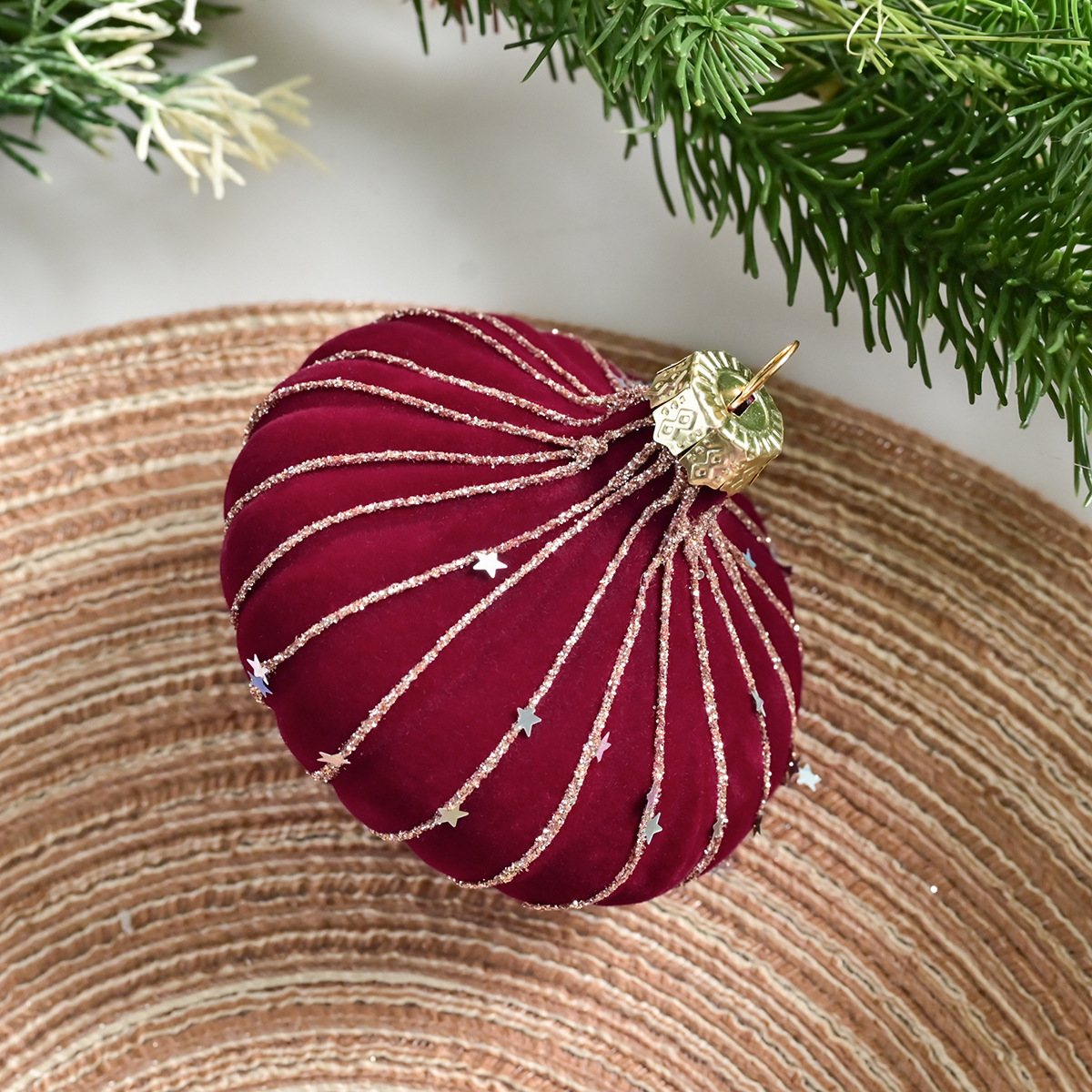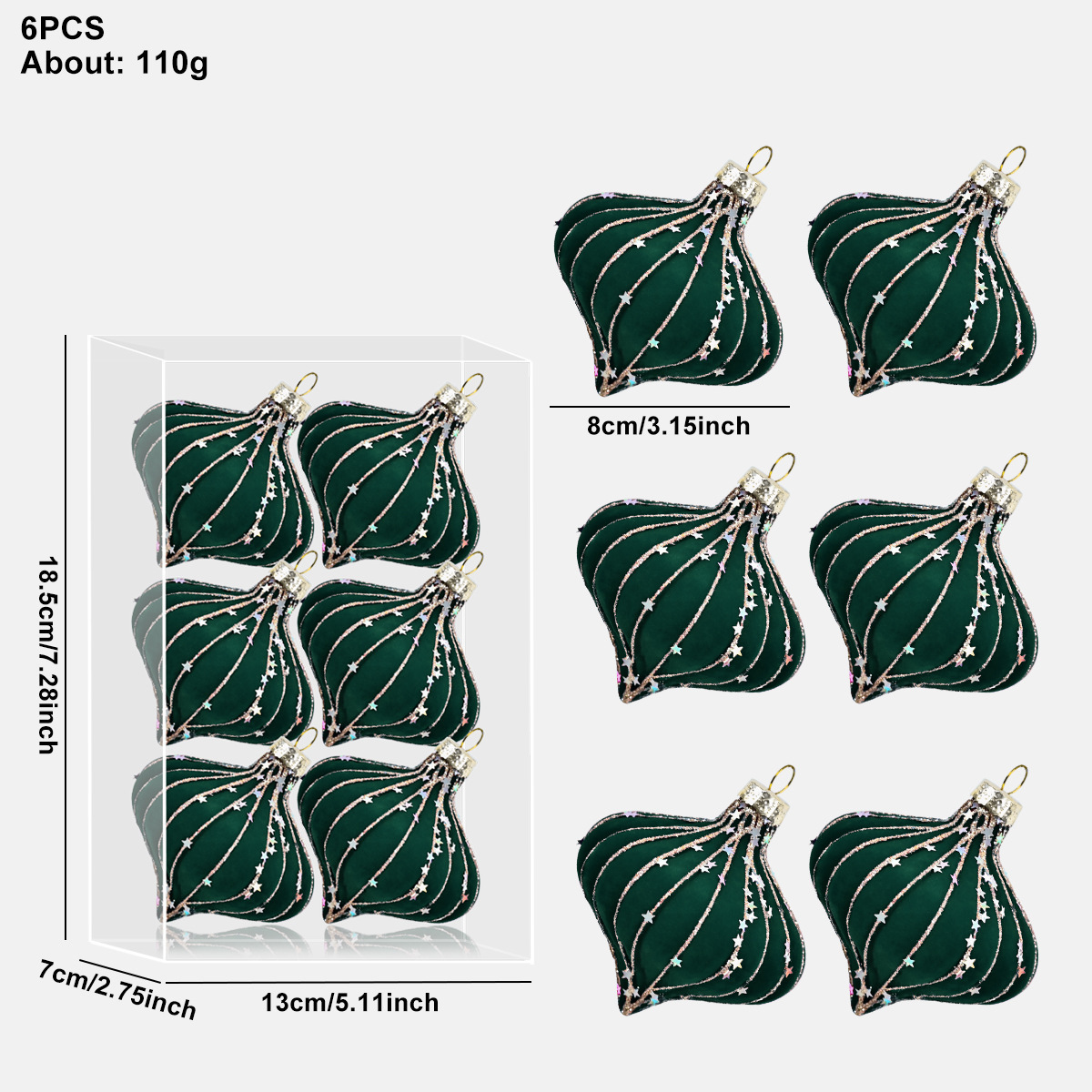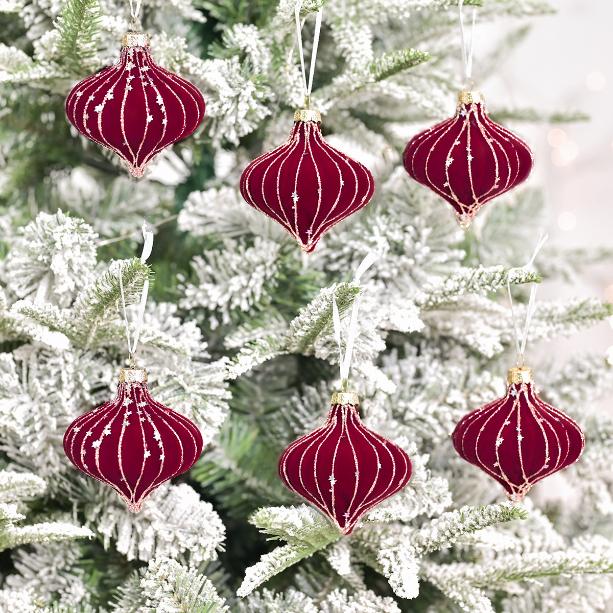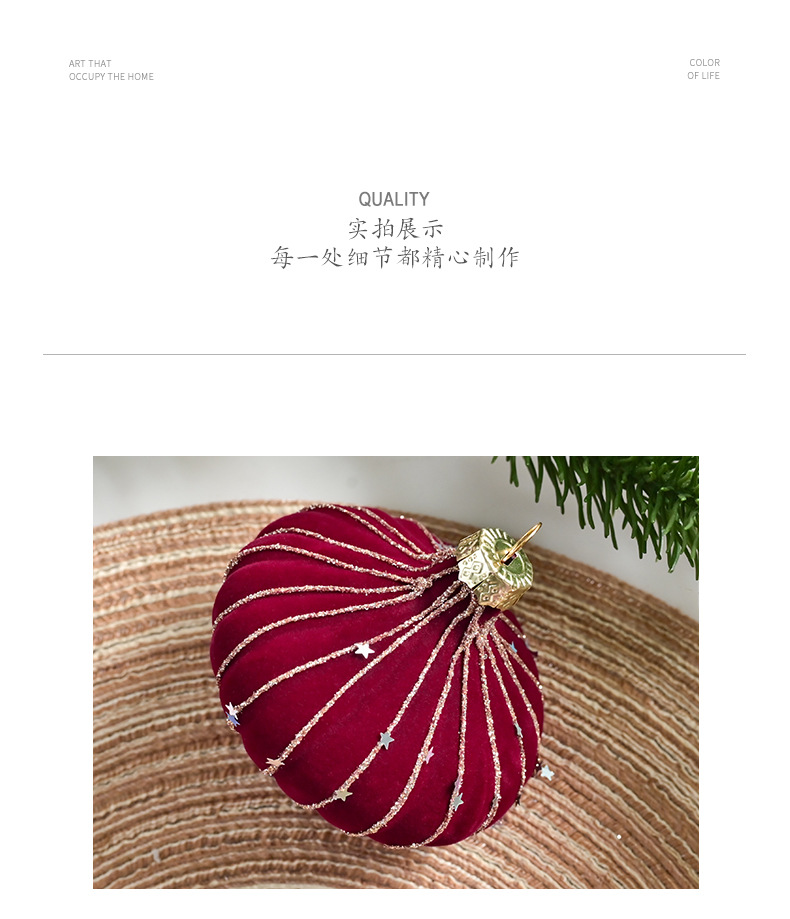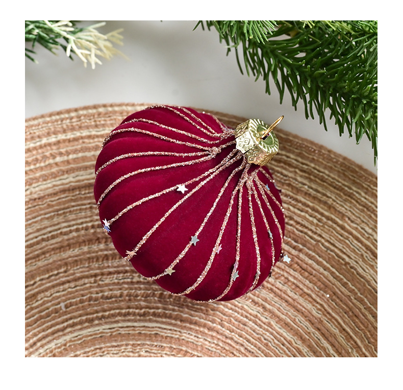 跨境热销新款高级质感8cm植绒扁桃彩绘亮片圣诞树圣诞球精致挂件