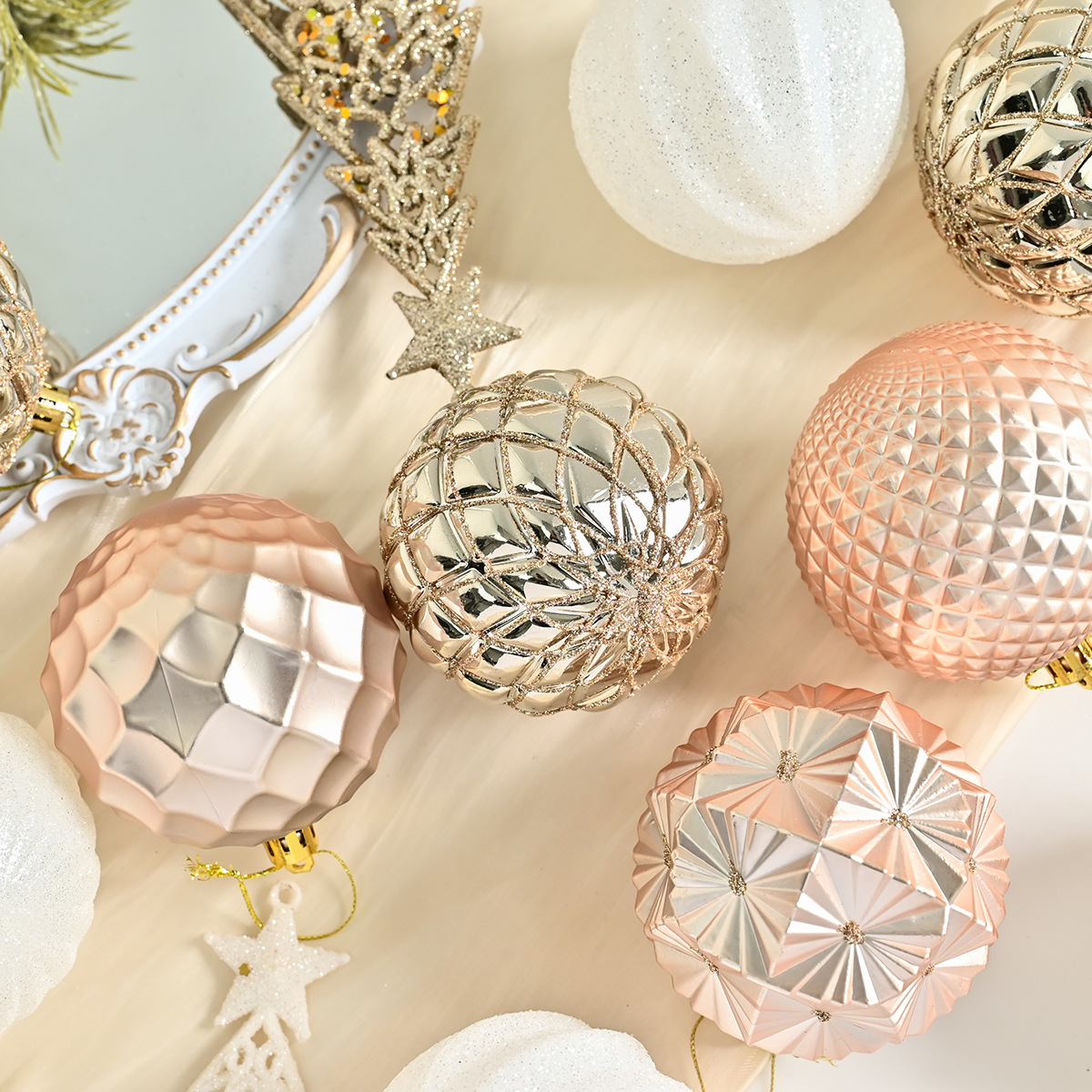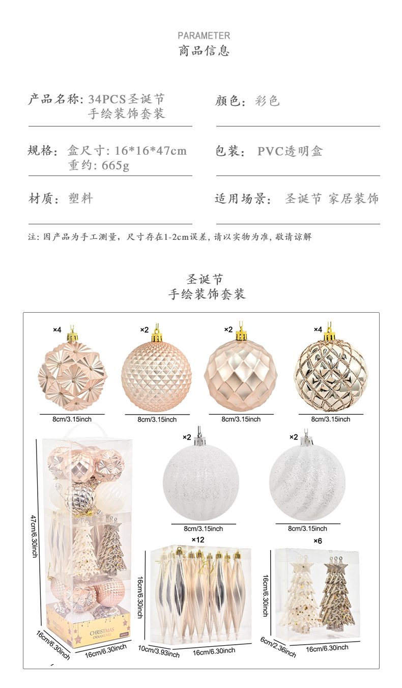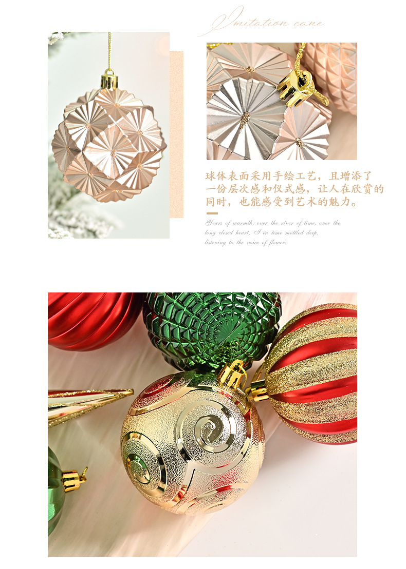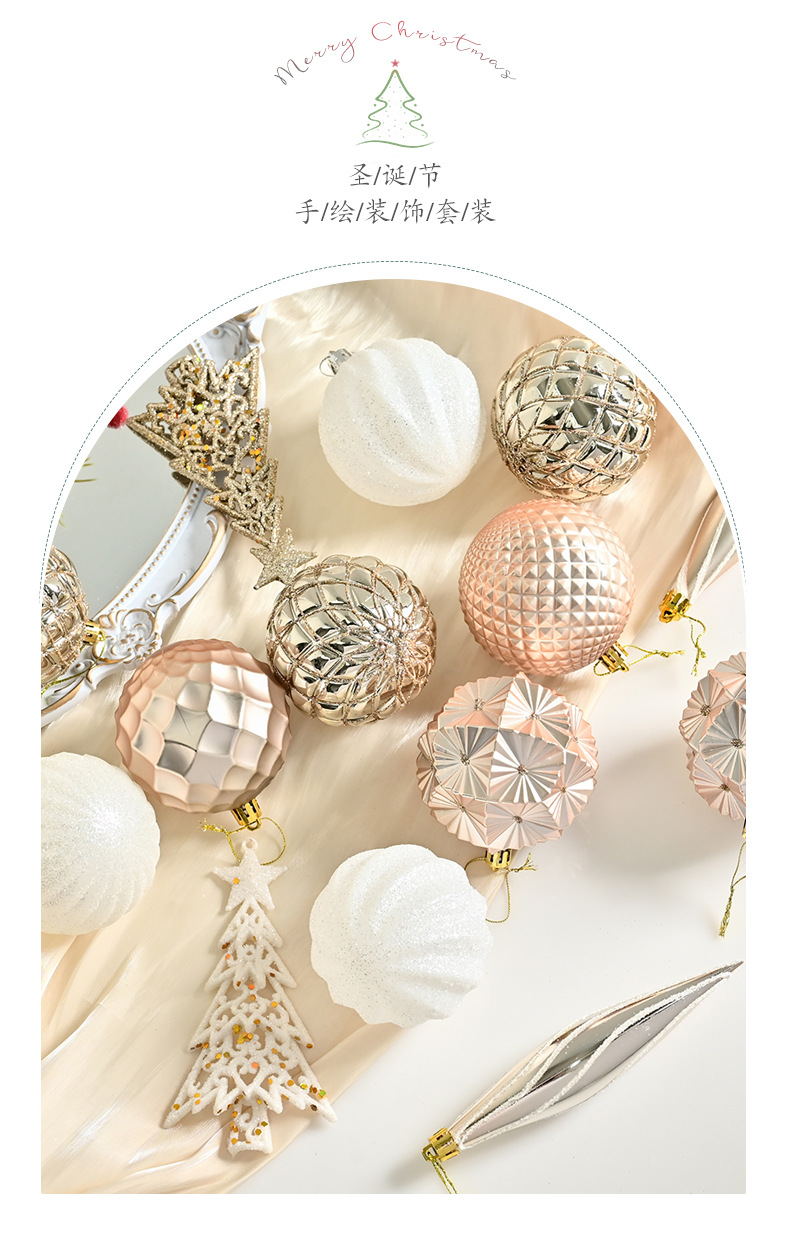 跨境新品圣诞球礼品套盒电镀彩绘圣诞树装饰品场地节庆布置挂件