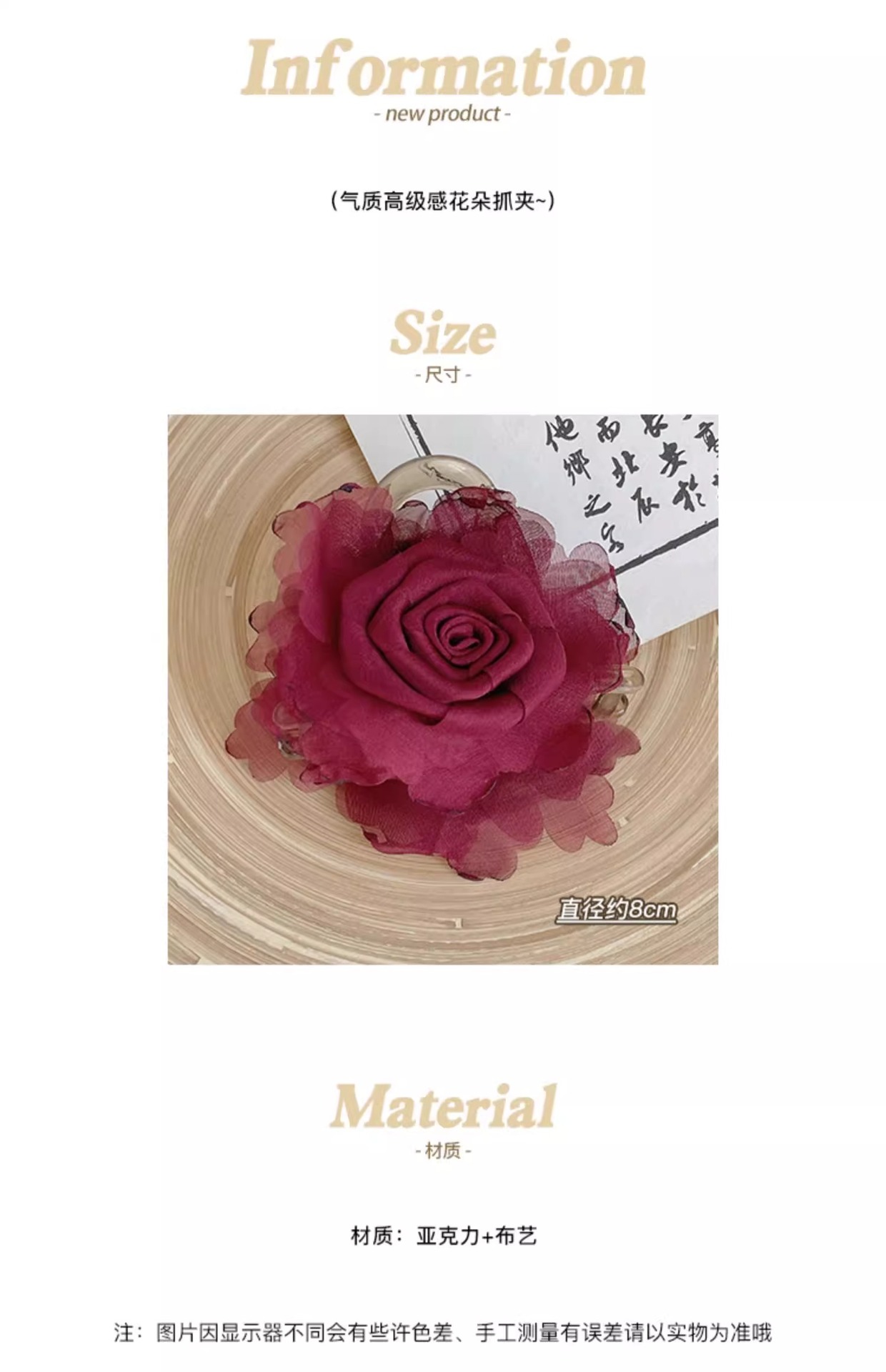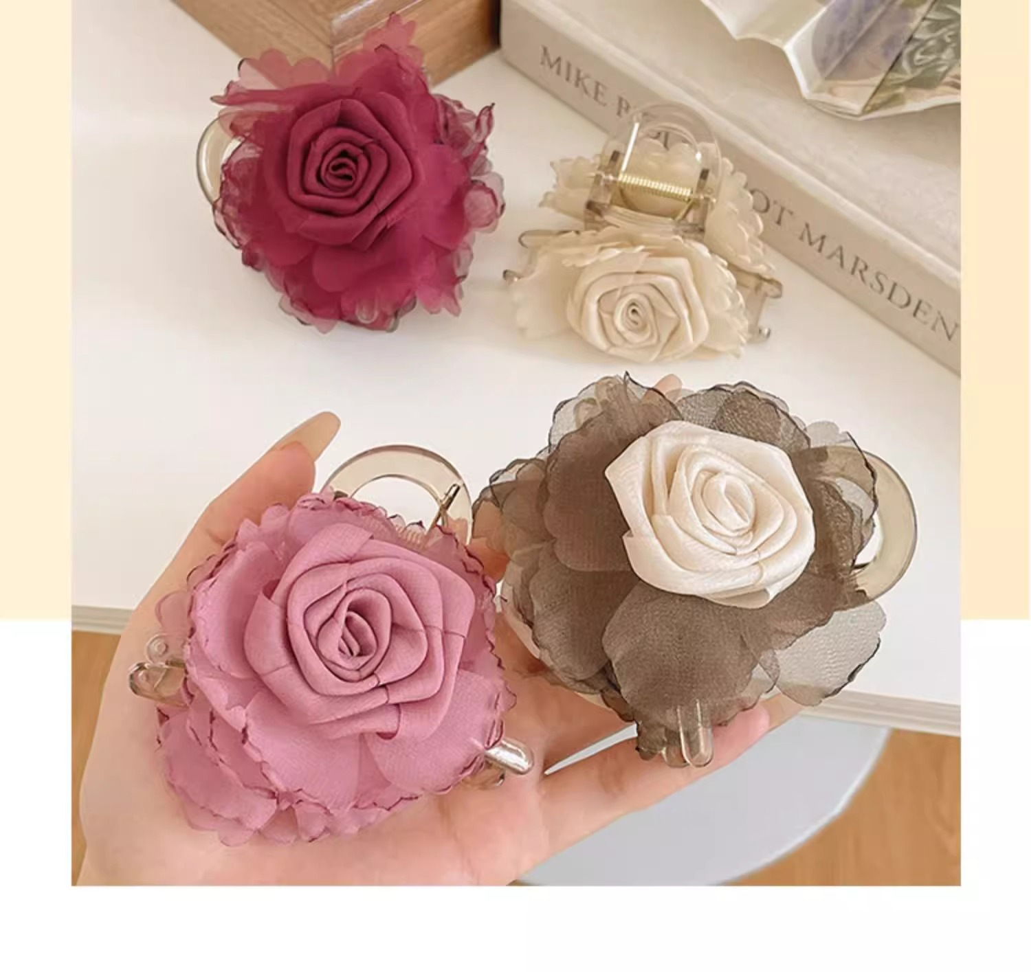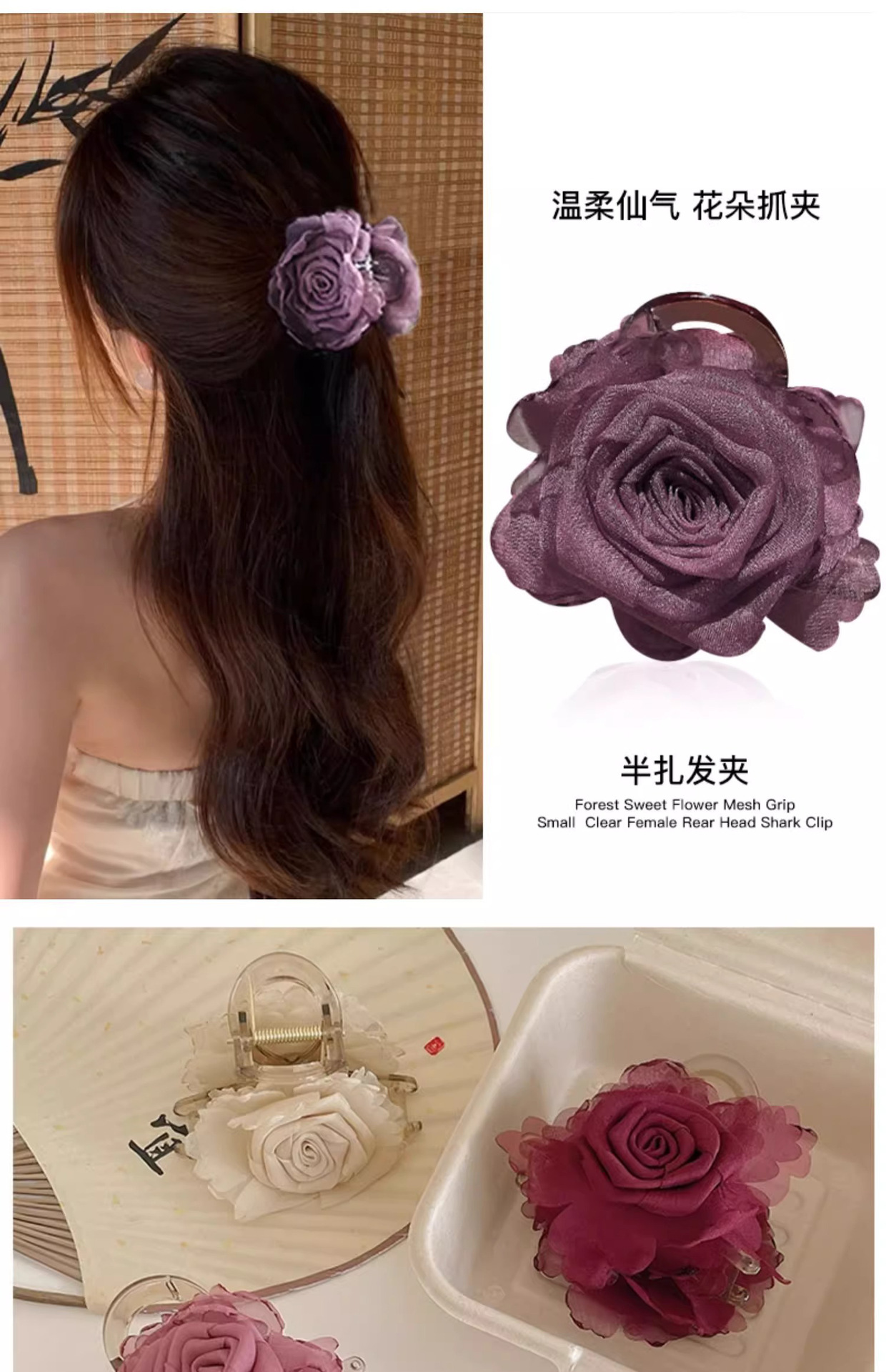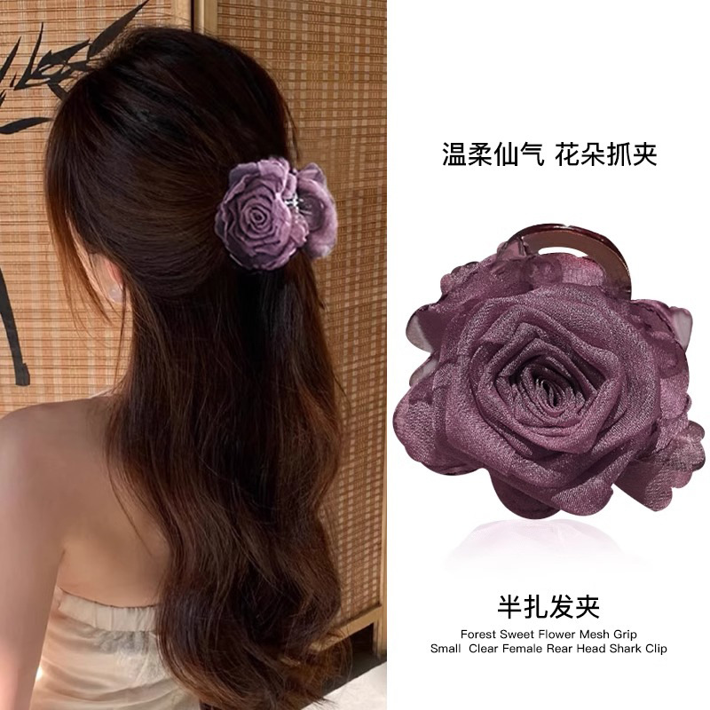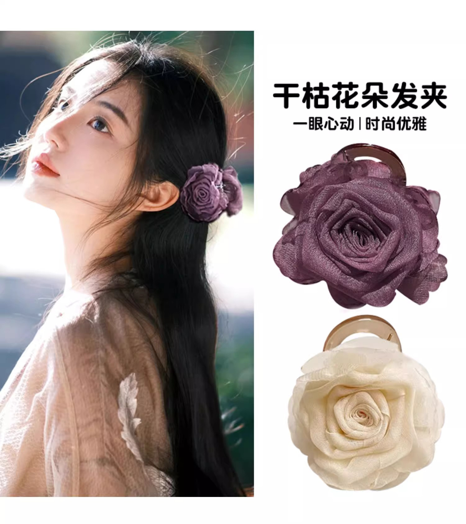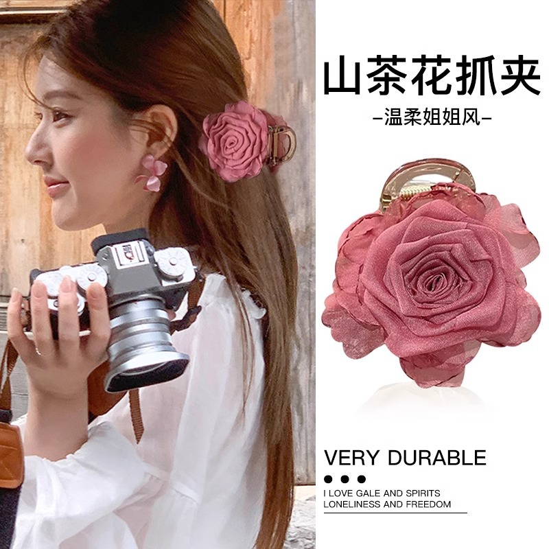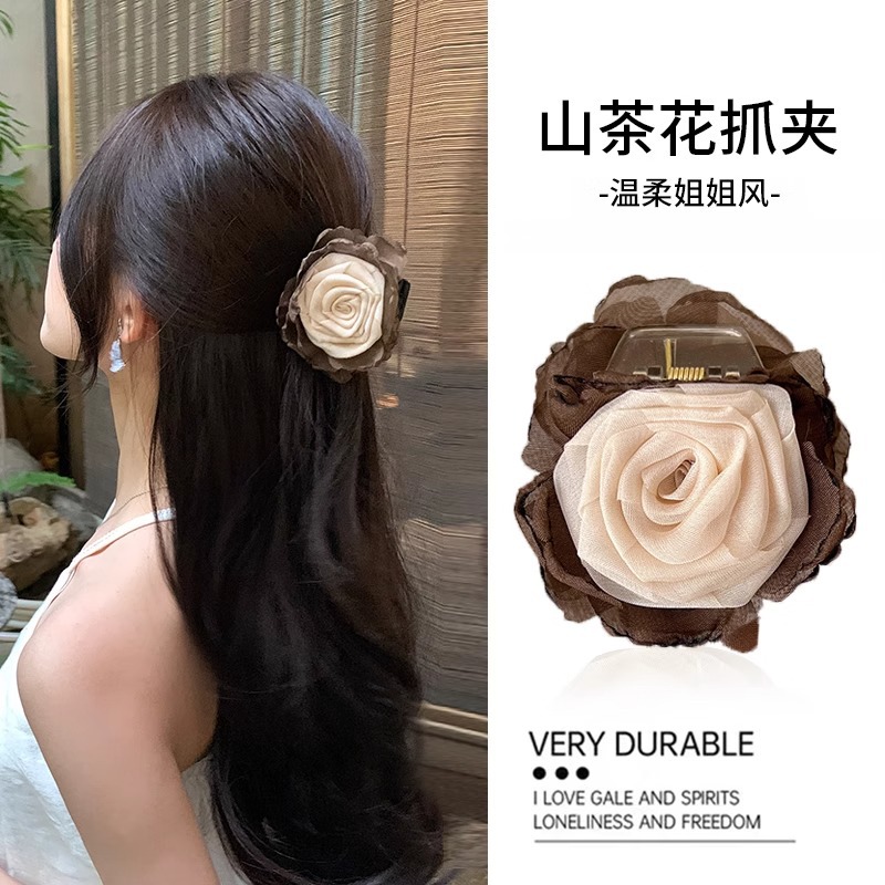 山茶花抓夹半扎发鲨鱼夹女后脑勺发量少发夹新中式高级感花朵发卡