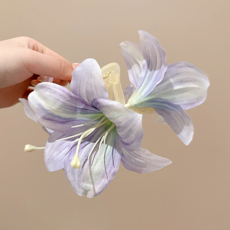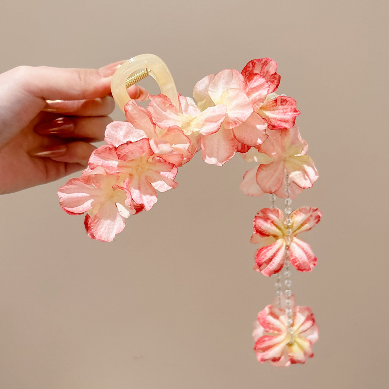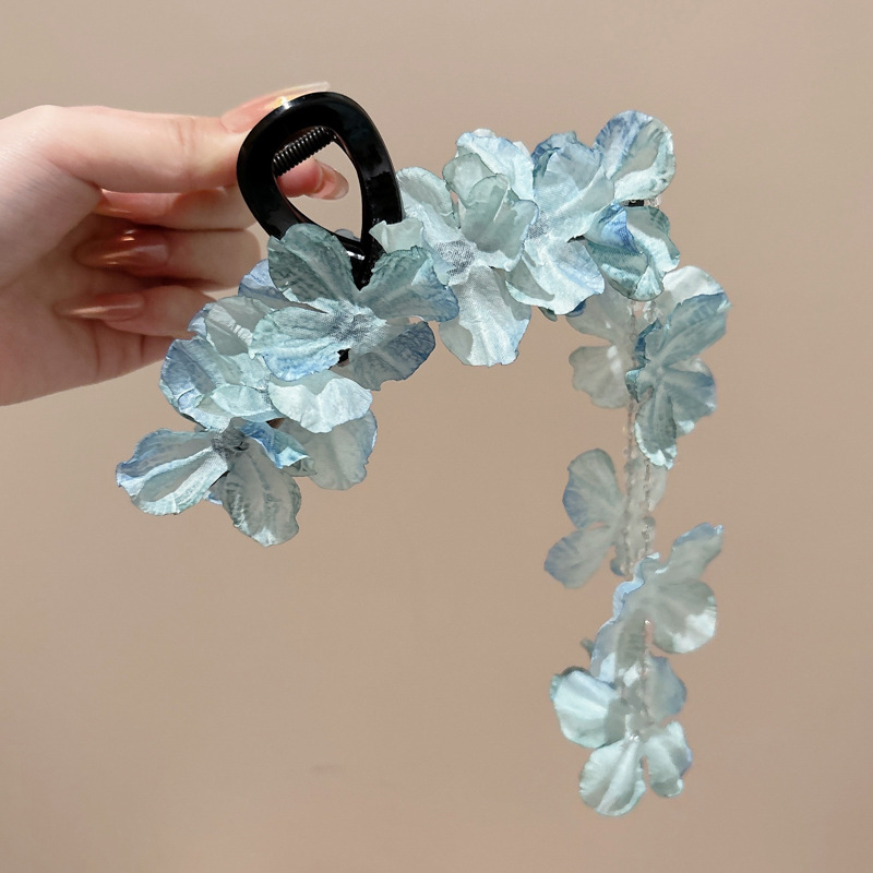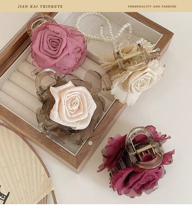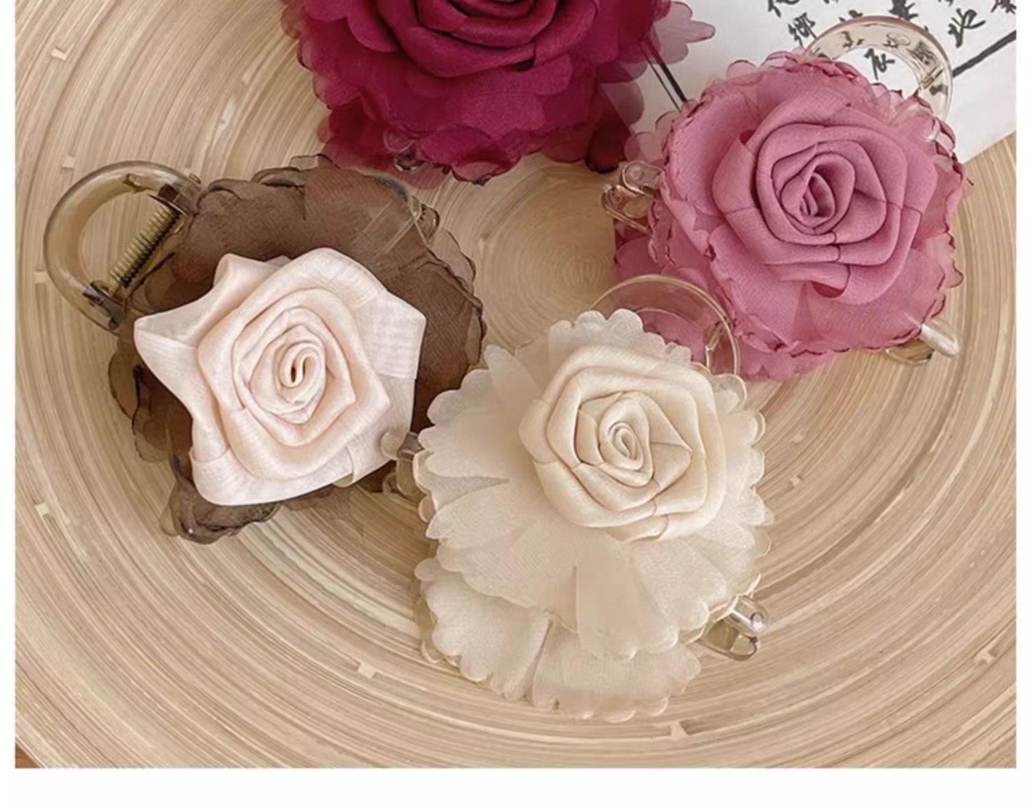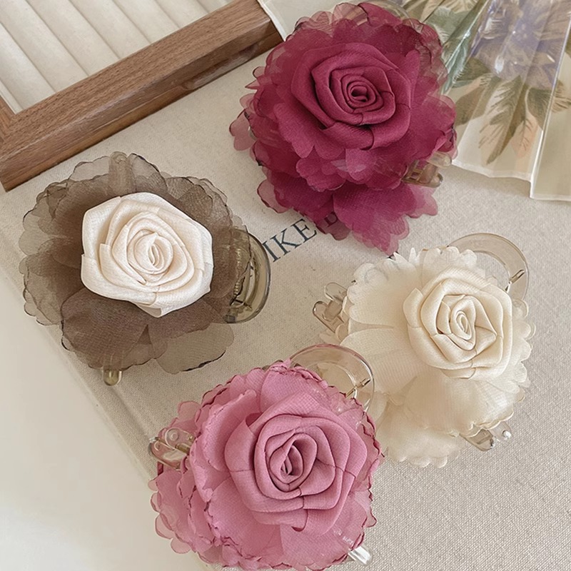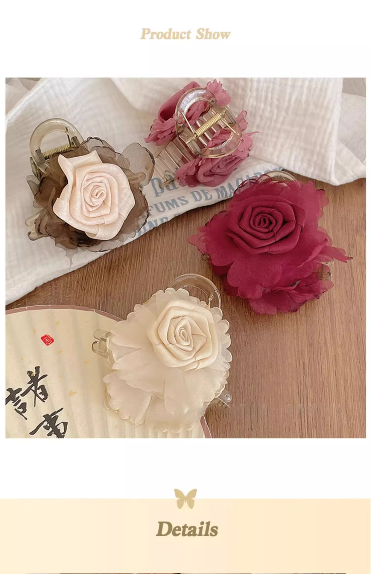 山茶花抓夹半扎发鲨鱼夹女后脑勺发量少发夹新中式高级感花朵发卡