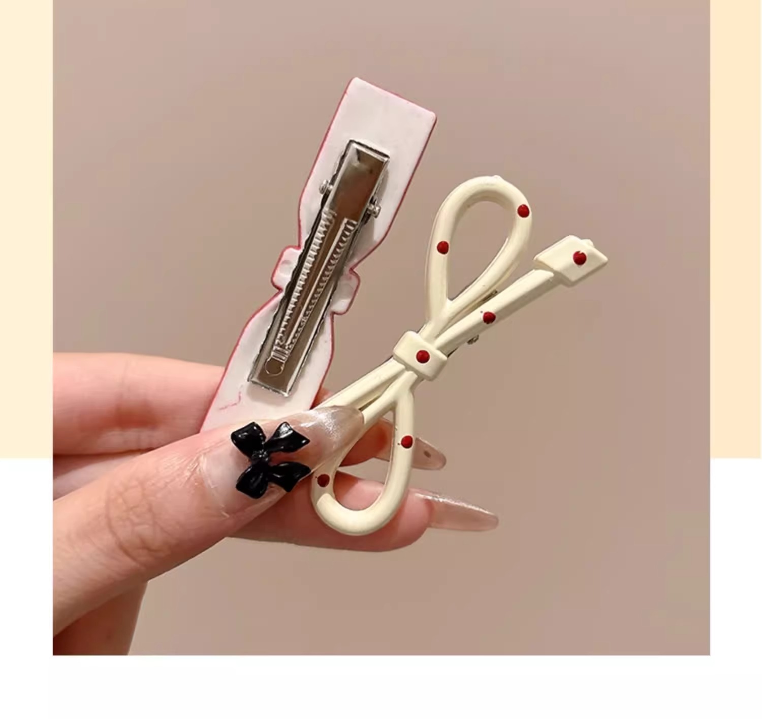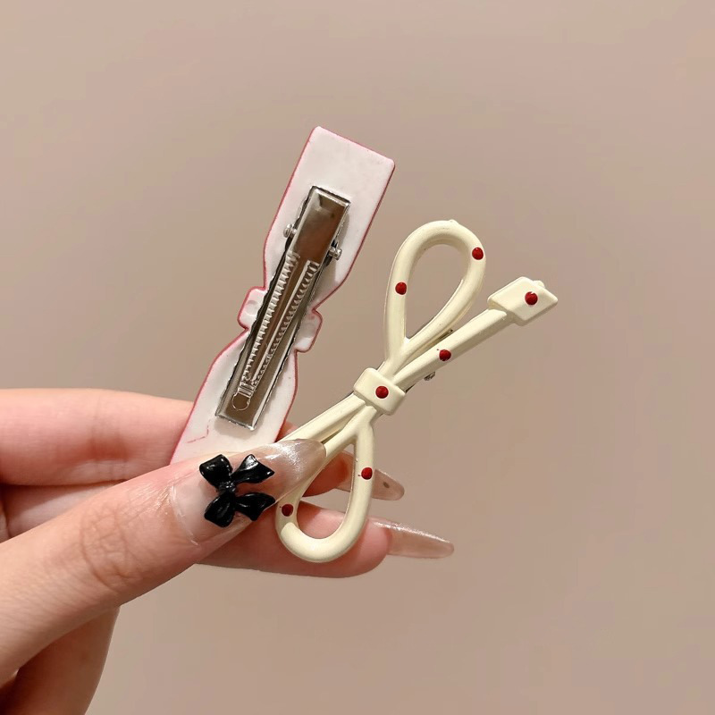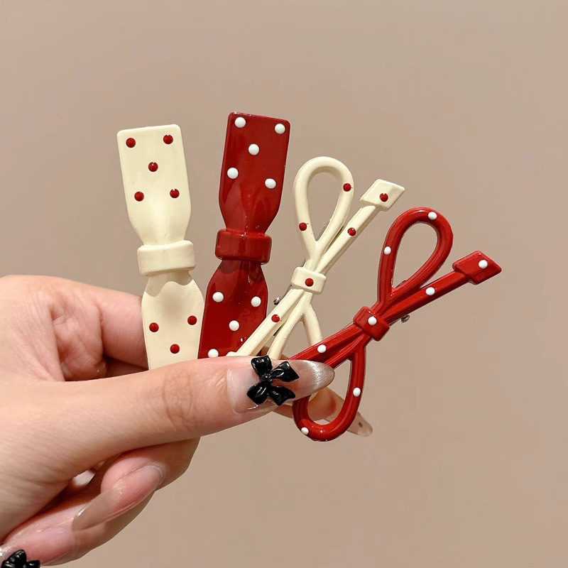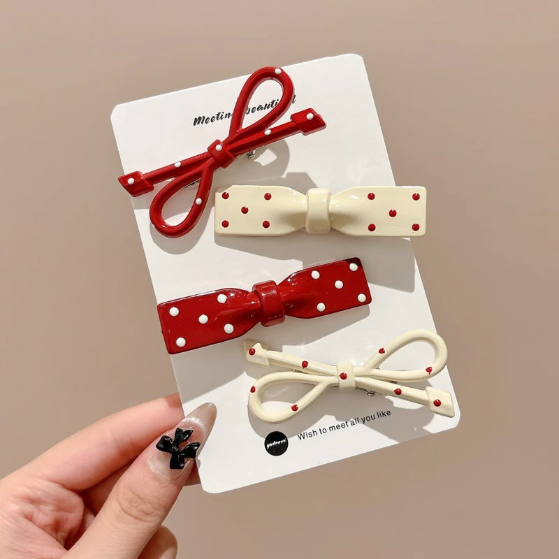 安可拉红波点蝴蝶结发夹女侧边碎发刘海夹鸭嘴夹子可爱一字夹发卡