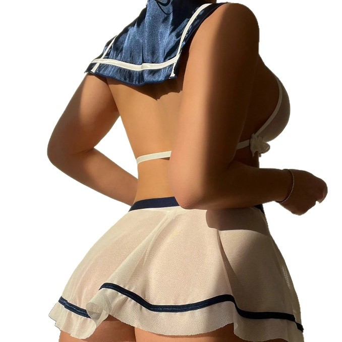 外贸货源跨境欧美新款性感薄透三点式JK水手COS制服情趣内衣套装